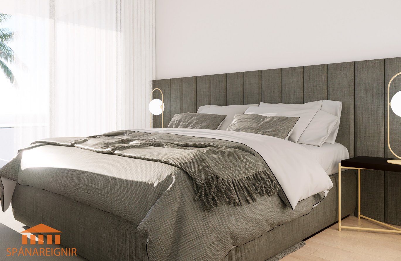 Tvö svefnherbergi og tvö baðherbergi. Útgengi út á svalir og upp á þaksvalir.