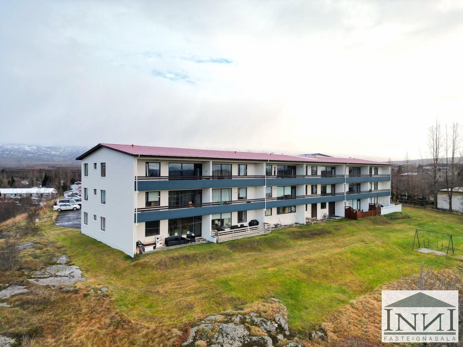 Þriggja herbergja íbúð á þriðju hæð í fjölbýlishúsi með einstaklega fallegu útsýni. Stofa og borðstofa eru í afar rúmgóðu rými með útgengt á svalir með frábæru útsýni. Í eldhúsi er fín innrétting og góður borðkrókur. Á baðherbergi er sturta og inn af baðherbergi er lítið þvottarými. Tvö svefnherbergi eru í íbúðinni og fataskápur er í öðru herberginu. Lítil geymsla er í íbúðinni en einnig er geymsla sem tilheyrir íbúðinni á jarðhæð. Þar er líka sameiginlega hjóla- og vagnageymsla.