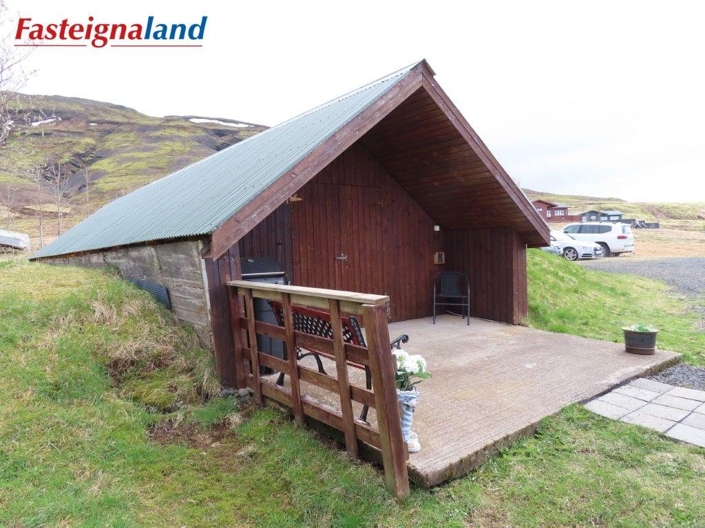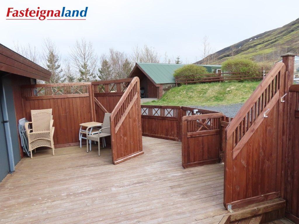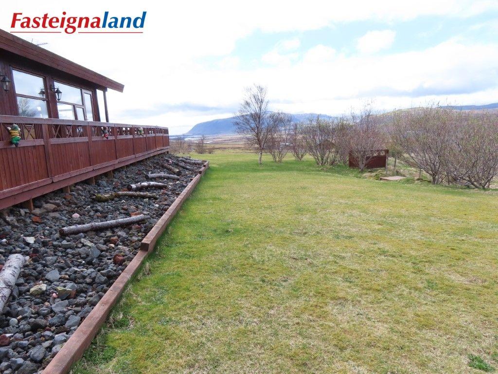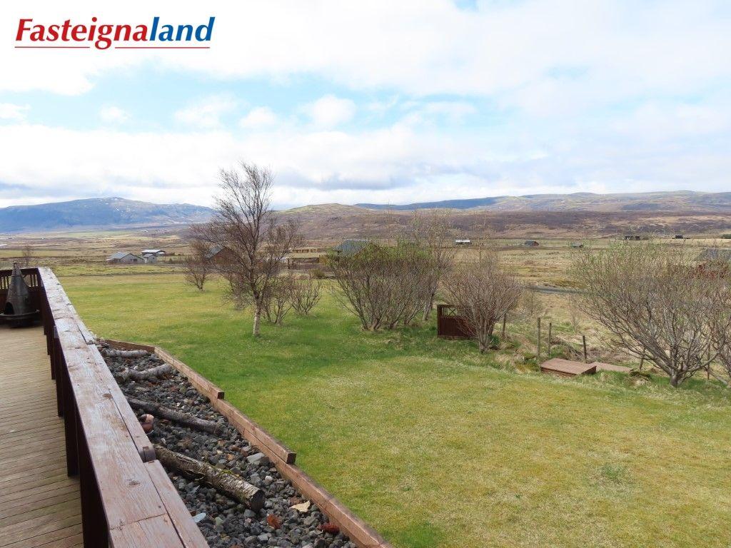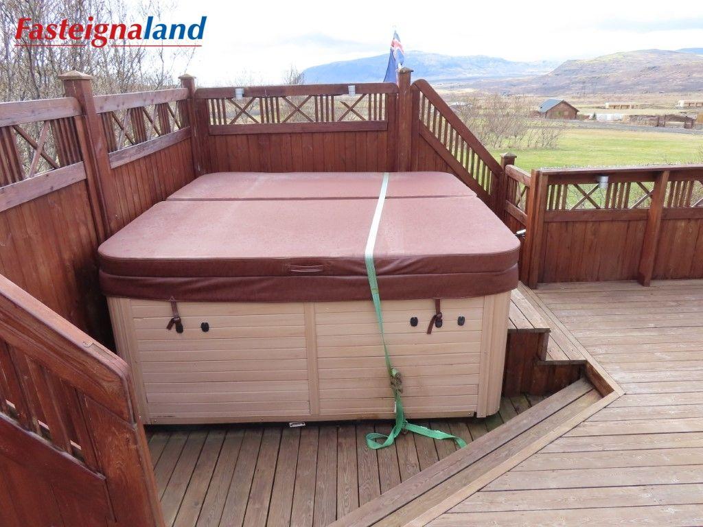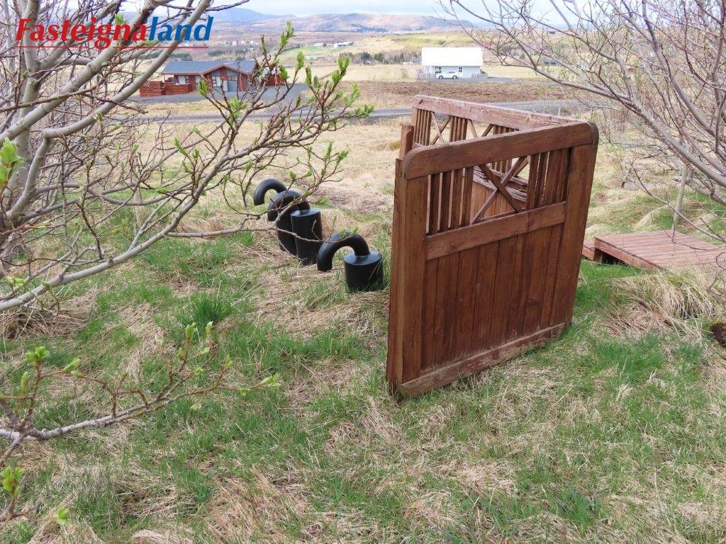 Stór sólpallur er við húsið ásamt heitum potti sem er rafmagnspottur. Auðvelt að breyta honum í hitaveitupott. Girðing og skjólgirðing.