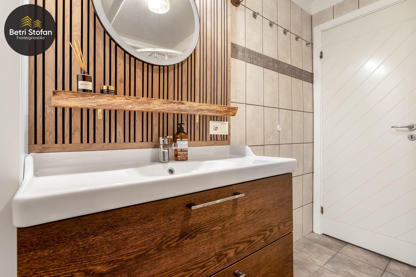 Lýsing eignar: Sérinngangur - forstofa flísalögð og með fatahengi. Svefnherbergi I er rúmgott með skápum, flísar á gólfi. Eldhús er snyrtilegt með nýlegri Ikea innréttingu dökkum borðplötum flísar á milli skápa og á gólfi Stofan er björt og rúmgóð, flísar á gólfi. Svefnherbergi II bjart og rúmgott með góðum skápum, flísar á gólfi. Baðherbergi flísalagt gólf og veggir, sturtuklefi, nýleg baðinnrétting með góðum skápum, handlaug á borði, spegill þar fyrir ofan. Sameiginlegt rúmgott þvottahús.
