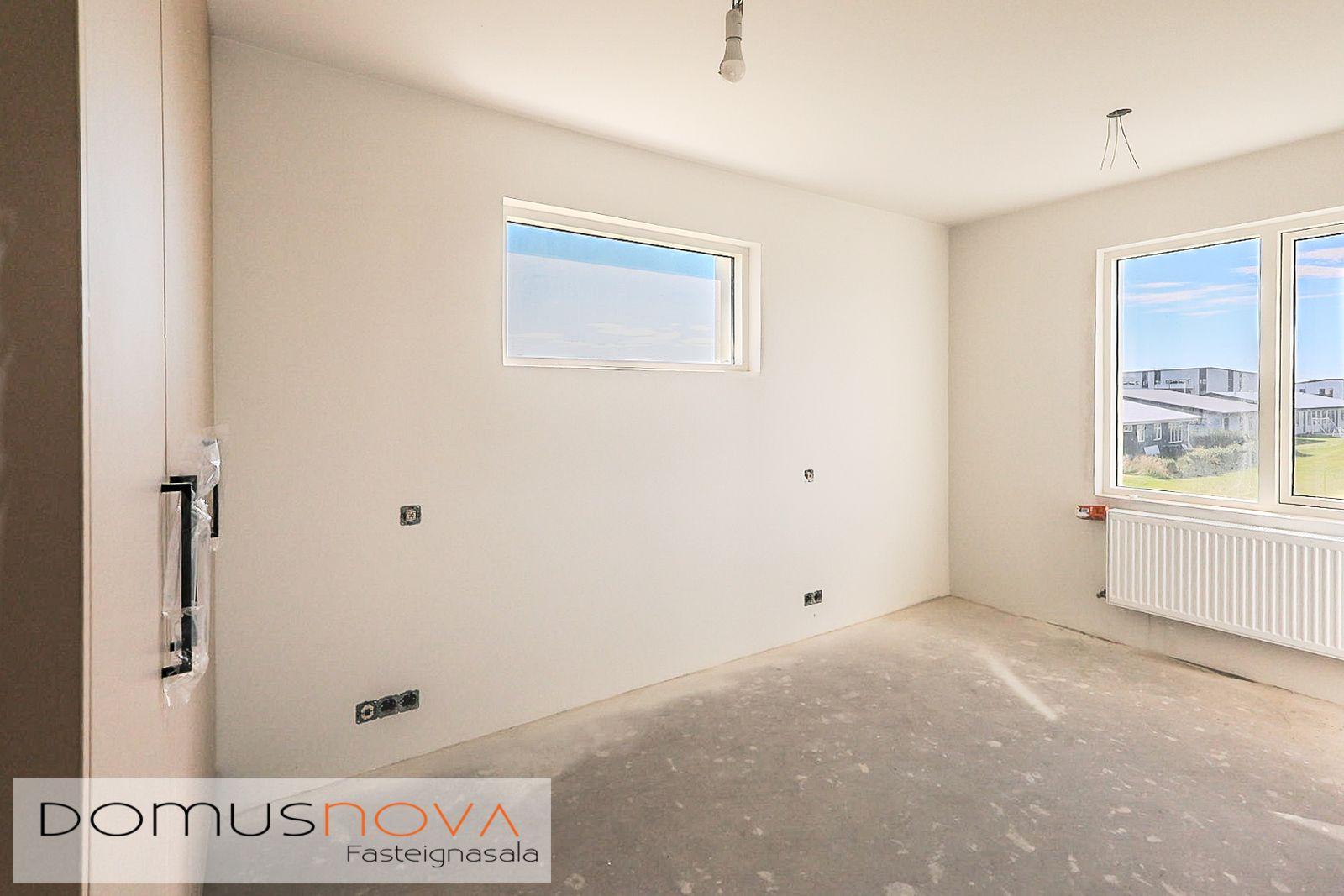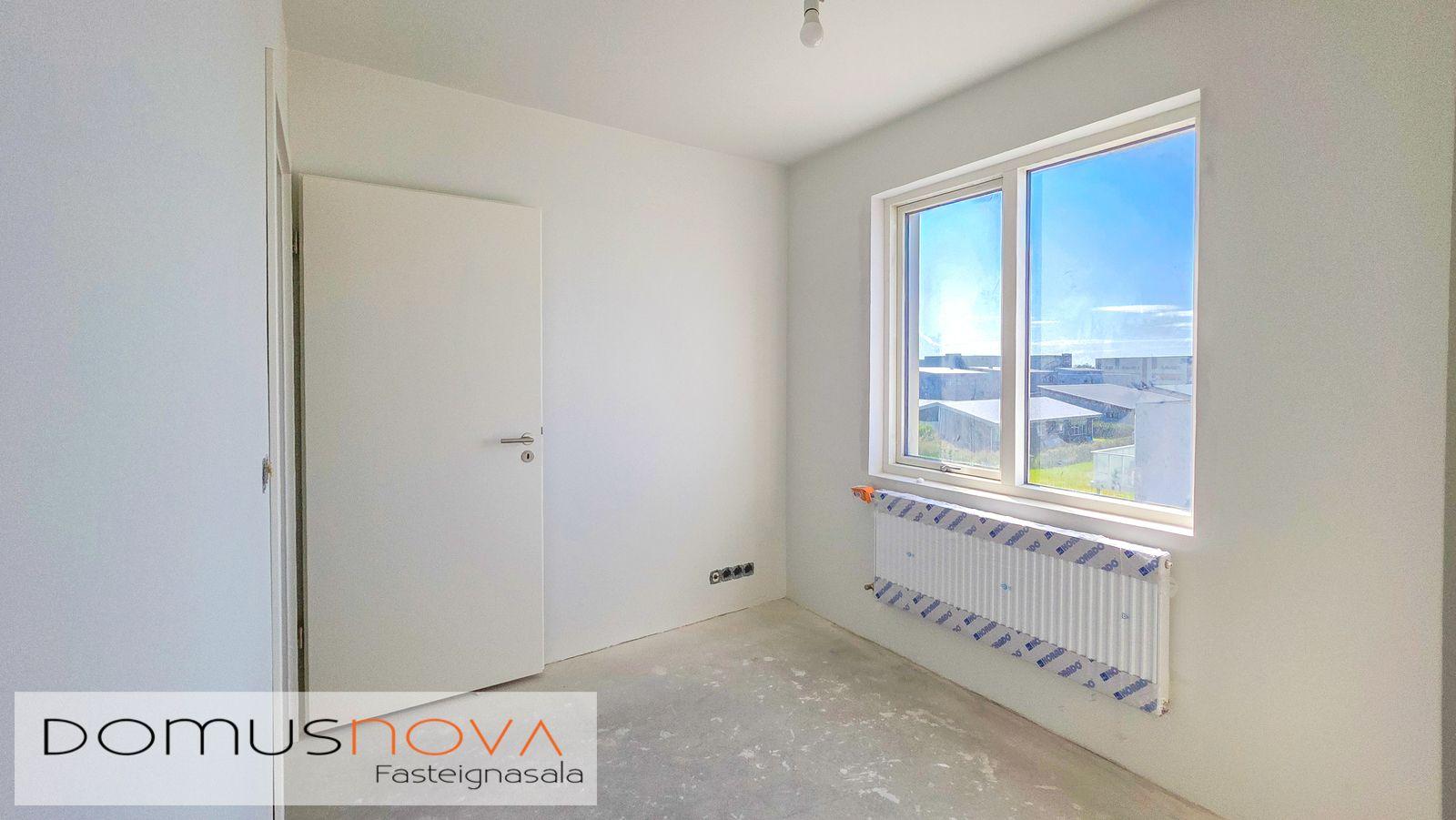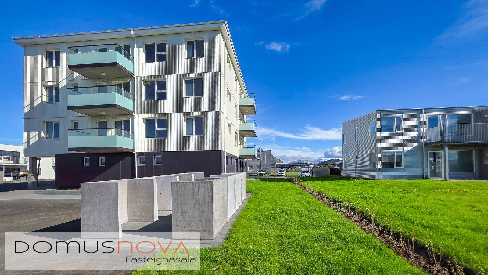 Lóð/bílastæði: Lóðin er 940,3 fm. Aðkoma og að bílastæðum beggja vegna við húsið eru hellulögð stétt með snjóbræðslu. Með húsinu fylgja 19 malbikuð stæði. Sorpgerði fyrir tunnur er á lóð. Að öðru leyti verður lóðin þökulögð eða með náttúrulegum móa. Tengibúnaður (ídráttarrör) vegna hleðslu rafbíla er aðgengilegt við bílastæði (að fimm stæðum næst tengibrunni við hús). Lóðin verður afhent fullbúin í lok byggingartímans.