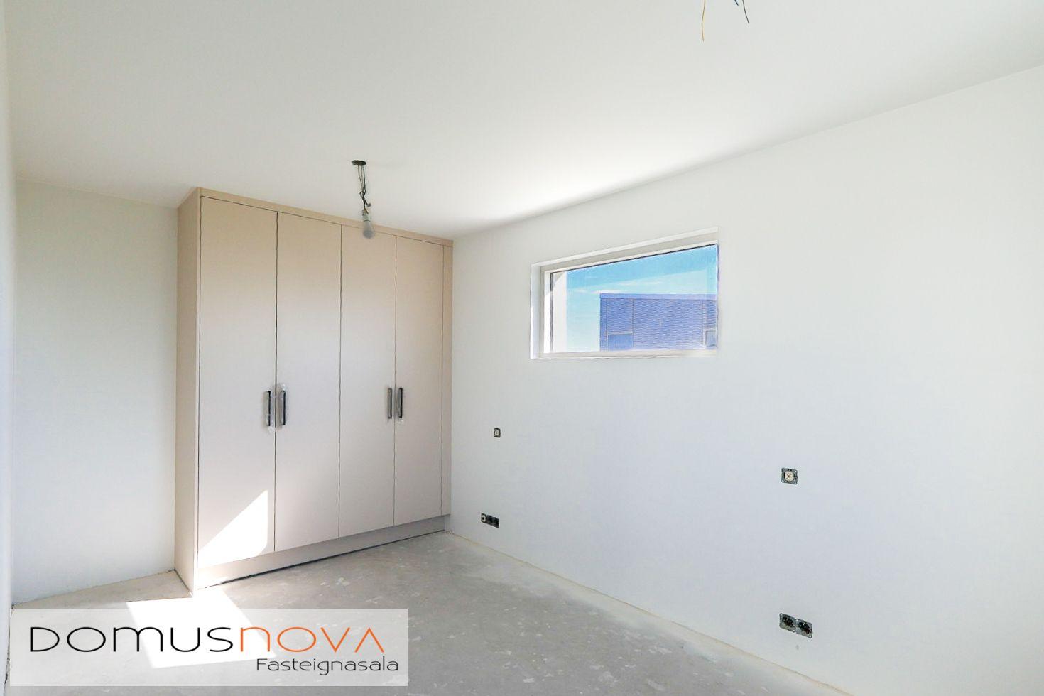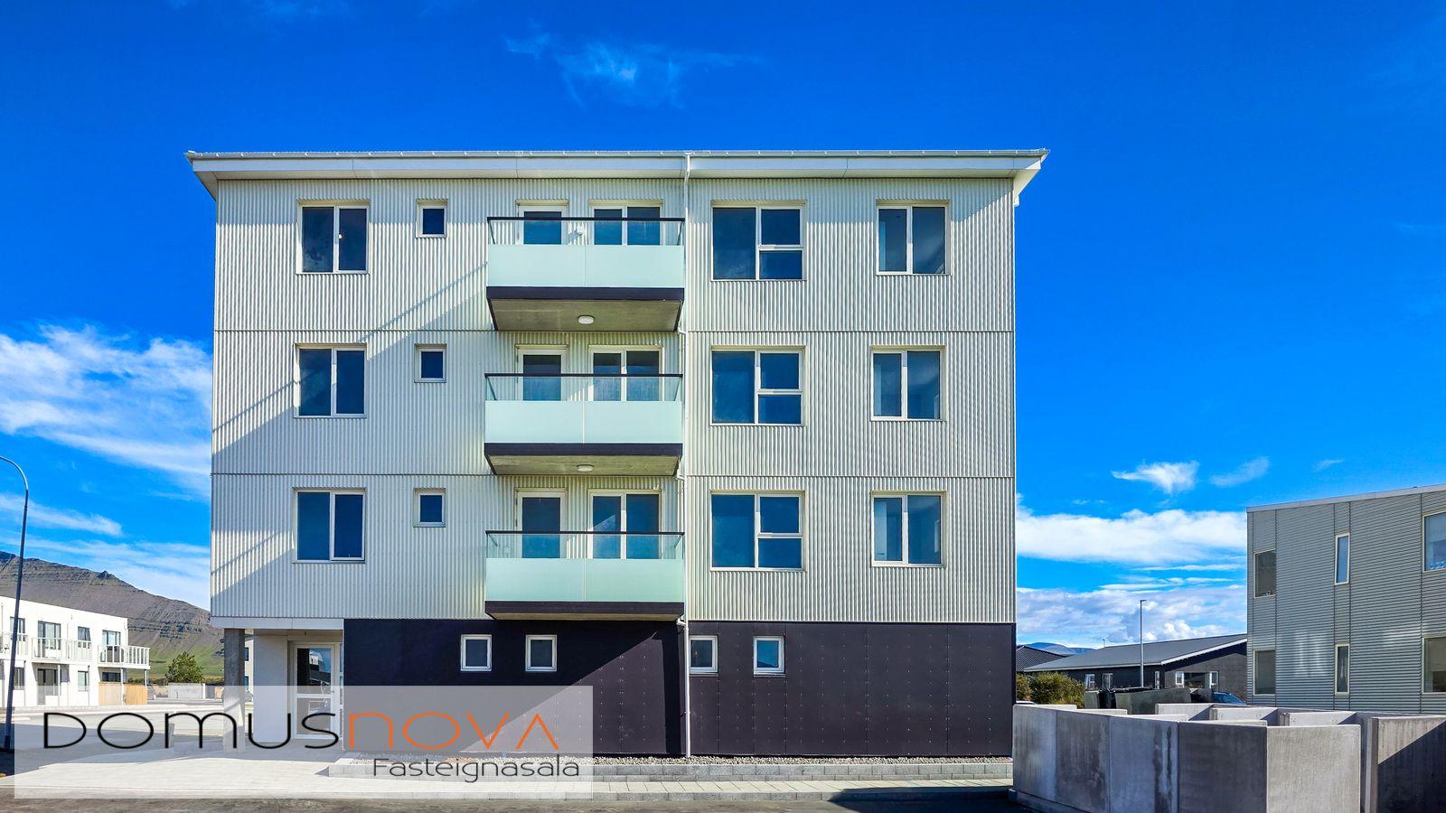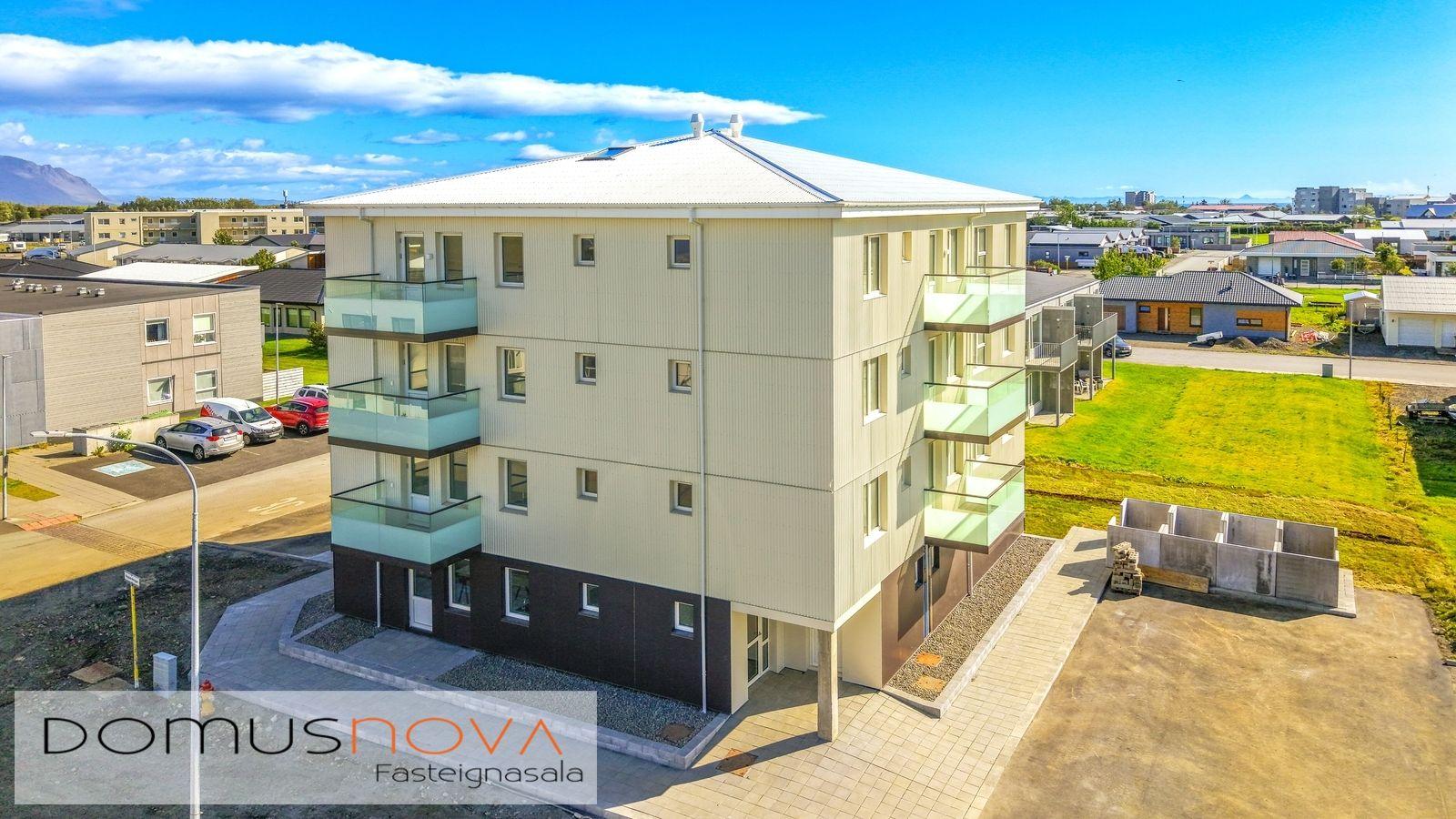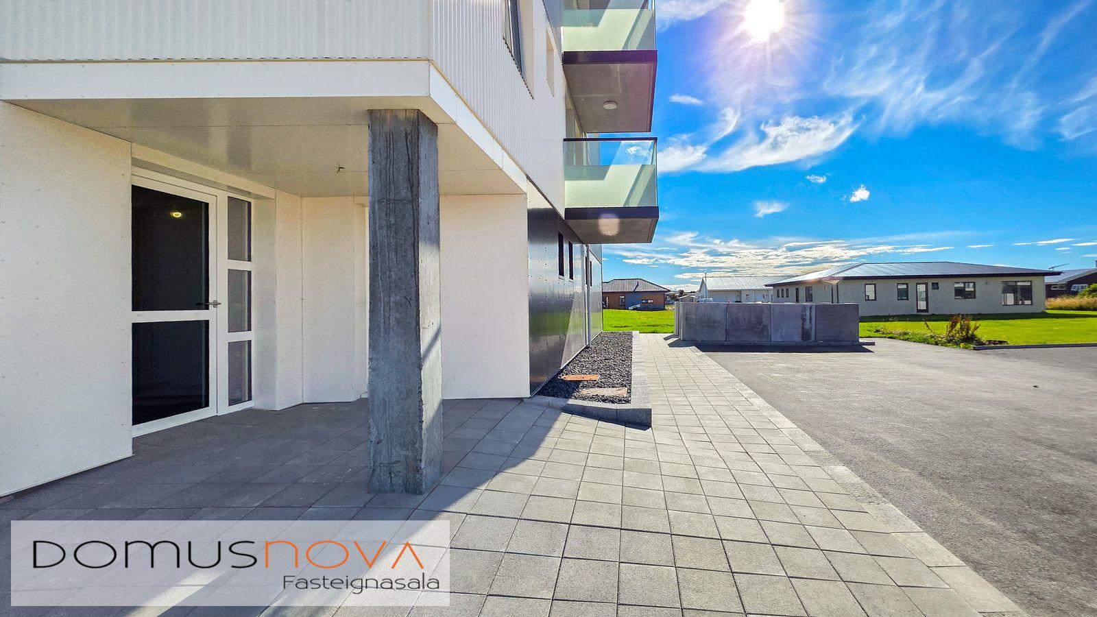 Lóð/bílastæði: Lóðin er 940,3 fm. Aðkoma og að bílastæðum beggja vegna við húsið eru hellulögð stétt með snjóbræðslu. Með húsinu fylgja 19 malbikuð stæði. Sorpgerði fyrir tunnur er á lóð. Að öðru leyti verður lóðin þökulögð eða með náttúrulegum móa. Tengibúnaður (ídráttarrör) vegna hleðslu rafbíla er aðgengilegt við bílastæði (að fimm stæðum næst tengibrunni við hús). Lóðin verður afhent fullbúin í lok byggingartímans.