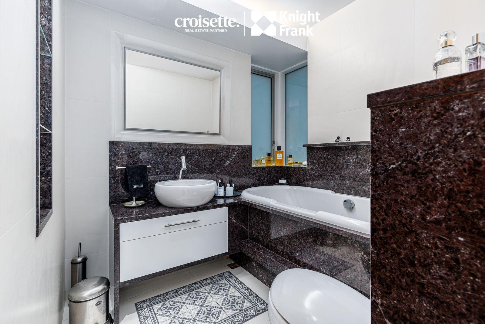 Baðherbergin eru bæði mjög vel hönnuð með hágæða flísum og tækjum.