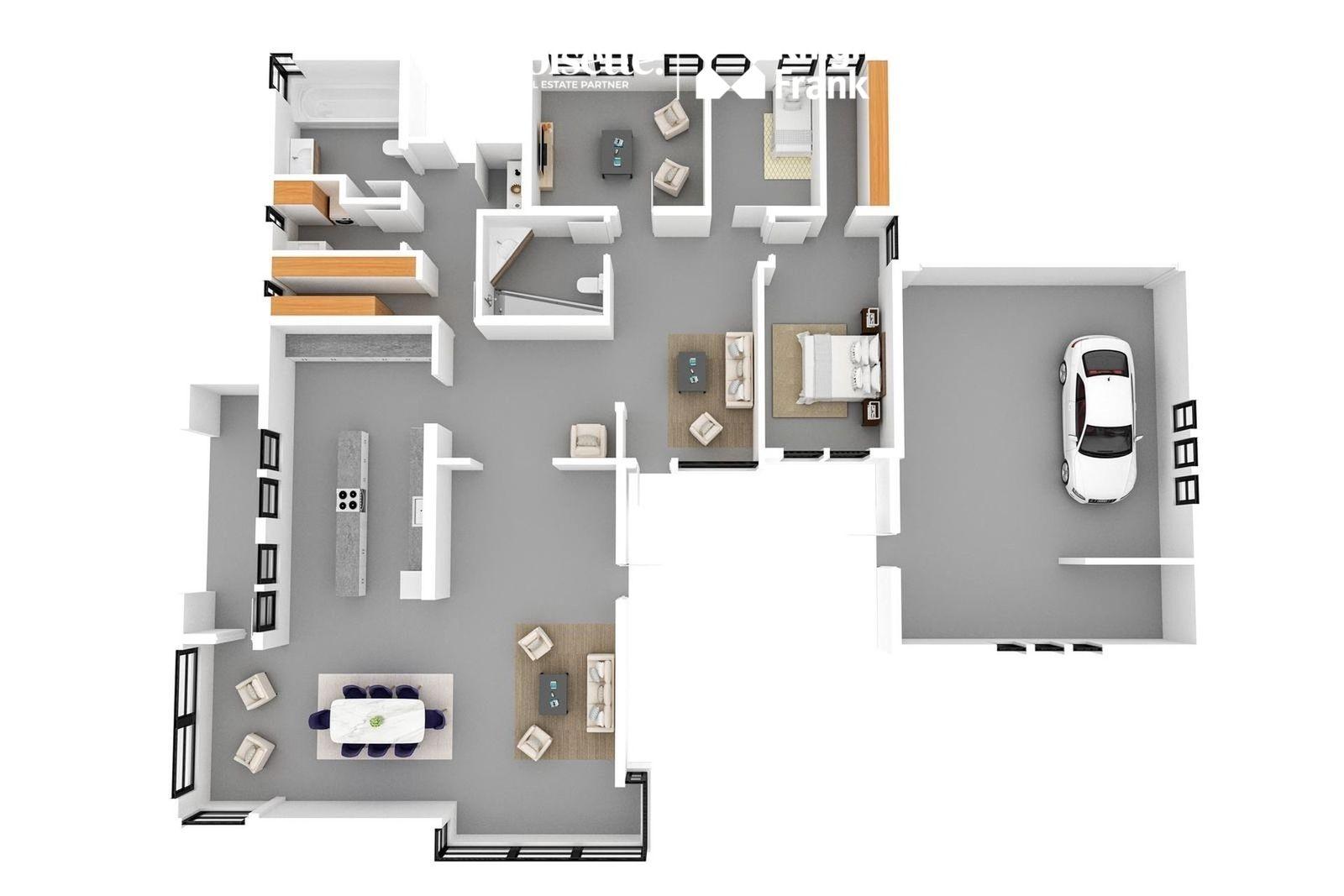 Húsið er með stóru alrými, rúmgóðu eldhúsi, tveimur baðherbergjum og þremur svefnherbergjum. Góð lofthæð er í öllu húsinu.