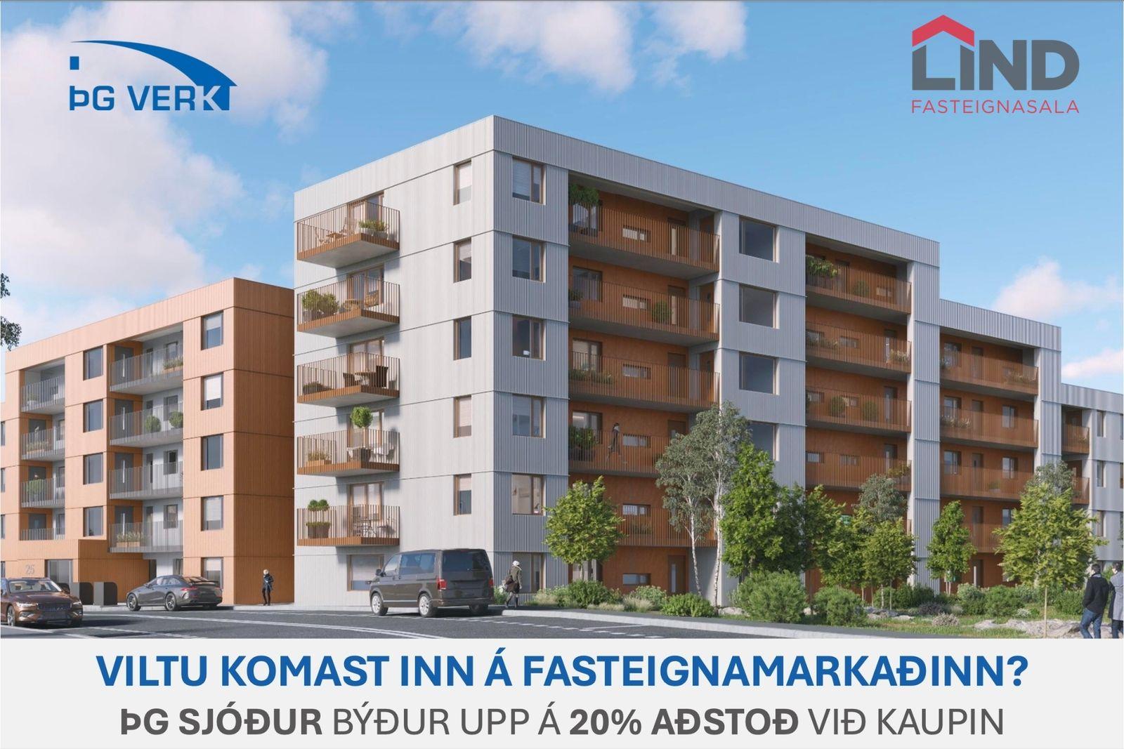 Íbúð 301: Er 116,9 fermetra 4ja herbergja íbúð á þriðju hæð með góðum 7,6 fermetra svölum og sérmerktu bílastæði í lokuðum bílakjallara. Þar af er geymsla 17,0 fermetrar. Afhending er áætluð mars-apríl 2026 en þó með fyrirvara um að öryggisúttekt sé komin á húsið.
