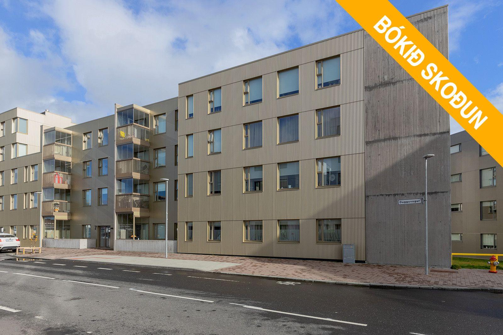Virkilega rúmgóð og falleg 149,6 fm íbúð á 1. hæð við Dugguvog 7, 104 Reykjavík. Þrjú svefnherbergi, tvö baðherbergi, sér þvottahús, bílastæði í kjallara og 82 fm sérafnotaréttur fyrir aftan húsið. Aukin lofthæð er í allri íbúðinni sem gefur henni einstakan sjarma. Mögulegt að útbúa fjórða svefnherbergið. Húsið var byggt árið 2021 af Þ.G. Verk. Íbúðin getur verið laus fljótlega eftir kaupsamning. Fáðu sent söluyfirlit hér