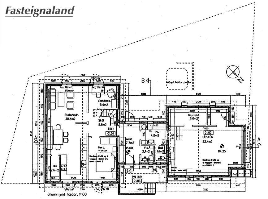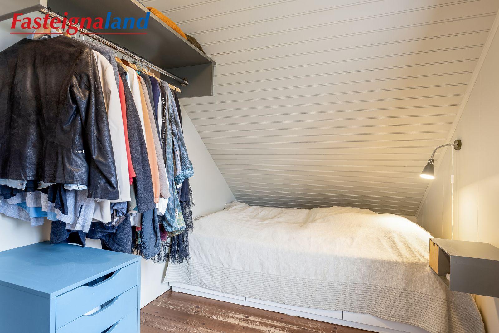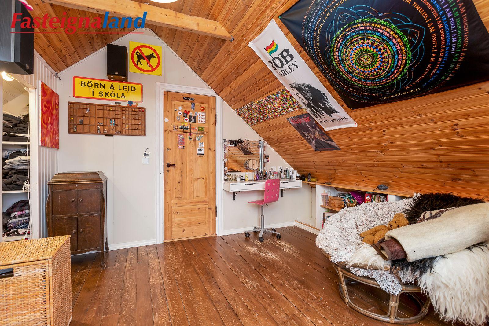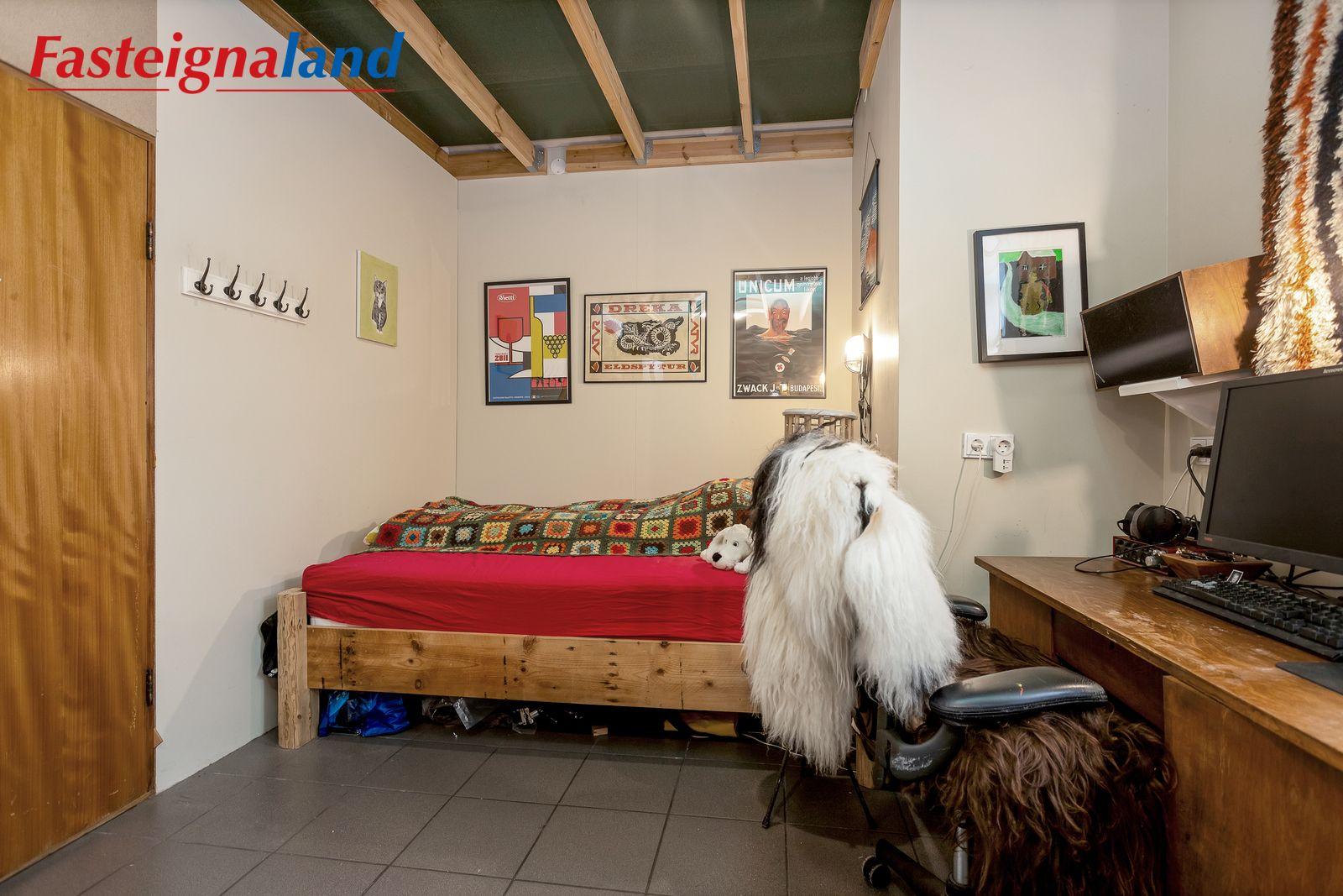 Bílskúr: með flísum á gólfi og hiti í gólfum, þarna er búið að gera milliloft sem er notað sem herbergi, og einnig er búið að útbúa stórt herbergi með léttum veggjum í skúrnum sjálfum, auðvelt er að breyta þessu til baka fyrir þá sem vilja hafa pláss fyrir bílinn, einnig væri hægt að breyta þessu í leigu einingu, þar sem þarna er sér inngangur.