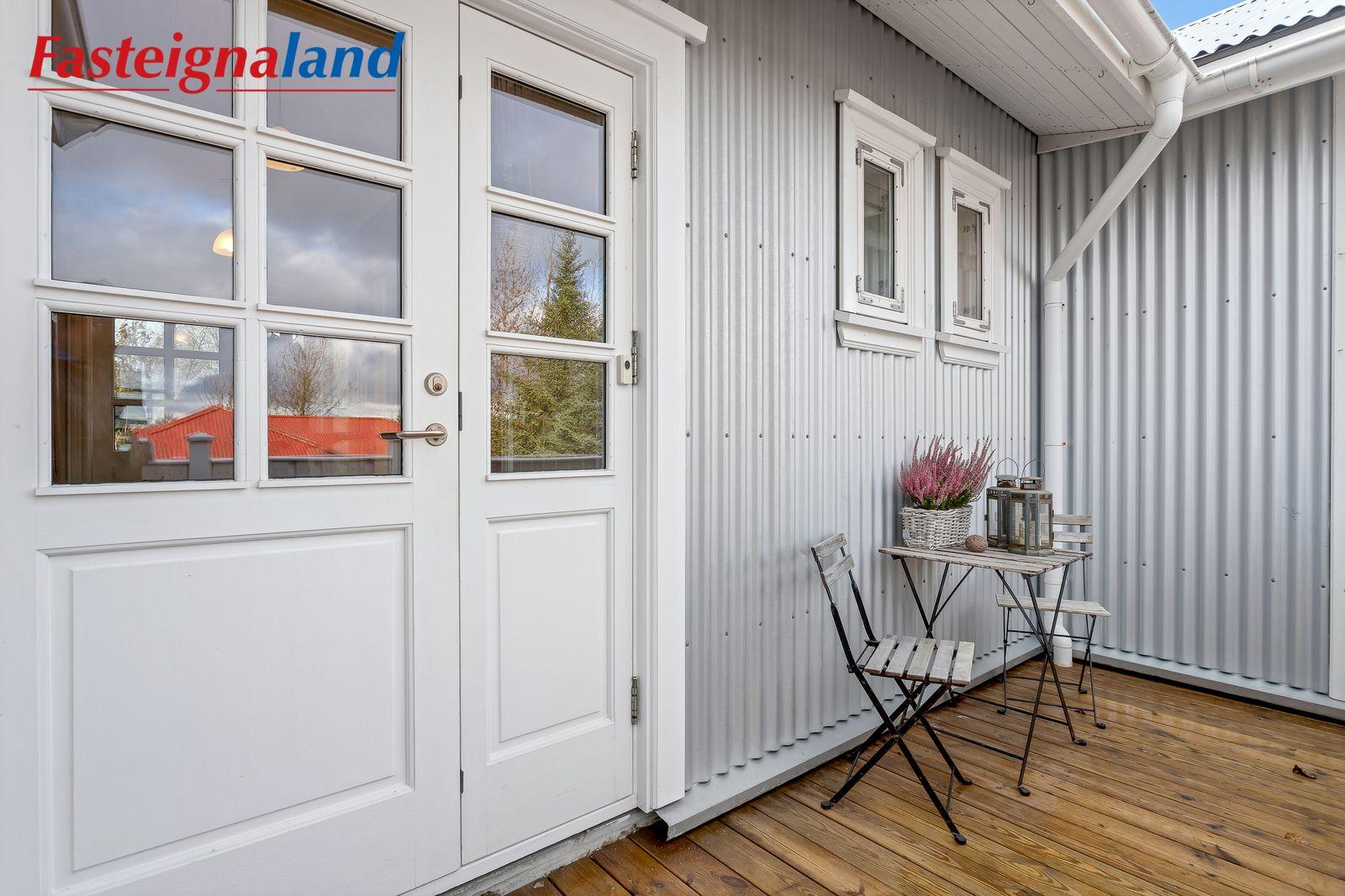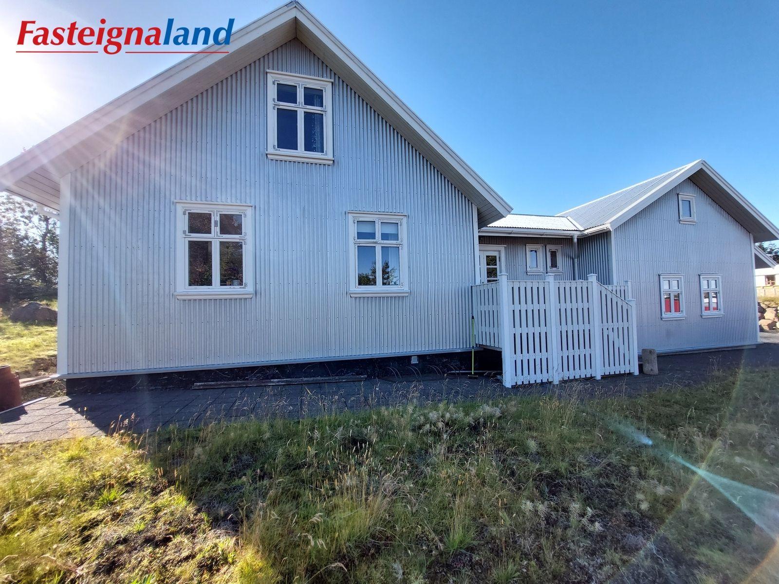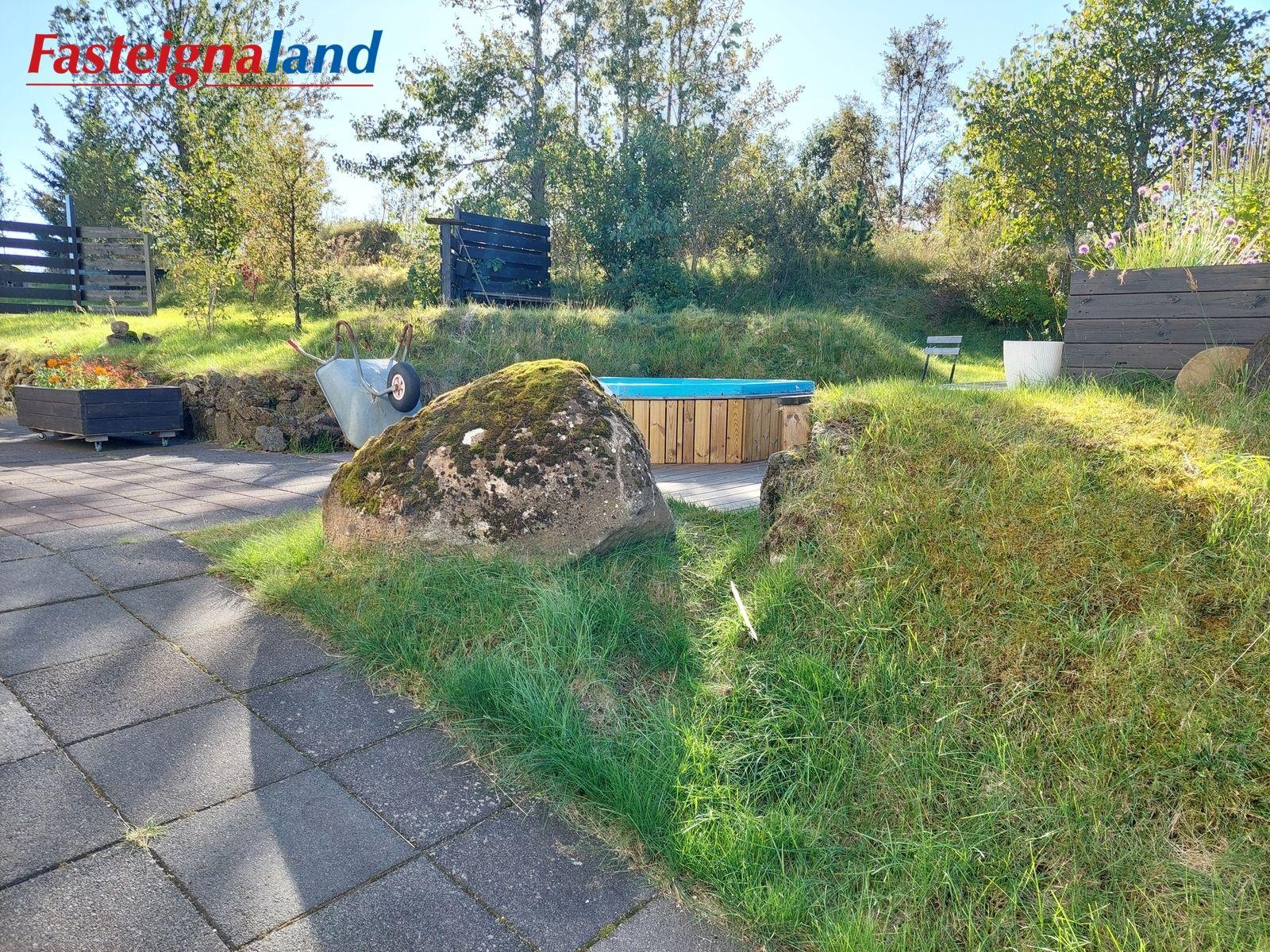 Vel skipulagt og mikið endurnýjað eldra einbýlishús þar sem stór bílskúr hefur verið byggður við húsið. Húsið skiptist í stofu sem tengist eldhúsi, þrjú svefnherbergi, sjónvarpshol, salerni, þvottahús með sturtu. Í bílskúr er búið að innrétta herbergi með léttum veggjum sem auðveldlega væri hægt að breyta aftur, fyrir þá sem vilja stóran skúr, er einnig milliloft sem notað er líka sem herbergi. Falleg og gróin náttúruleg lóð umlykur húsið, þá er einnig heitur pottur og geymsluskúr (óeinangraður, sem byggður var 2015) á lóðinni.