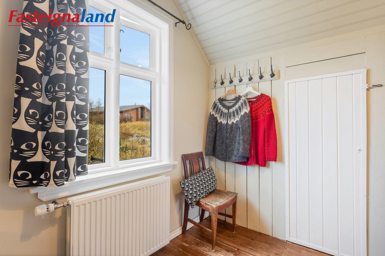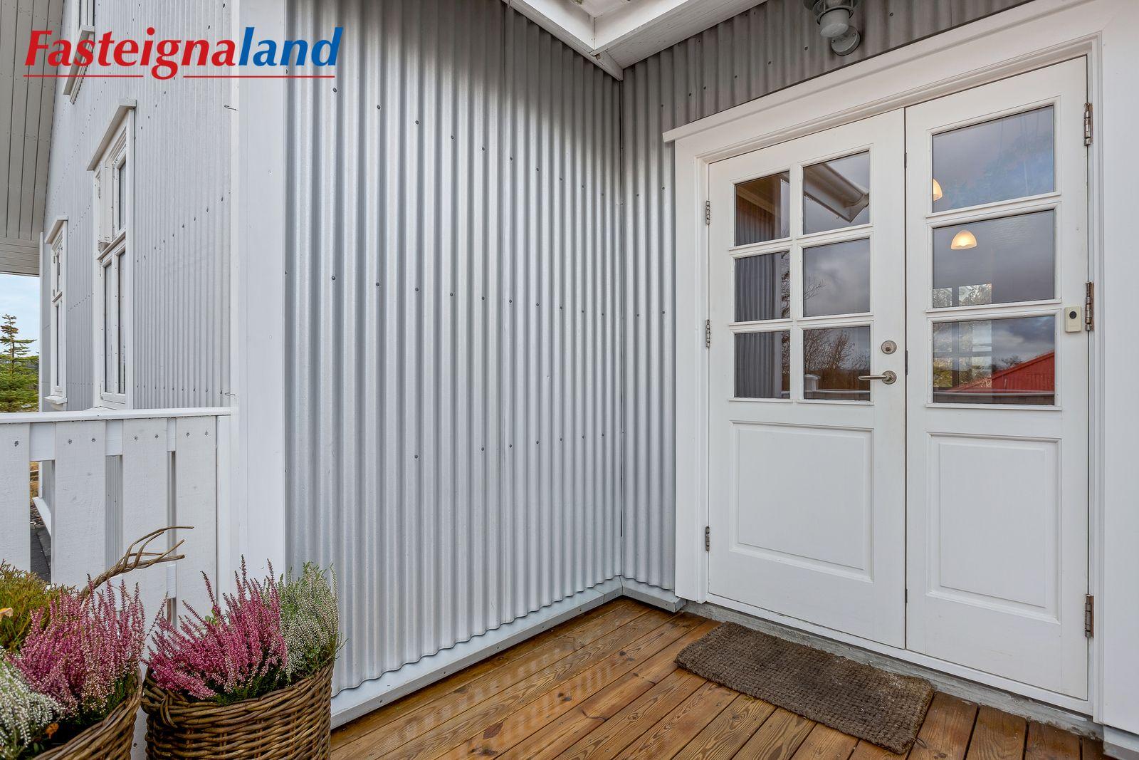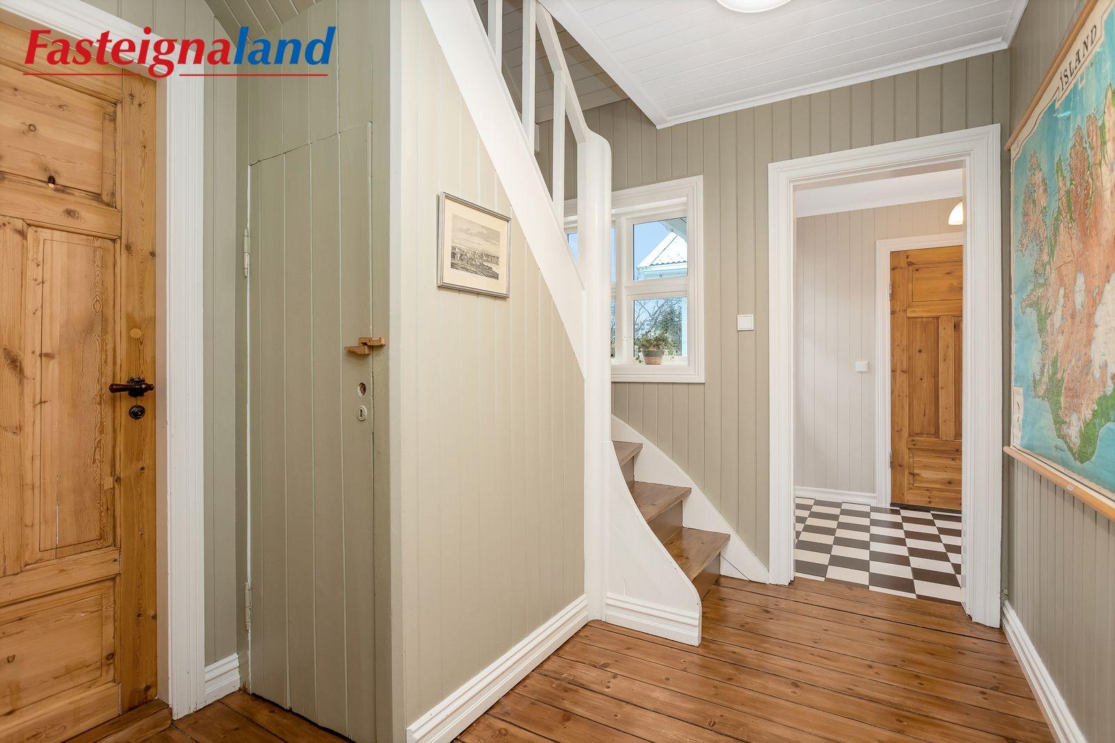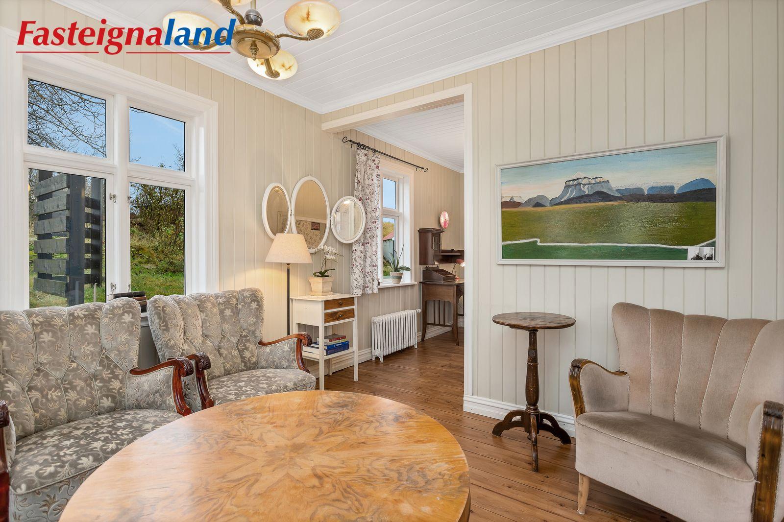 Vel skipulagt og mikið endurnýjað eldra einbýlishús þar sem stór bílskúr hefur verið byggður við húsið. Húsið skiptist í stofu sem tengist eldhúsi, þrjú svefnherbergi, sjónvarpshol, salerni, þvottahús með sturtu. Í bílskúr er búið að innrétta herbergi með léttum veggjum sem auðveldlega væri hægt að breyta aftur, fyrir þá sem vilja stóran skúr, er einnig milliloft sem notað er líka sem herbergi. Falleg og gróin náttúruleg lóð umlykur húsið, þá er einnig heitur pottur og geymsluskúr (óeinangraður, sem byggður var 2015) á lóðinni.