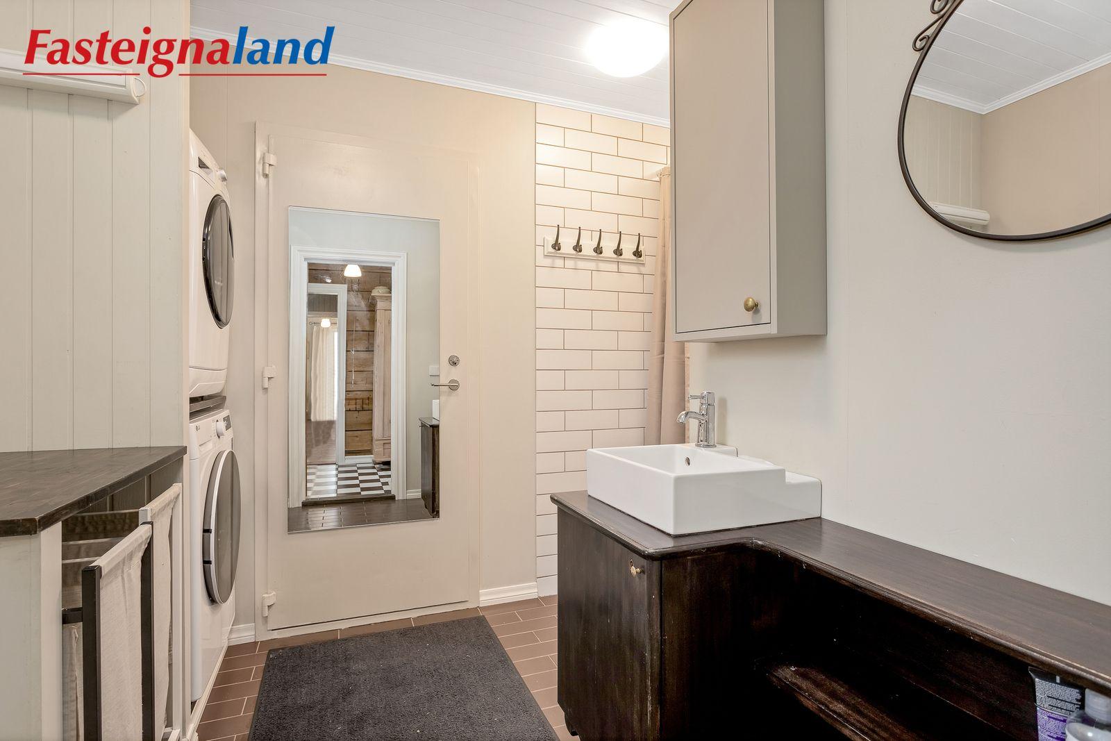 Þvottahús: rúm þvottaaðstaða með flísum á gólfi, gert ráð fyrir þvottavél og þurrkara, stór vaskur og rúm flísalögð sturta.