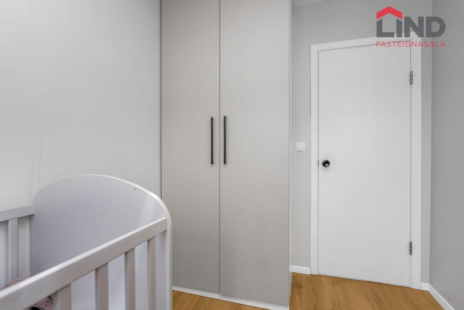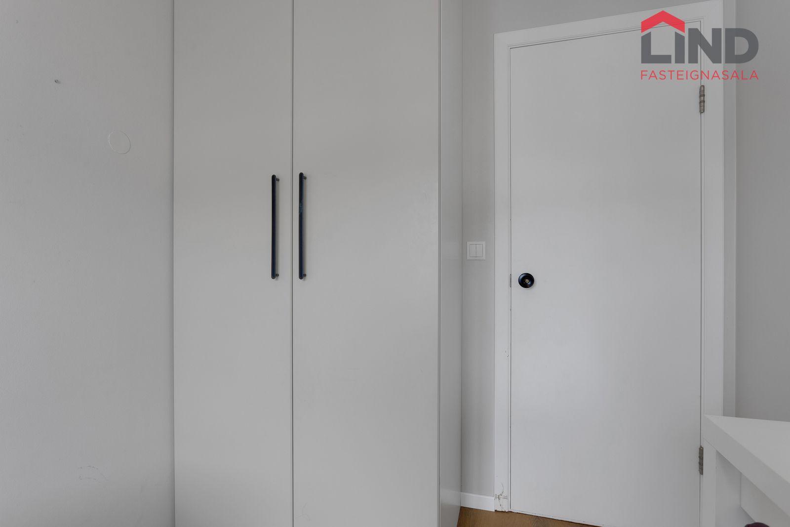 Svefnherbergi II: Með harðparketi, skápum og glugga til austurs.