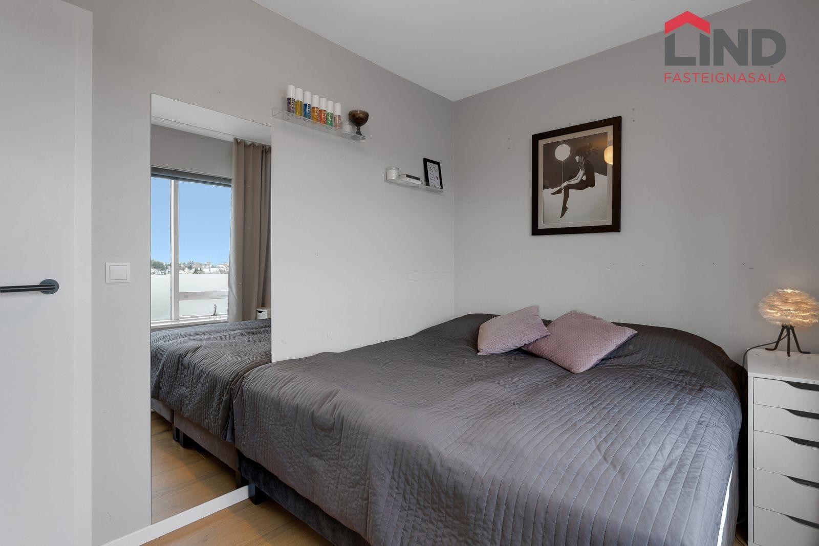 Hjónaherbergi: Er stórt, með harðparketi á gólfi og góðu skápaplássi. Gluggar til vesturs og útgengi á svalir.