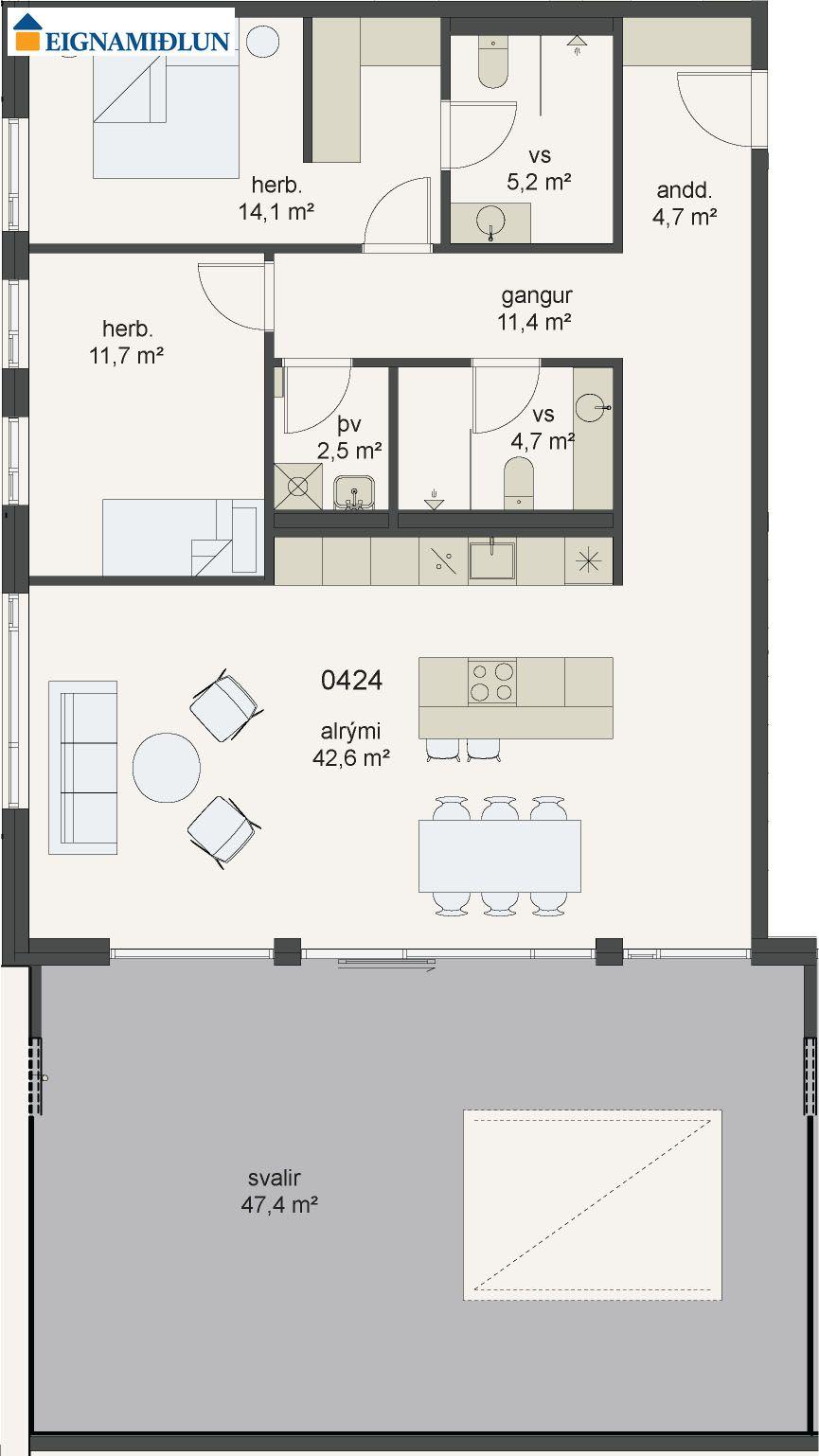 Nánar: Íbúð merkt 04-24 er með 2 svefnherbergjum, 1 stofu og 1 baðherbergi. Sérþvottahús er í íbúðinni. Geymsla í sameign fylgir. Íbúðinni fylgir stæði í bílakjallara merkt B-095.