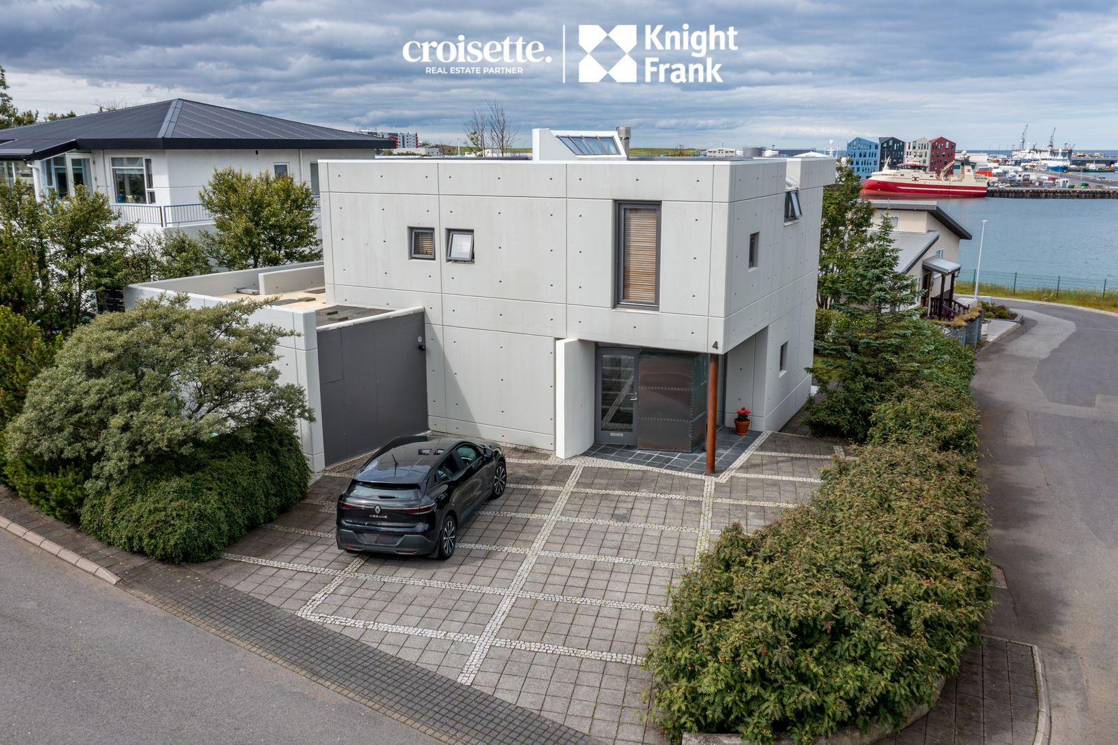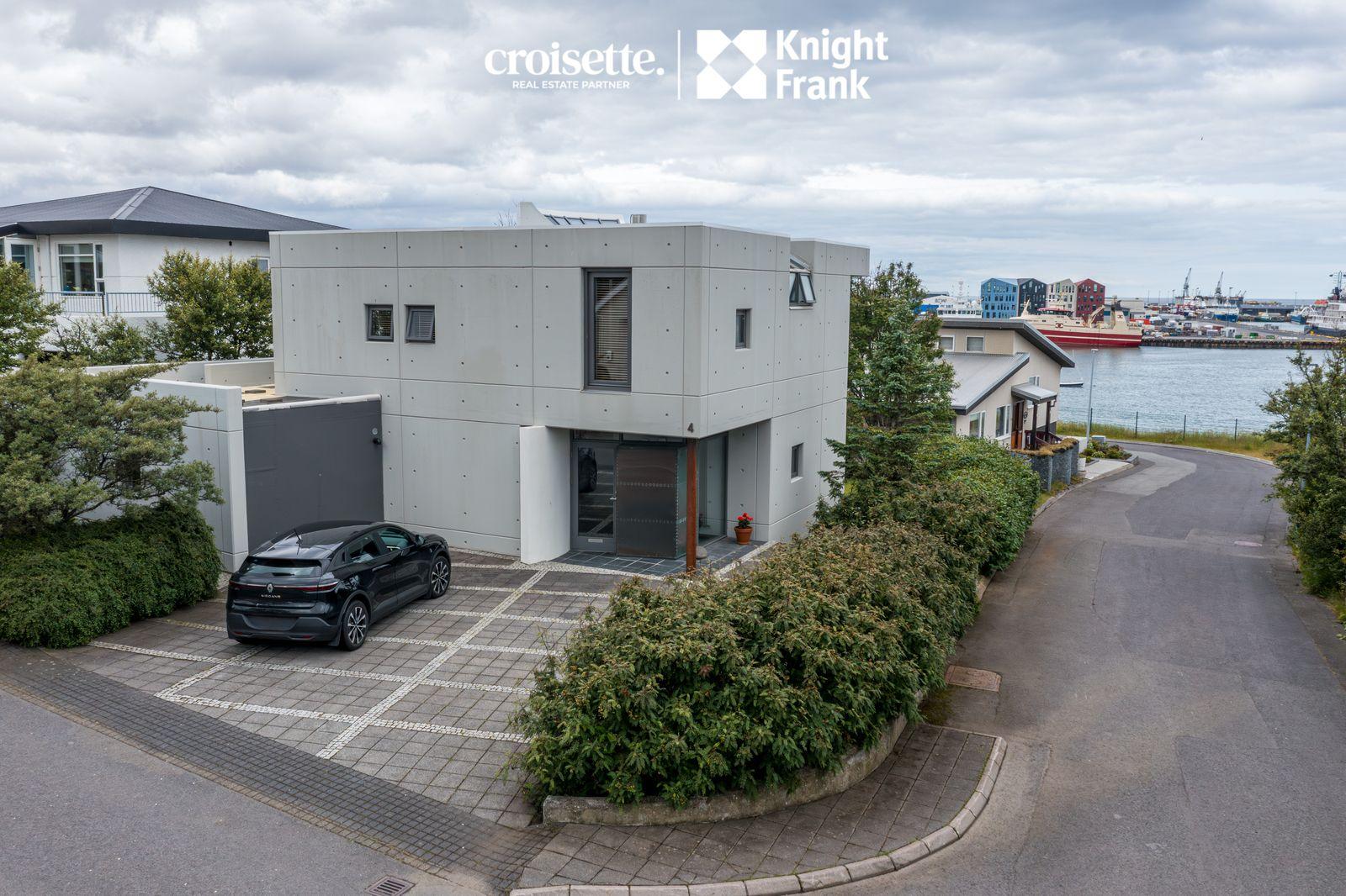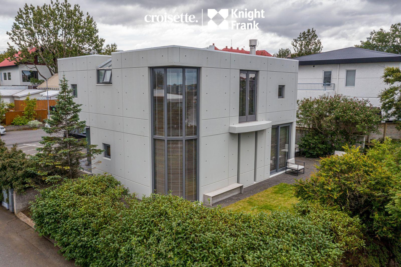 CROISETTE - KNIGHT FRANK kynna í einkasölu, arkitektateiknað 204 fm einbýlishús við Hamarsbraut 4 í Hafnarfirði. Húsið stendur á 450 fm lóð sem er fullfrágengin og viðhaldslítil. Bílastæði er fyrir 2-3 bíla, hellulagt og upphitað. Hönnun hússins er sérstök og framsækin fyrir hús frá 1990 með tilliti til skipulags, útlits, efnisnotkunar og byggingarmáta. Hamarsbraut er róleg falleg gata á Vesturhamrinum í hjarta bæjarins. Vönduð og vel hönnuð eign sem nýtur skemmtilegs útsýnis yfir höfnina, út yfir flóann til Snæfellsjökuls og yfir gamla bæinn i Hafnarfirði. Eign sem er vert að skoða. Allar nánari upplýsingar veitir Karl Lúðvíksson, löggiltur fasteignasali í s. 663-6700 eða kalli@croisette.is og Elín Auður Traustadóttir í s: 858-0978 eða elin@croisette.is