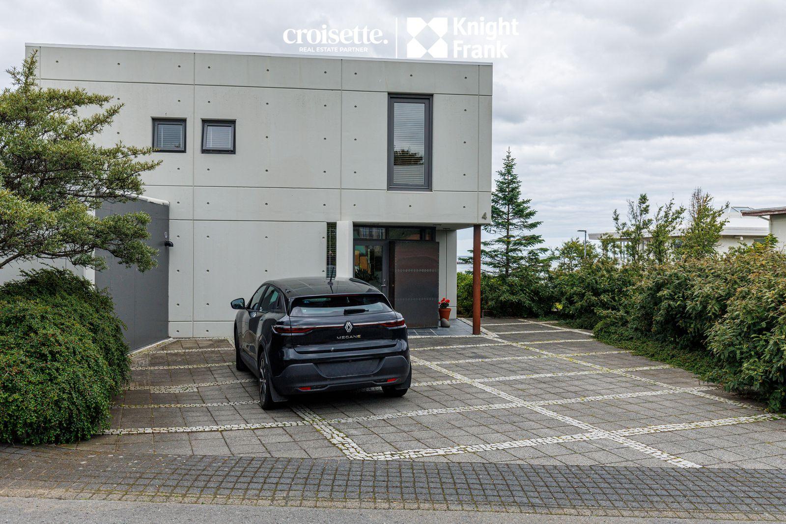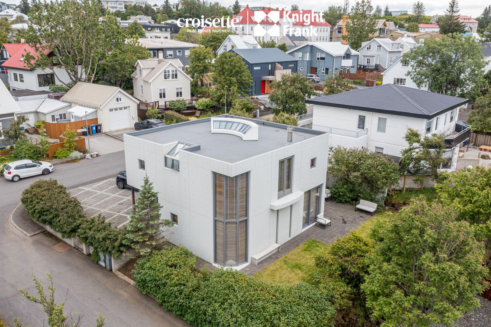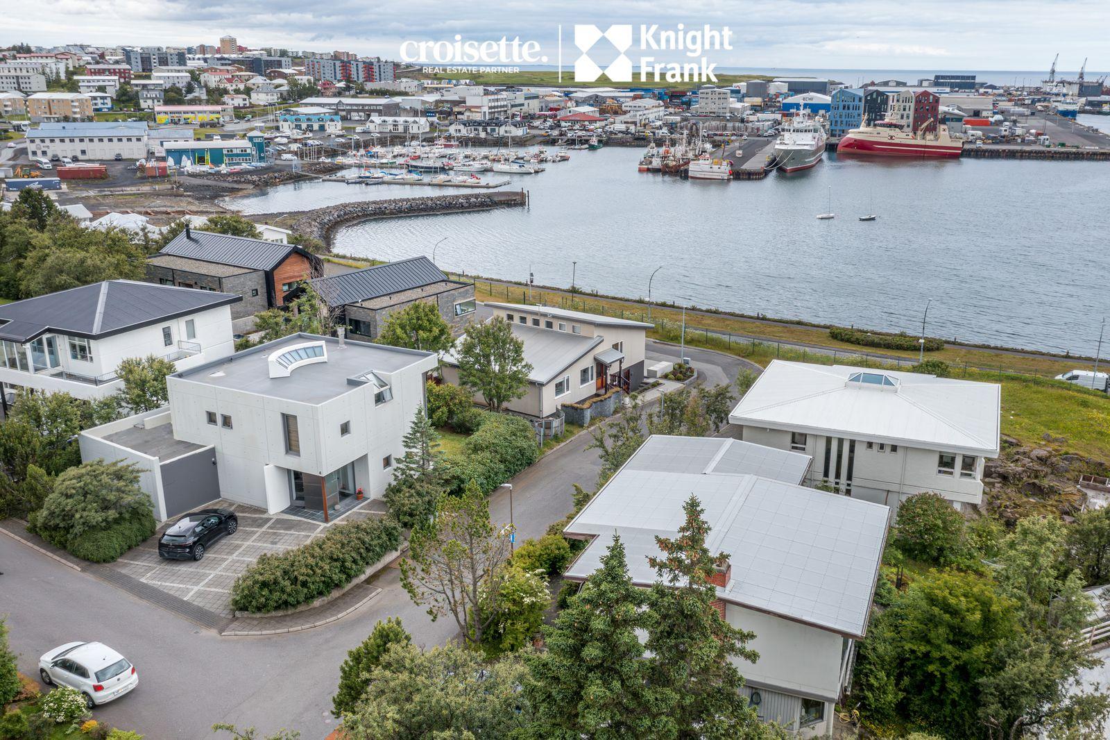 CROISETTE - KNIGHT FRANK kynna í einkasölu, arkitektateiknað 204 fm einbýlishús við Hamarsbraut 4 í Hafnarfirði. Húsið stendur á 450 fm lóð sem er fullfrágengin og viðhaldslítil. Bílastæði er fyrir 2-3 bíla, hellulagt og upphitað. Hönnun hússins er sérstök og framsækin fyrir hús frá 1990 með tilliti til skipulags, útlits, efnisnotkunar og byggingarmáta. Hamarsbraut er róleg falleg gata á Vesturhamrinum í hjarta bæjarins. Vönduð og vel hönnuð eign sem nýtur skemmtilegs útsýnis yfir höfnina, út yfir flóann til Snæfellsjökuls og yfir gamla bæinn i Hafnarfirði. Eign sem er vert að skoða. Allar nánari upplýsingar veitir Karl Lúðvíksson, löggiltur fasteignasali í s. 663-6700 eða kalli@croisette.is og Elín Auður Traustadóttir í s: 858-0978 eða elin@croisette.is