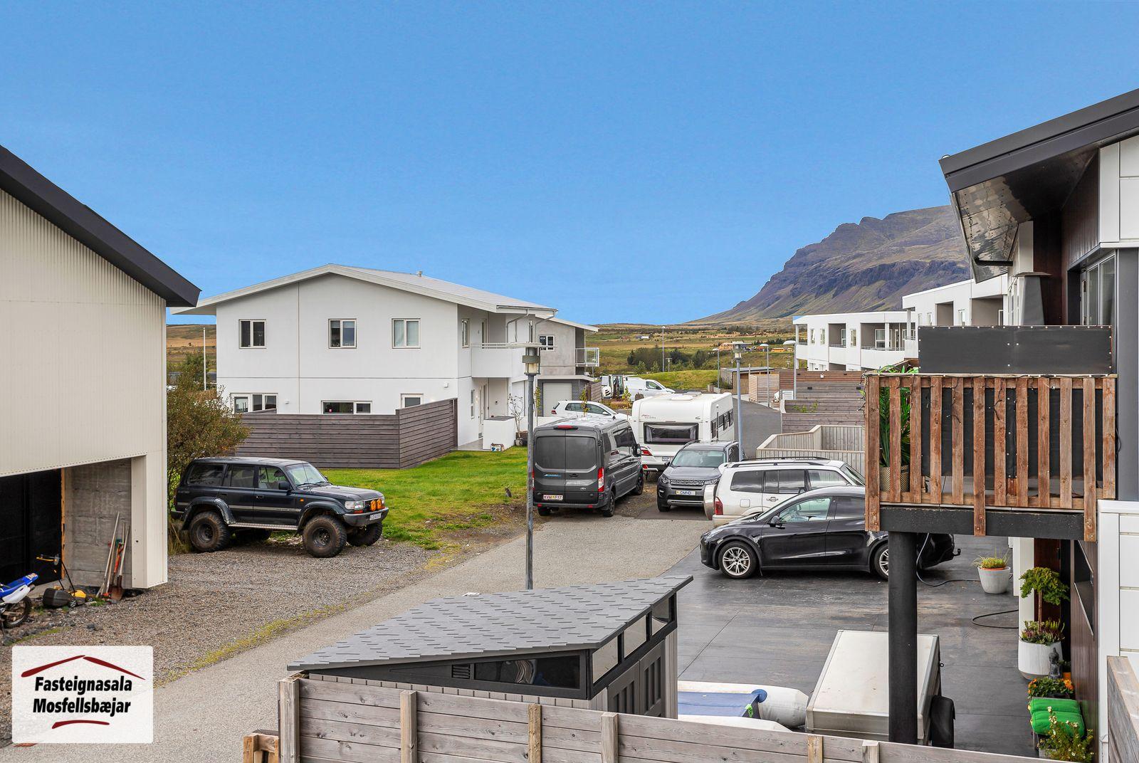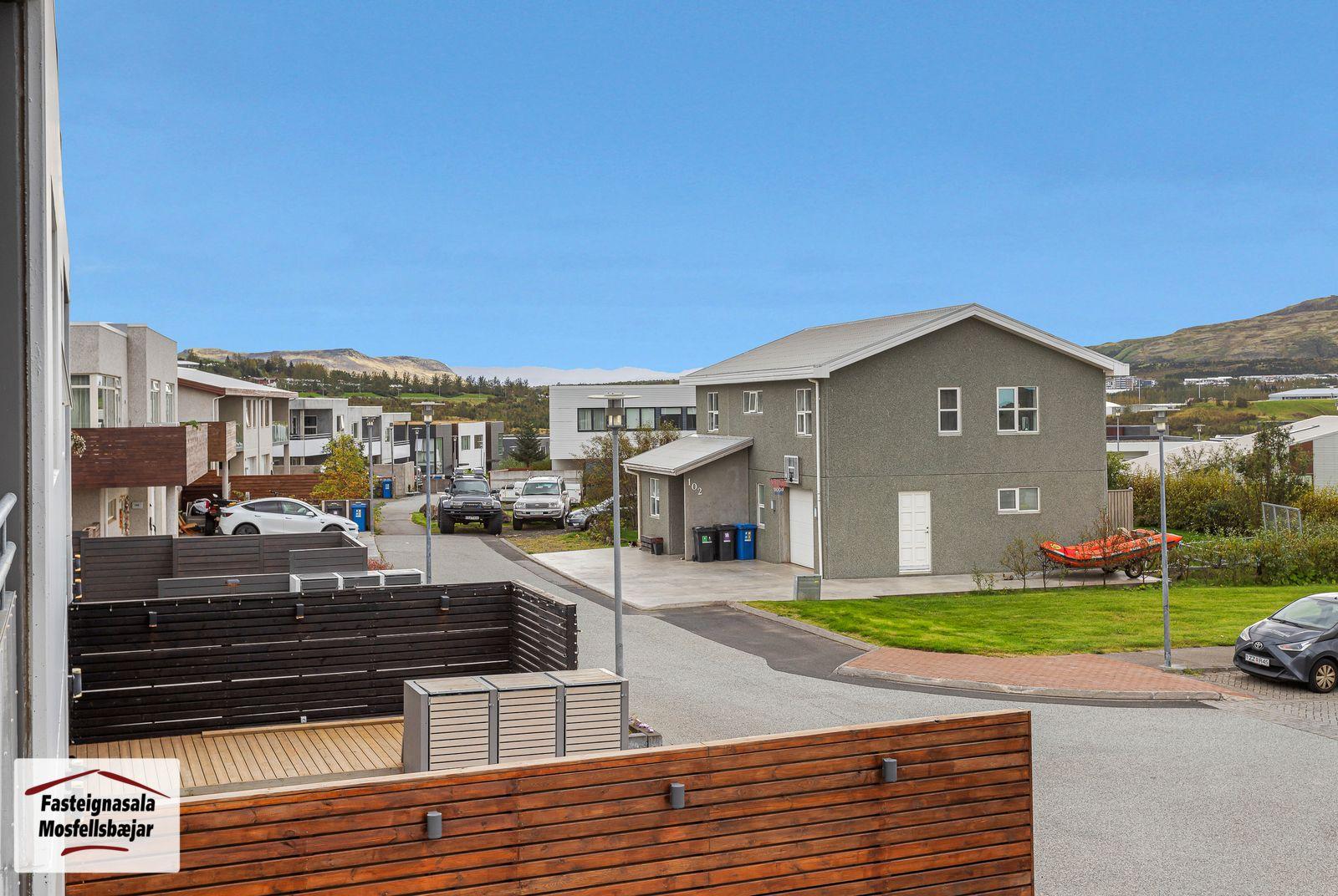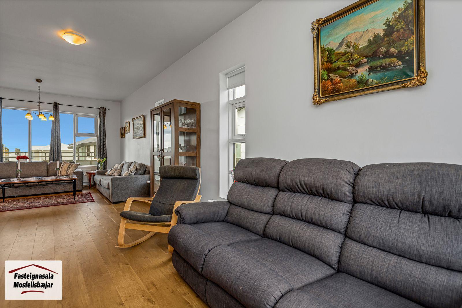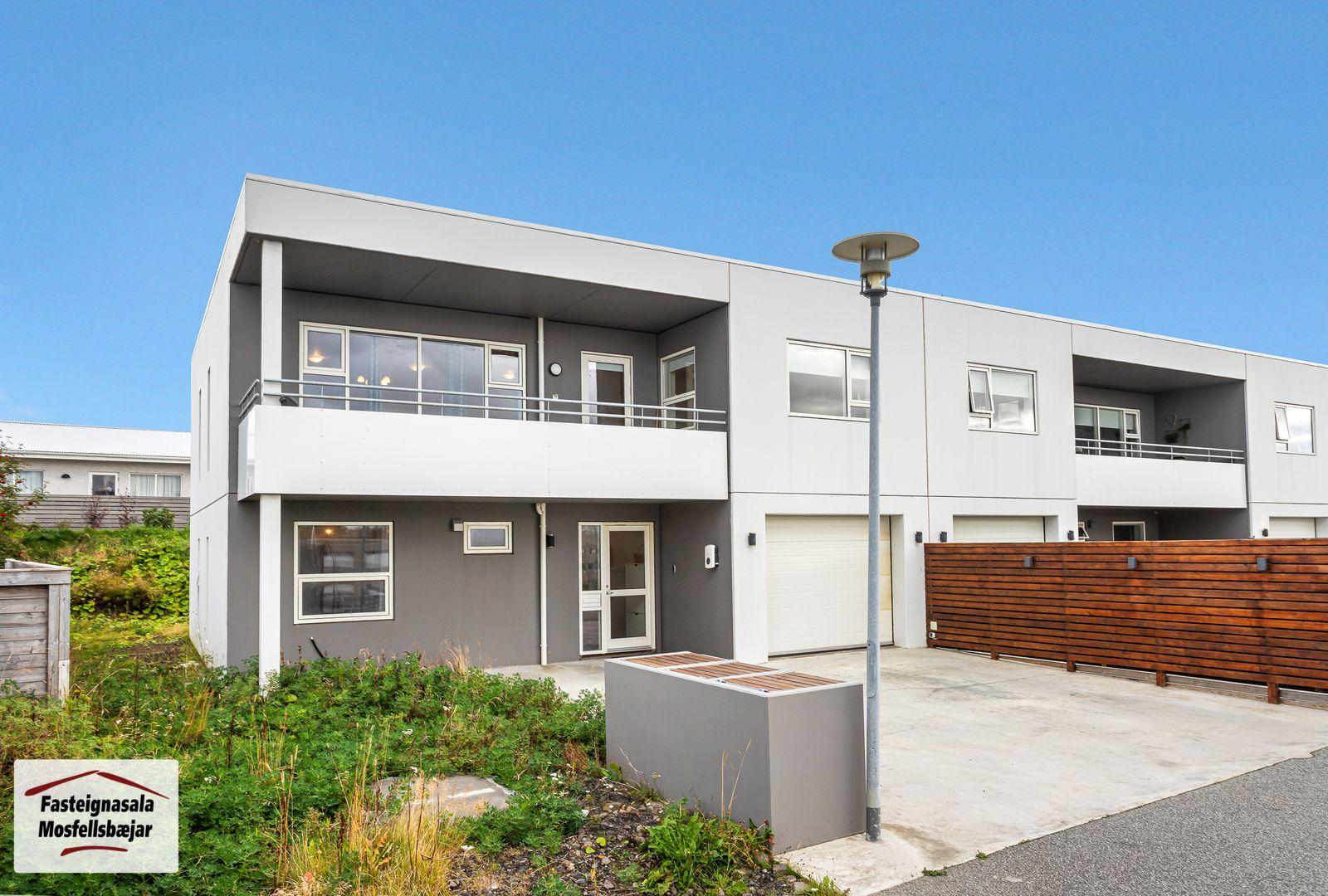 ** Opið hús miðvikudaginn 29. október frá kl. 17:00 til 17:30 - Svanþór Einarsson, löggiltur fasteignasali - svanthor@fastmos.is eða 698-8555 - Steingrímur Benediktsson, löggiltur fasteignasali - steingrimur@fastmos.is eða 862-9416 - Theodór Emil Karlsson, löggiltur fasteignasali - teddi@fastmos.is eða 690-8040 ** Fasteignasala Mosfellsbæjar kynnir: Fallegt og fjölskylduvænt 229,9 m2 5 herbergja endaraðhús á tveimur hæðum ásamt bílskúr við Kvíslartungu 112 í Mosfellsbæ. Fallegt útsýni. Birt stærð eignarinnar er 229,9 m2, þar af er íbúðarhluti 205,4 m2 og sambyggður bílskúr 24,5 m2. Á efri hæð er stofa, borðstofa, eldhús, hjónaherbergi með fataherbergi, sjónvarpshol (hægt að breyta í svefnherbergi) og baðherbergi. Stórar svalir til suðvesturs með fallegu útsýni. Á jarðhæð eru 3 svefnherbergi, baðherbergi, þvottaherbergi, geymsla, gangur, forstofa og bílskúr. Vel skipulögð eign á góðum stað í Leirvogstunguhverfi, stutt í leikskóla, vinsælar gönguleiðir og útivistarsvæði. ** Smelltu hér til að fá söluyfirlit sent strax ** Nánari lýsing:# Efri hæð:Stofa og borðstofa eru með parketi á gólfi. Úr stofu er útgengt á stórar svalir í suðvesturátt með fallegu útsýni.