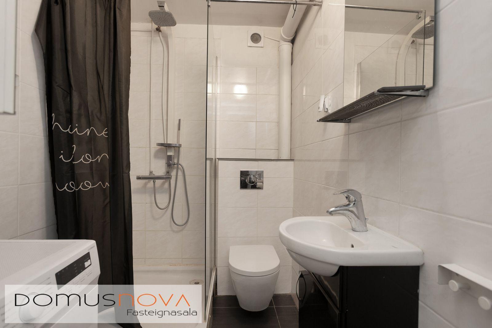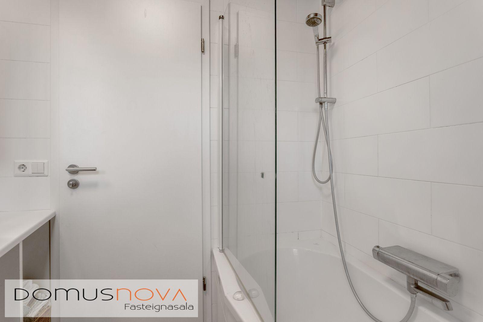 Baðherbergi: Flísalagt í hólf og gólf, sturta, innrétting undir vaski, speglaskápur á vegg, upphengt salerni. Tengi fyrir þvottavél.