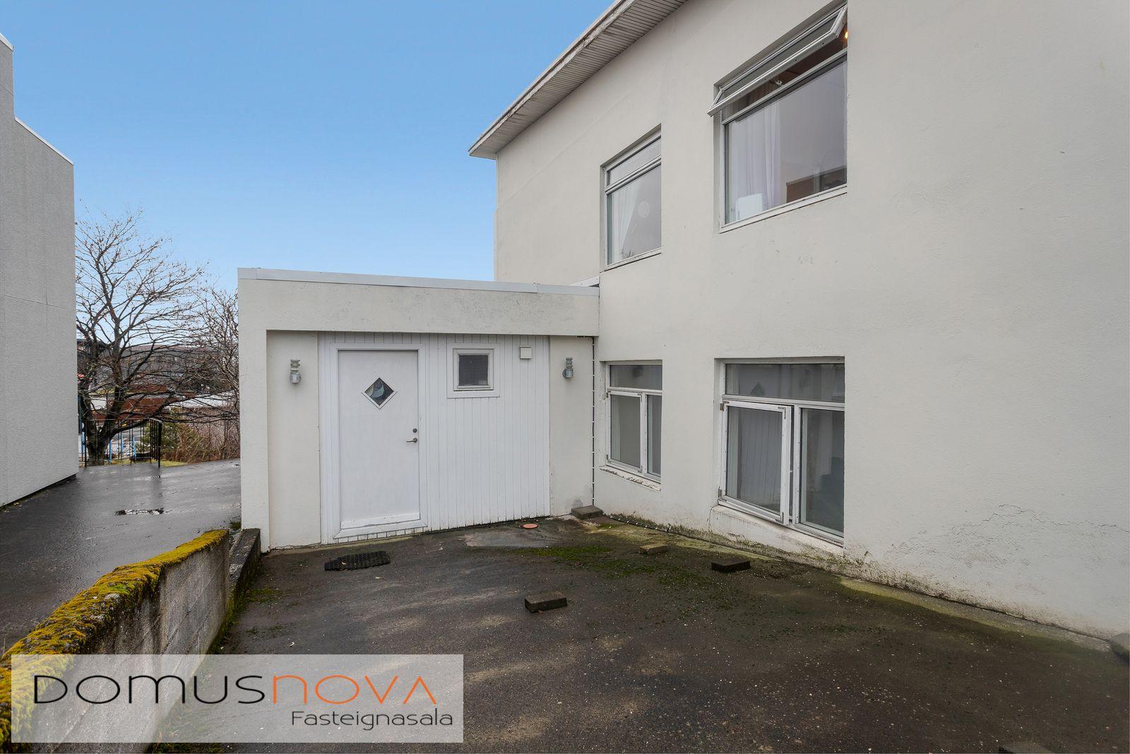 Köld sameiginleg útigeymsla er undir tröppum hússins. Stúdíóíbúð: með sérinngangi ( skráð sem vinnustofa ):