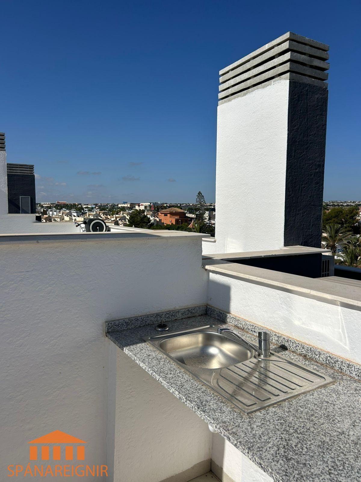 SPÁNAREIGNIR KYNNIR: *PENTHOUSE Í FLAMENCA VILLAGE, PLAYA FLAMENCA* *80 FM ÞAKSVALIR MEÐ SJÁVARÚTSÝNI* *SUNDLAUGAR, LÍKAMSRÆKT, GRÓIÐ UMHVERFI Á LOKUÐU SVÆÐI* *LYFTA OG STÆÐI Í BÍLAGEYMSLU*Lokað svæði, gróið og fallegt umhverfi, göngustígar, hlaupabrautir, sundlaugar, barnalaugar, líkamsræktraraðstaða, kaffihús/bar og ótal margt fleira sem gerir þetta án efa að flottasta íbúðahverfinu á Costa Blanca svæðinu.