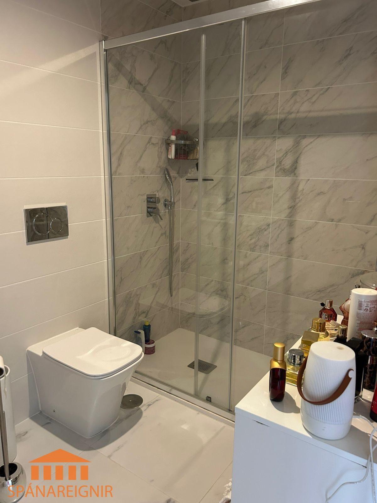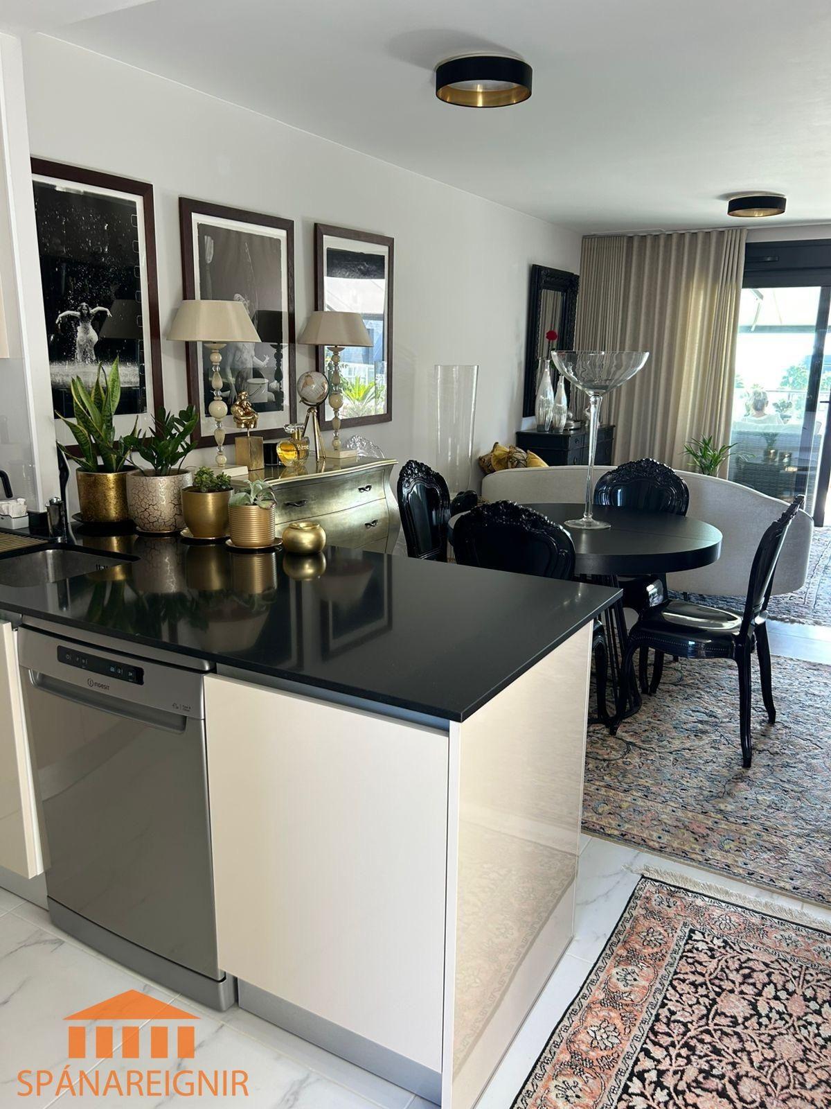 Eignin er í nýlegu lyftuhúsi og henni fylgir geymsla og stæði í bílageymslu. 2 svefnherbergi og 2 baðherbergi. Eldhús skemmtileg opið við stofu. Frá stofu er gengið út á 13 fm svalir til suðurs. Eigninni fylgja 80 fm þaksvalir með frábæru útsýni til sjávar. Þvottahús og geymsla innan íbúðar. Falleg hönnun og vandaðar innréttingar. Glæsileg sameign með sundlaug, heitum pottum og líkamsræktaraðstöðu, kaffihúsi/bar ofl. Góð leikaðstaða fyrir börnin. Frábært útsýni m.a. til sjávar.