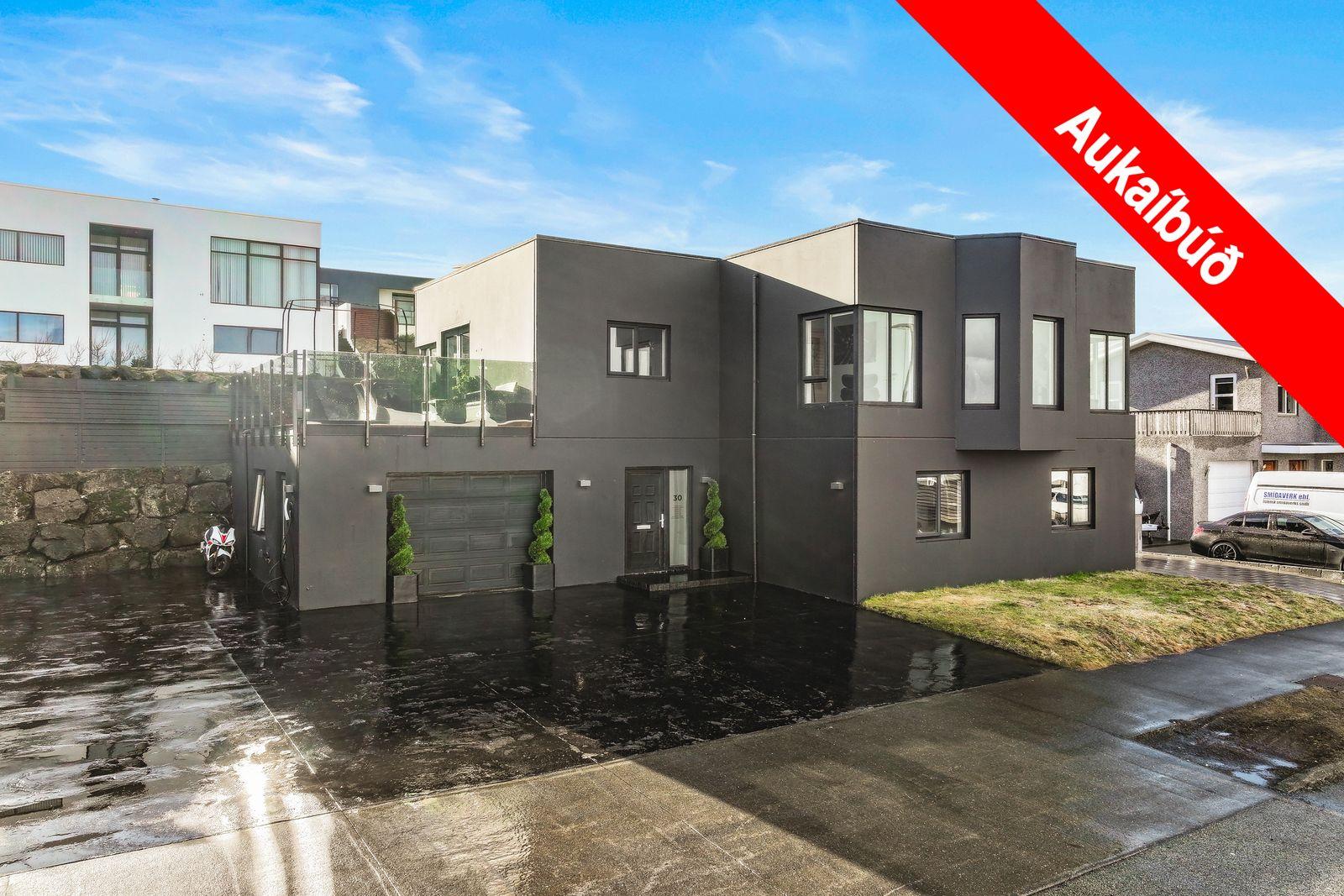 Húsið er bjart, rúmgott og innréttað með fallegum efnum, þar sem granítflísar prýða nær öll gólf rýma. Eignin býður upp á rúmgóð svefnherbergi, fallegt og nútímalegt eldhús, stílhreint baðherbergi og skemmtilegu alrými með einstöku útsýni.