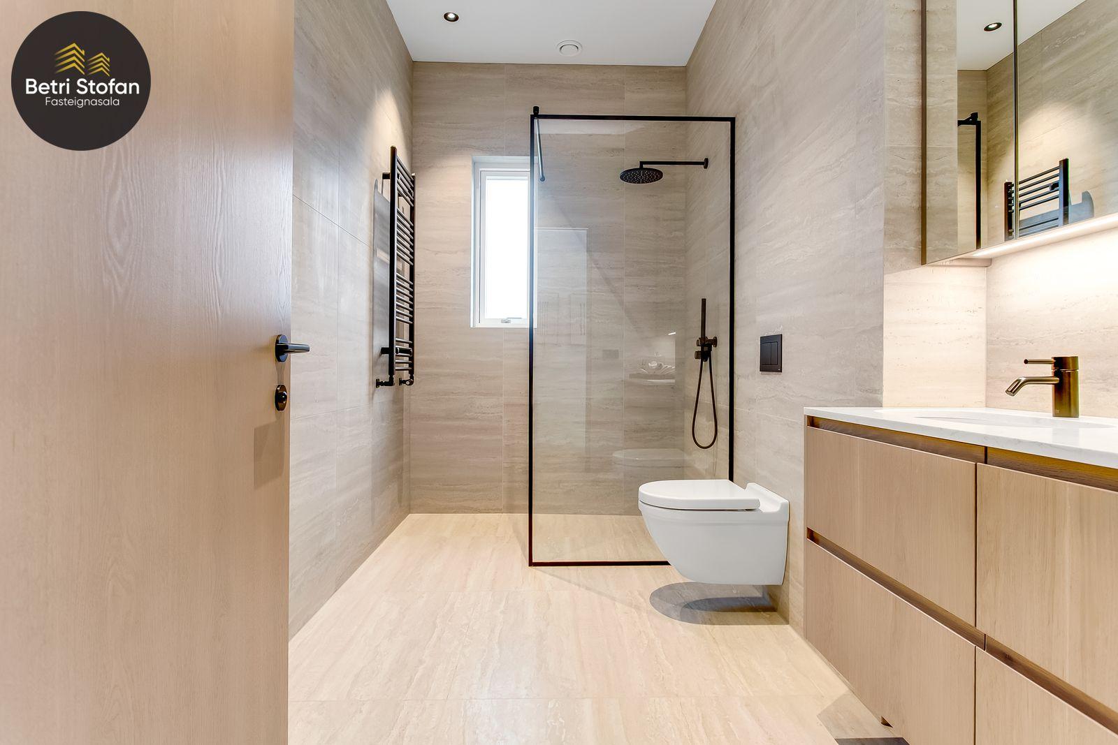 Íbúðin skilast án gólfefna utan baðherbergja og þvottahús sem skilast flísalögð.