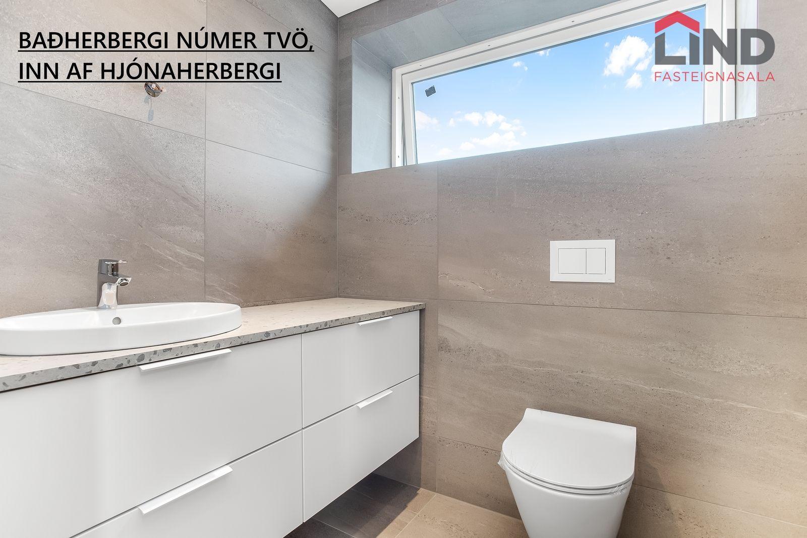 Baðherbergi númer tvö er inn af hjónaherbergi