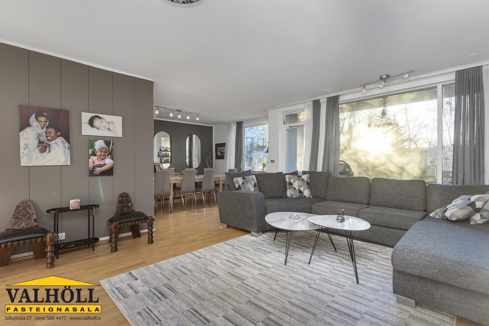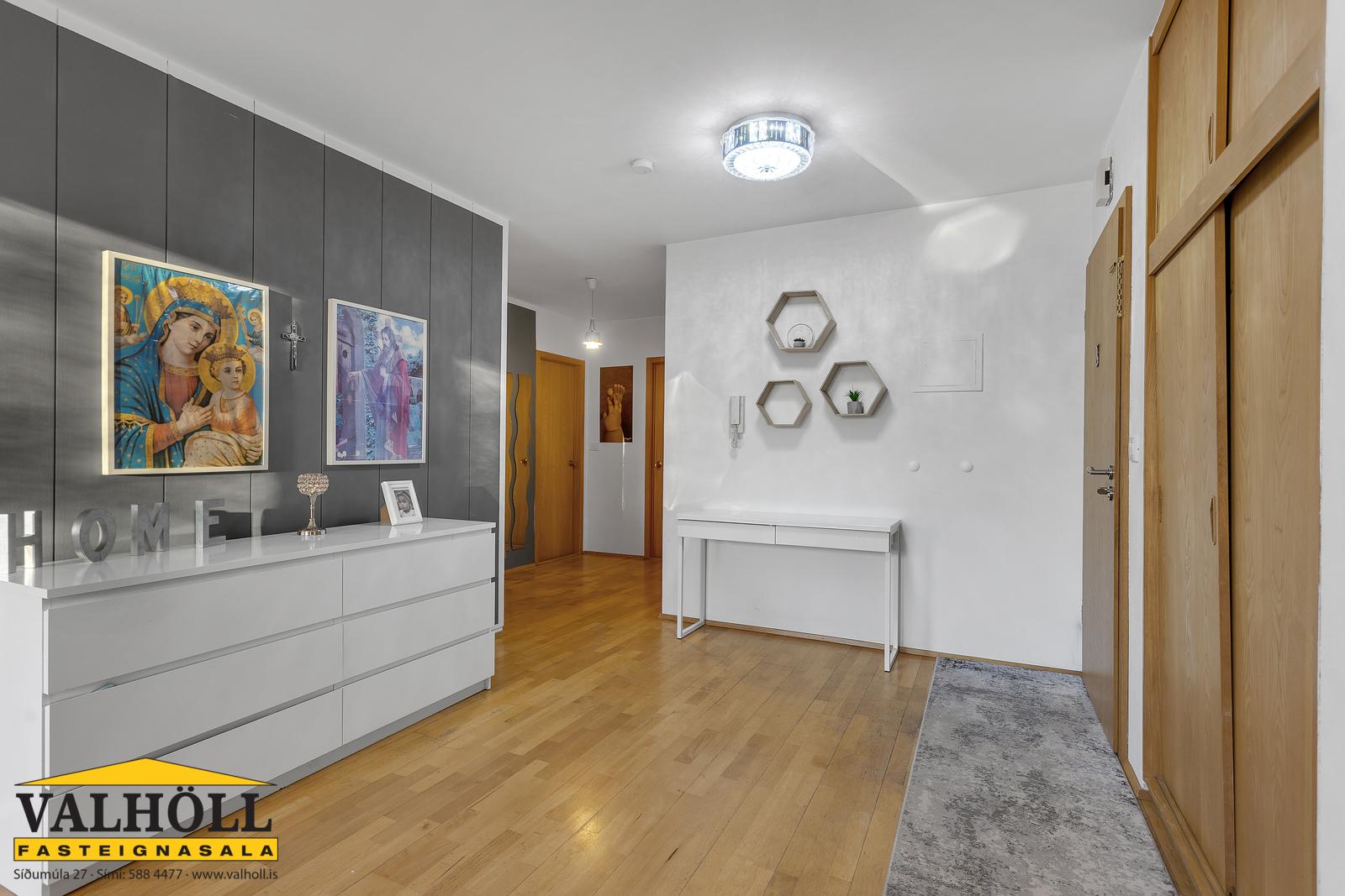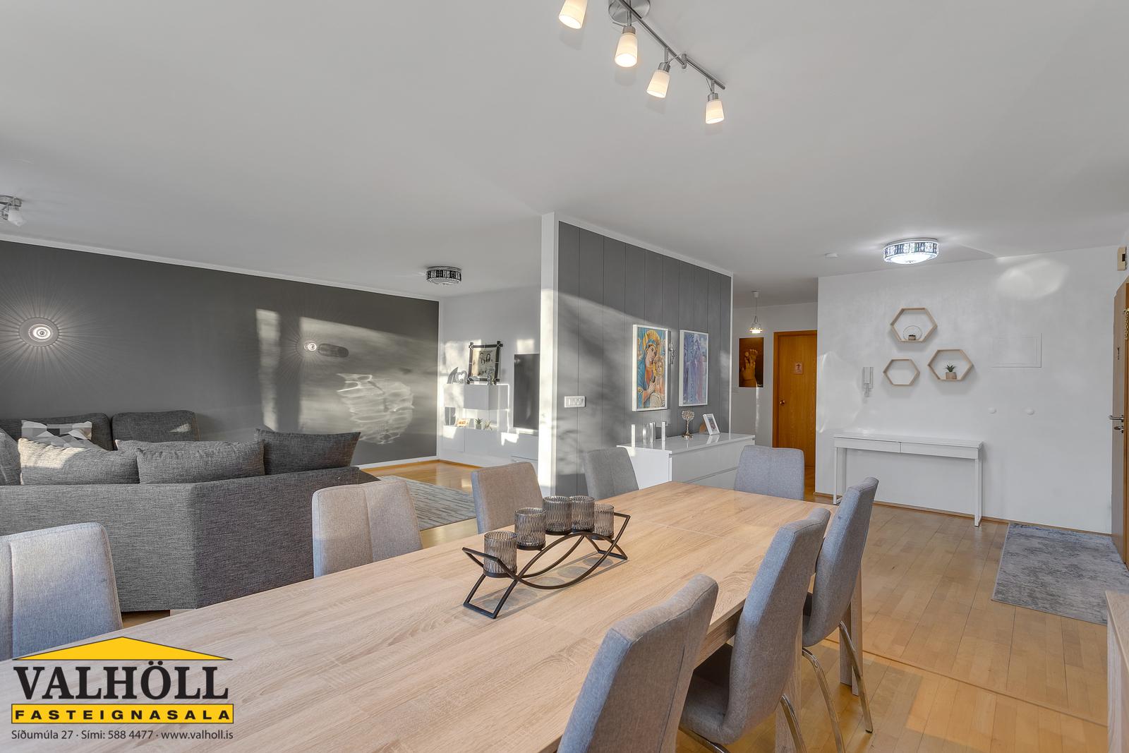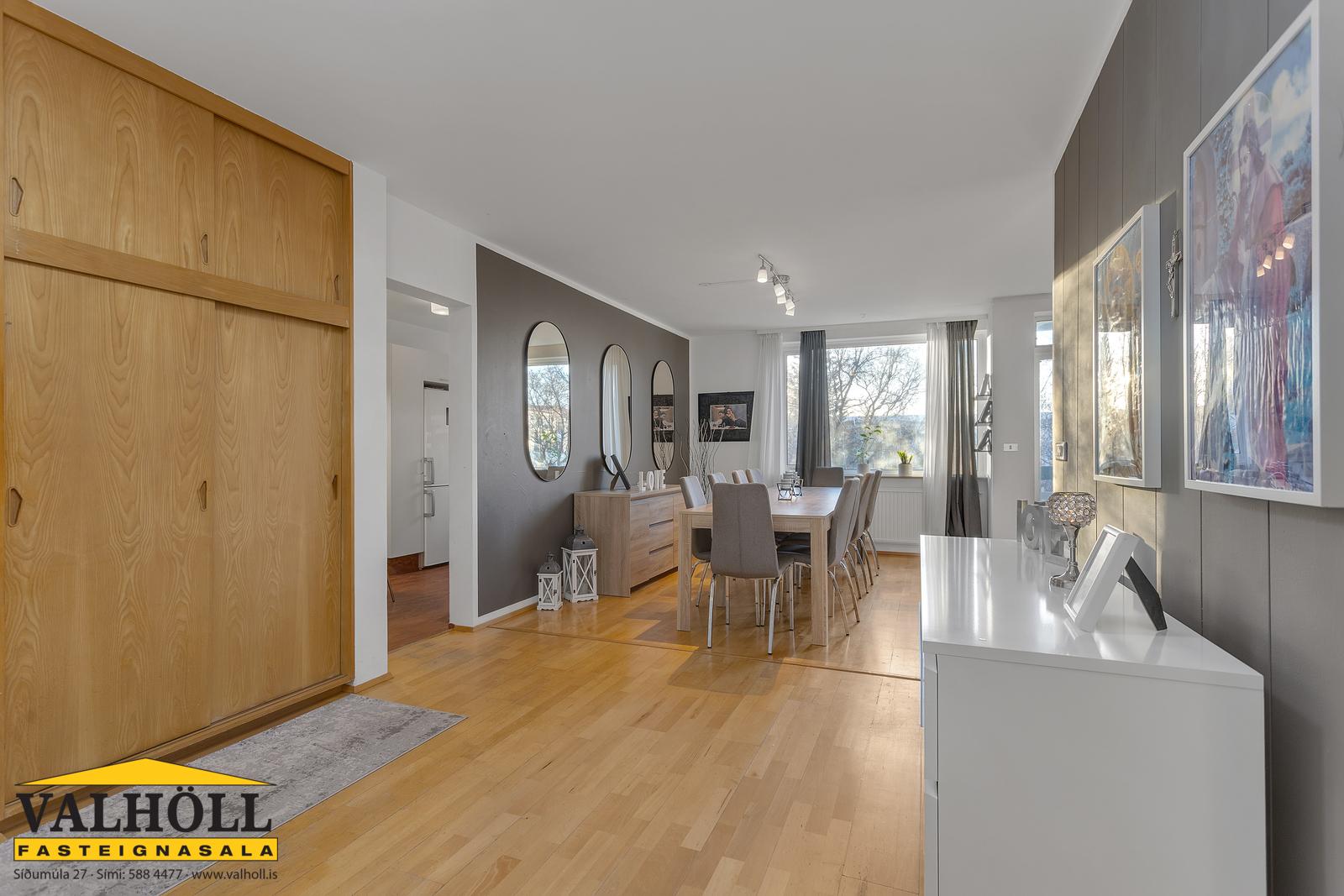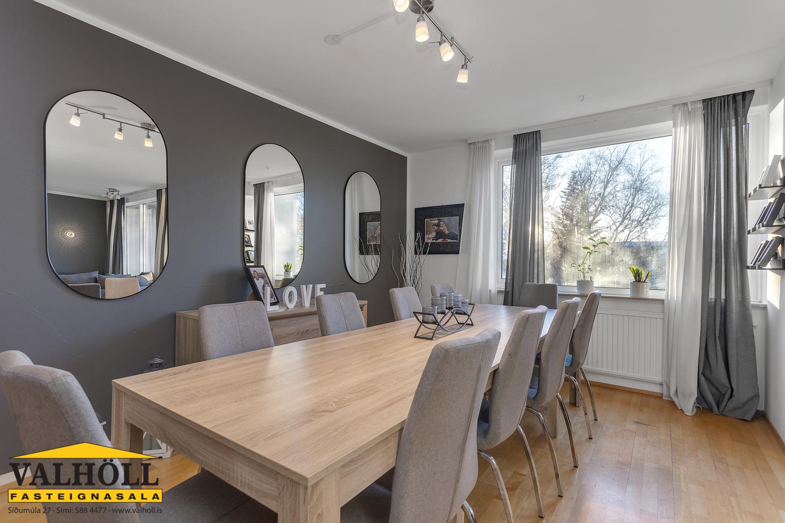 Um skoðunar- og aðgæsluskyldu: Í lögum um fasteignakaup nr. 40/2002 er kveðið á um ríka skoðunarskyldu kaupenda á fasteignum. Valhöll fasteignasala bendir væntanlegum kaupendum á að kynna sér vel ástand fasteigna við skoðun og fyrir tilboðsgerð og ef þurfa þykir að leita til sérfræðinga um nánari ástandsskoðun. Forsendur söluyfirlits: Söluyfirlit er samið af fasteignasala í samræmi við ákvæði laga nr. 70/2015. Þær upplýsingar sem fram koma í söluyfirliti þessu eru sóttar í opinberar skrár, til seljanda sjálfs og eftir atvikum til húsfélags. Seljandi veitir upplýsingar um eign í samræmi við upplýsingaskyldu laga um fasteignakaup nr. 40/2002, og ábyrgist að þær séu réttar. Fasteignasali sannreynir að þær upplýsingar séu réttar með sjónskoðun á eigninni. Fasteignasali getur ekki fullyrt um ástand og eiginleika þeirra hluta fasteigna sem ekki eru aðgengilegir og sjást ekki berum augum, t.d. lagnir, dren, skólp og þak. Það sama á við um staðhæfingar seljanda eignar um viðhald og einstaka framkvæmdir.