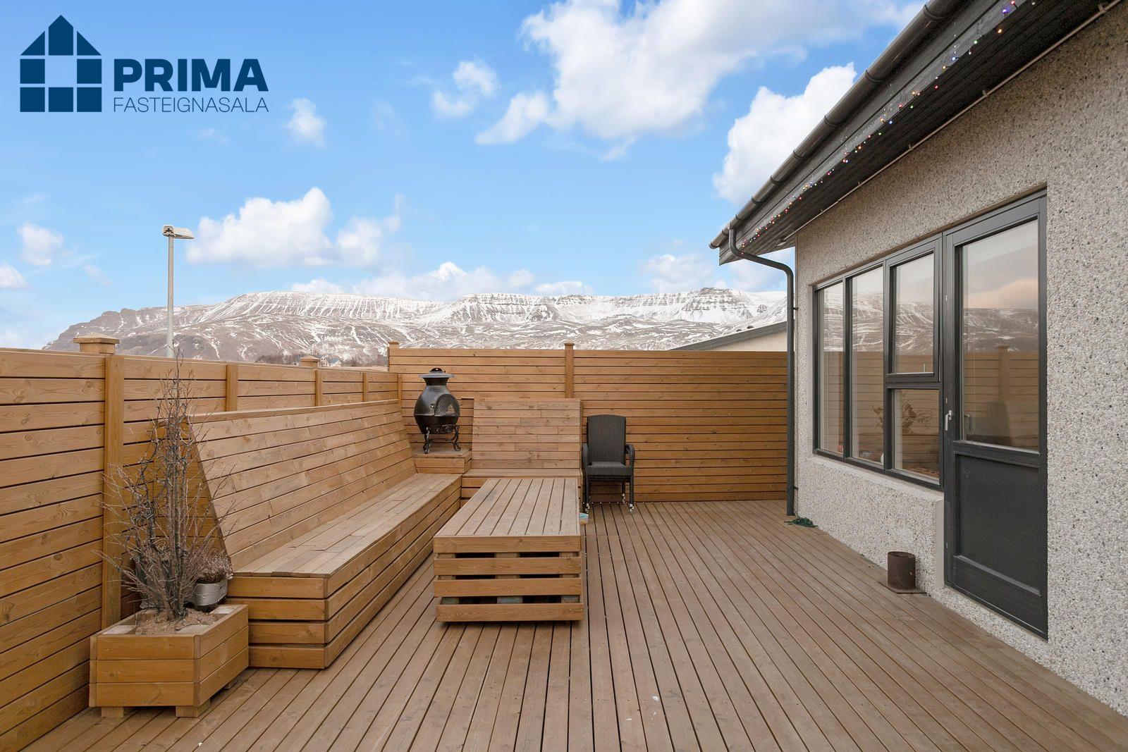Nánari Lýsing: Anddyri/gangur – Flísar á anddyri, Góðir fataskápar á gangi inn af anddyri. Hurð úr anddyrisgangi inn í bílskúr. Búið er að gera snyrtingu með sturtu inn af bílskúr. Yfir snyrtingu er gott geymsluloft sem gott aðgengi er að úr bílskúr. Tvö barnaherbergi - Inn af anddyrisgangi eru tvö barnaherbergi bæði með skápum og harðparketi á gólfum. Eldhús – Gott eldhúsrými, eyja með spanhelluborði og góðri borðaðstöðu, ofn og örbylgjuofn í innréttingu. Pláss fyrir amerískan ísskáp í eldhúsi. Góð lofthæð í eldhúsi með innfelldri lýsingu. Stofa – Björt stofa með harðparkerti á gólfi. Hátt er til lofts í stofu, innfelld lýsing í lofti. Hurð út á sólpall í suðvestur. Sólpallar eru ágætlega stórir með háum skjólveggjum og heittum potti með led lýsingu. Einnig er pallur með skjólveggjum við gafl á húsi. Baðherbergi – Rúmgott flísalagt baðherbergi með baðkari, flísalögð sturta með glerþili þar við. Innrétting með ágætu skápaplássi. Þvottahús innan baðherbergis með góðu skápaplássi. Hjónaherbergi – Ágætir fataskápar og harðparket á gólfi. Barnaherbergi – Fataskápur og harðparketi á gólfi.
