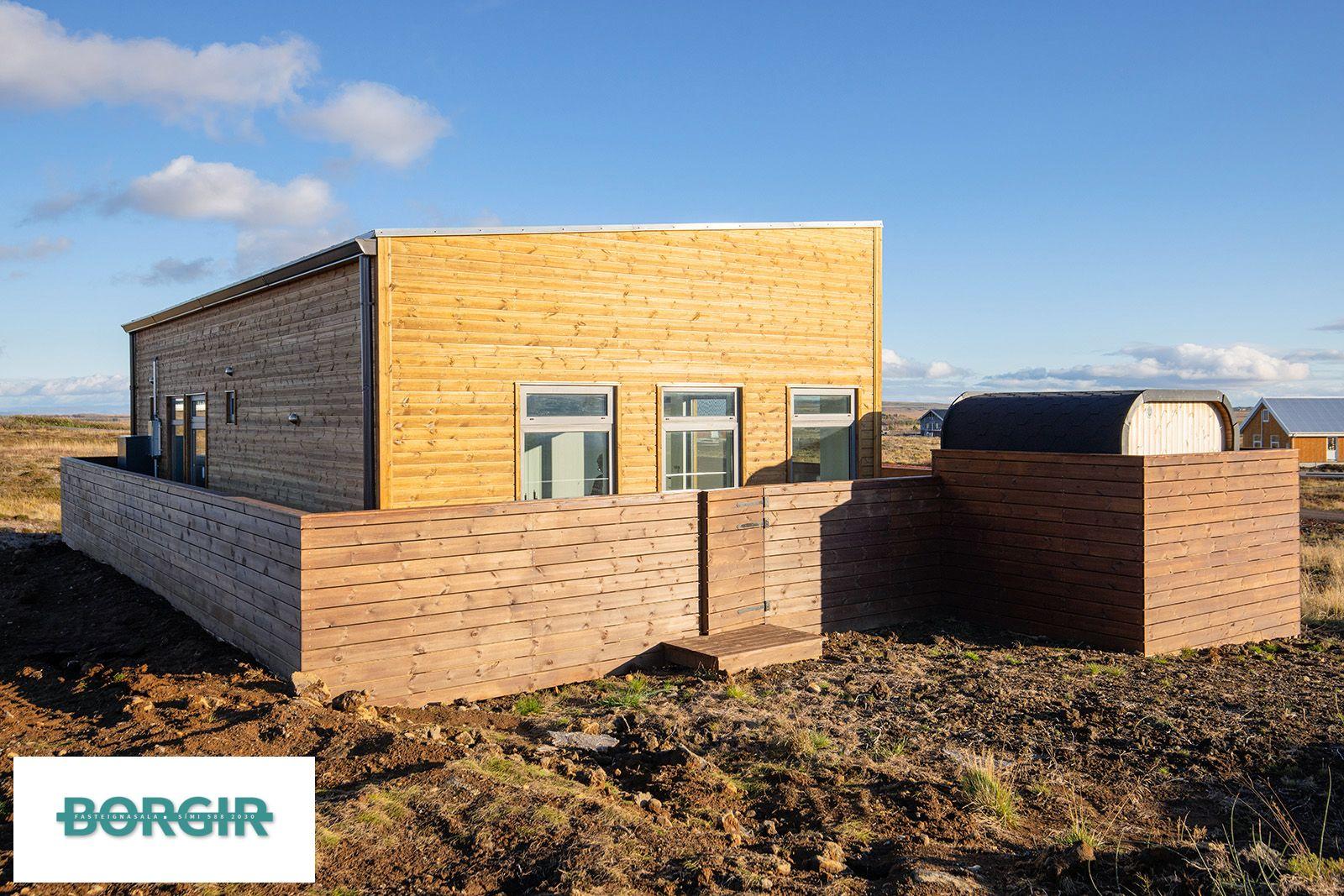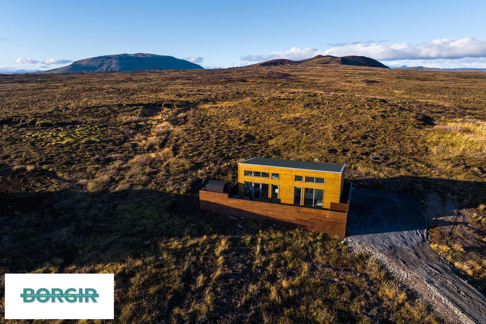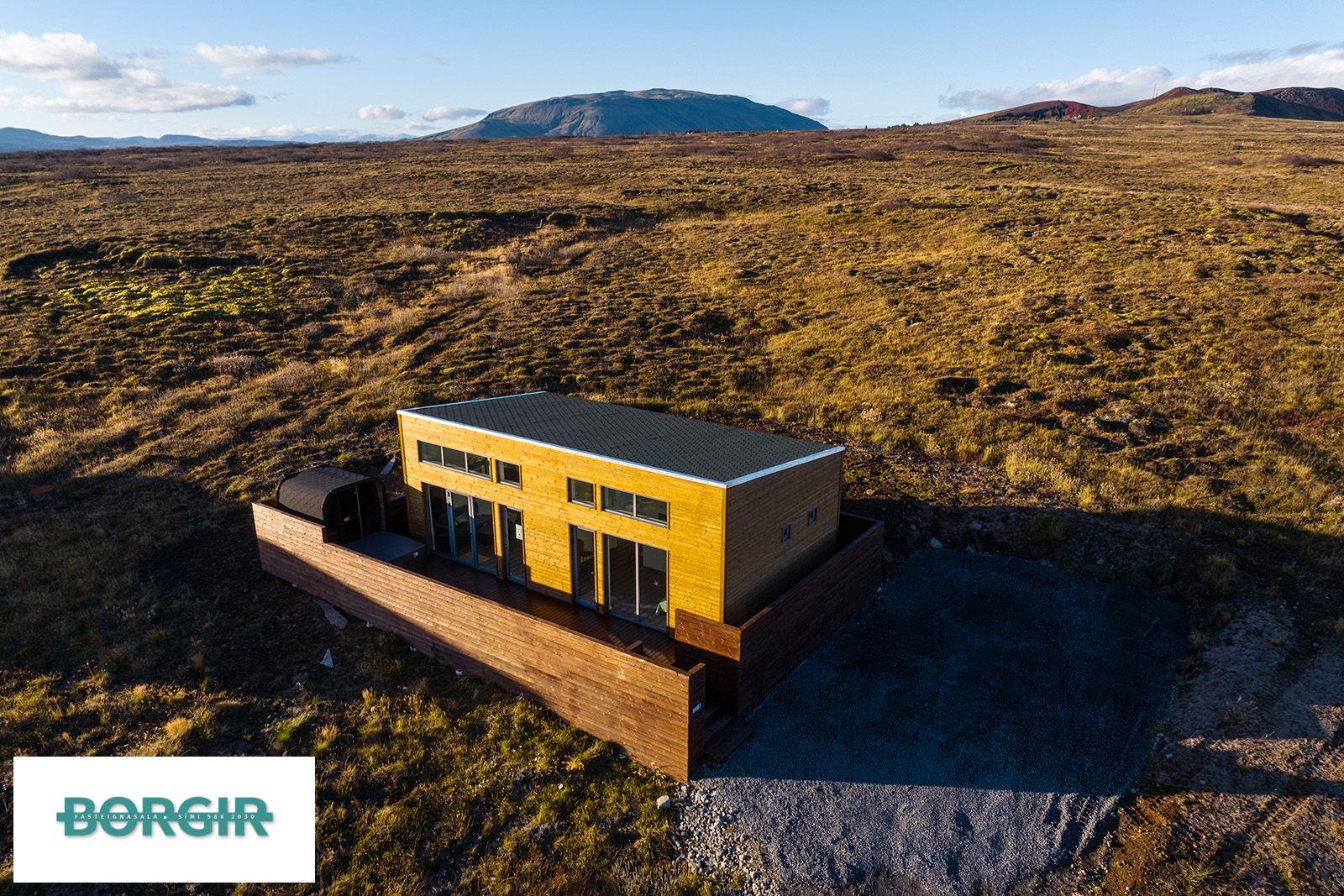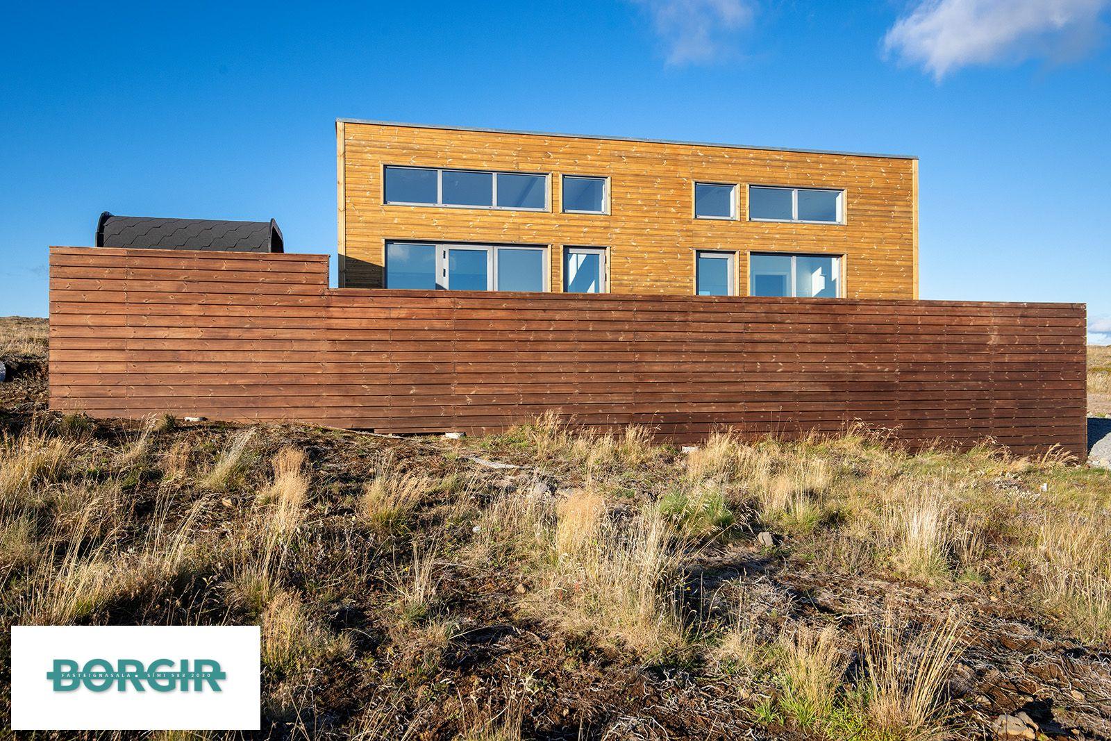 Um er að ræða hús sem er framleidd af Citic Construction sem er einn af stæðstu framleiðendum á húsum í heimi og er stálgrindar einingahús með tveimur svefnherbergjum, tveimur baðherbergjum, eldhúsi/borðstofu/stofu, mikilli lofthæð og gólfsíðum gluggum og fallegu útsýni. Hiti í gólfi frá Danfoss. Halogen ljós í loftinu. Pallur með skjólvegg. Öryggisgler er í öllu húsinu. Húsið er sett saman af Gunnarsfell Verktakar. Rafmagns heitur pottur og sauna.