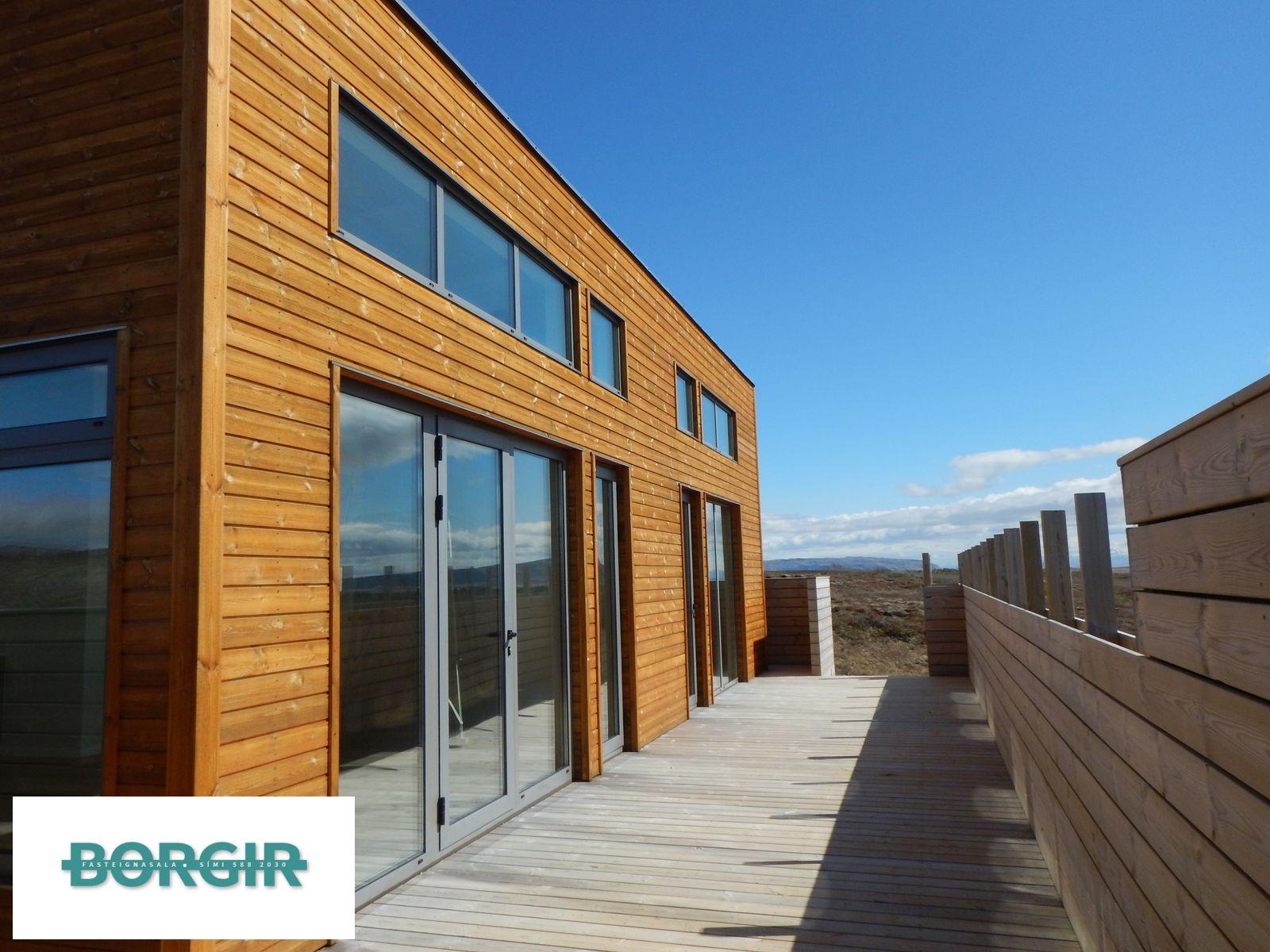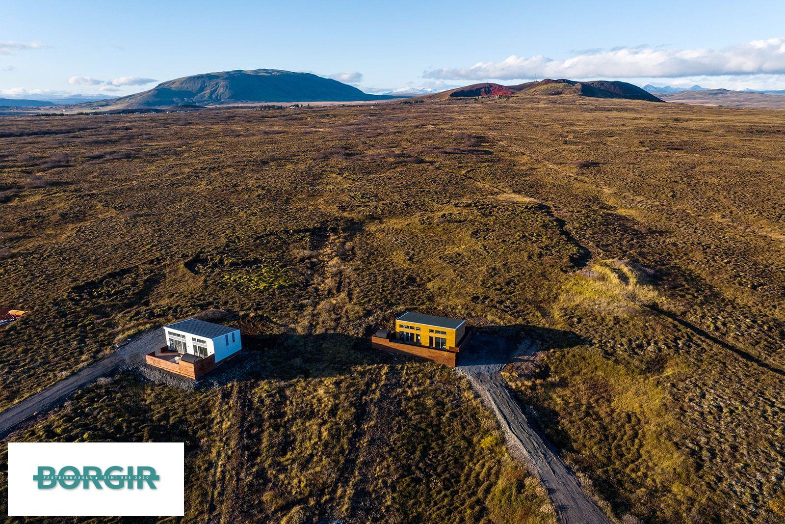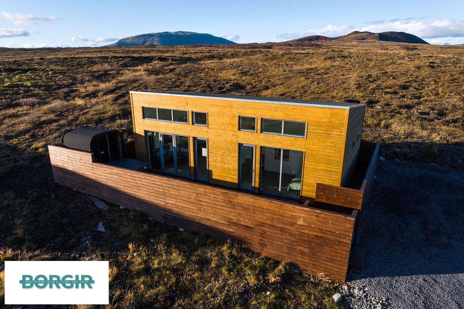 Um er að ræða hús sem er framleidd af Citic Construction sem er einn af stæðstu framleiðendum á húsum í heimi og er stálgrindar einingahús með tveimur svefnherbergjum, tveimur baðherbergjum, eldhúsi/borðstofu/stofu, mikilli lofthæð og gólfsíðum gluggum og fallegu útsýni. Hiti í gólfi frá Danfoss. Halogen ljós í loftinu. Pallur með skjólvegg. Öryggisgler er í öllu húsinu. Húsið er sett saman af Gunnarsfell Verktakar. Rafmagns heitur pottur og sauna.