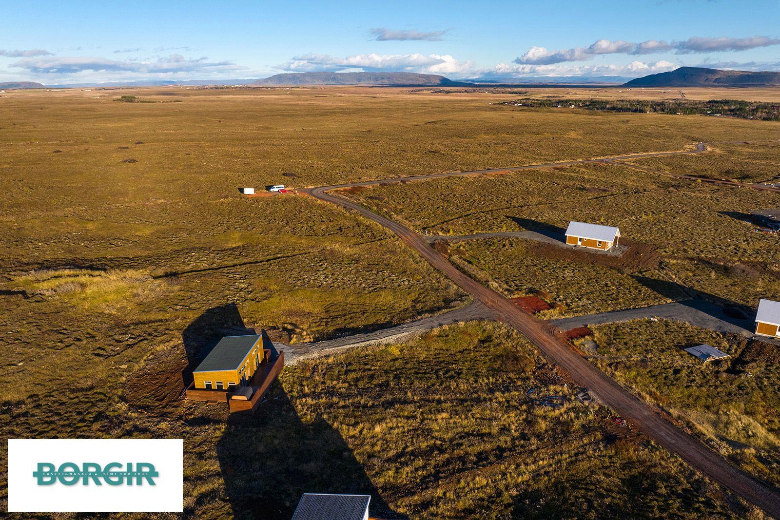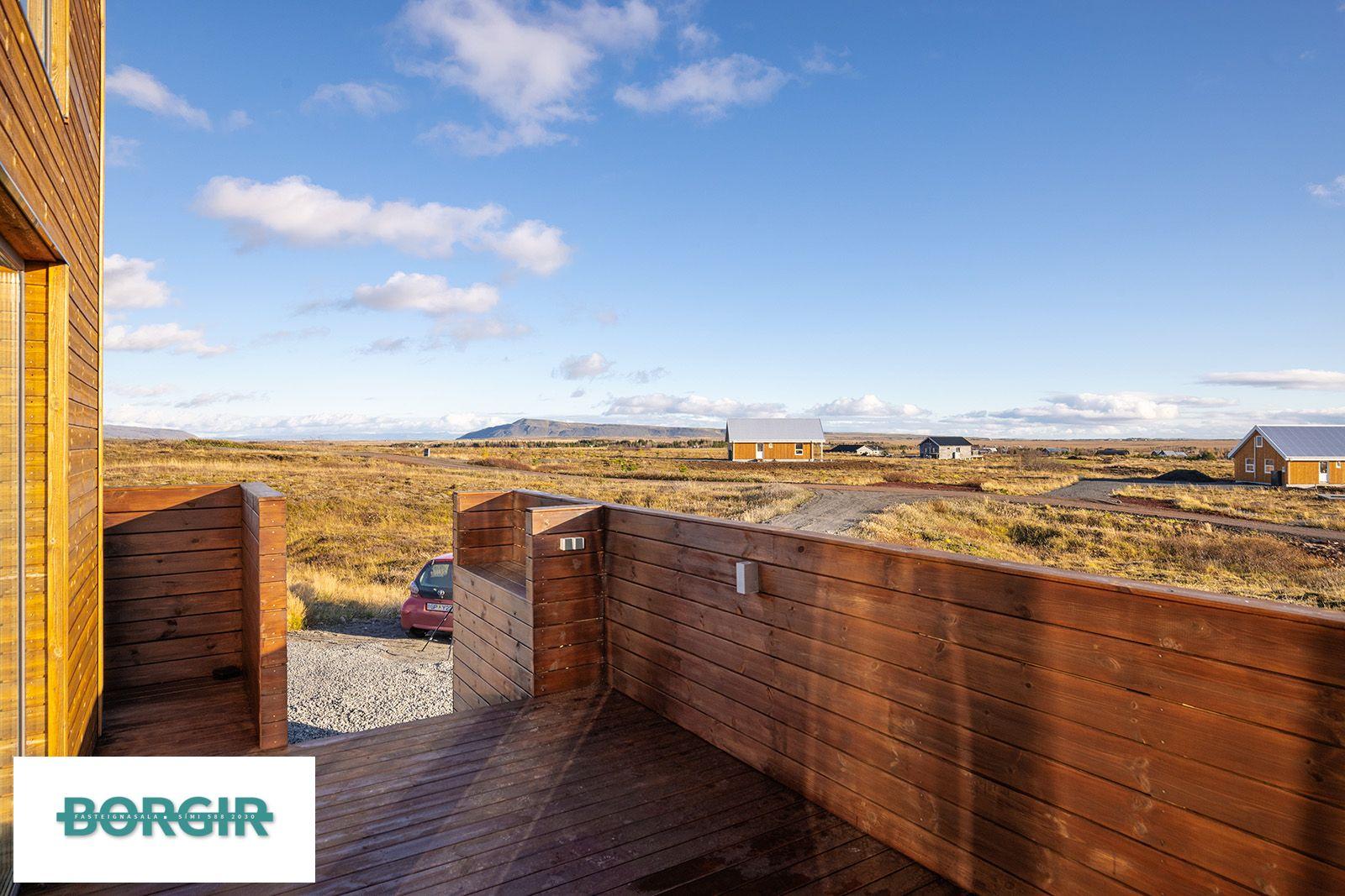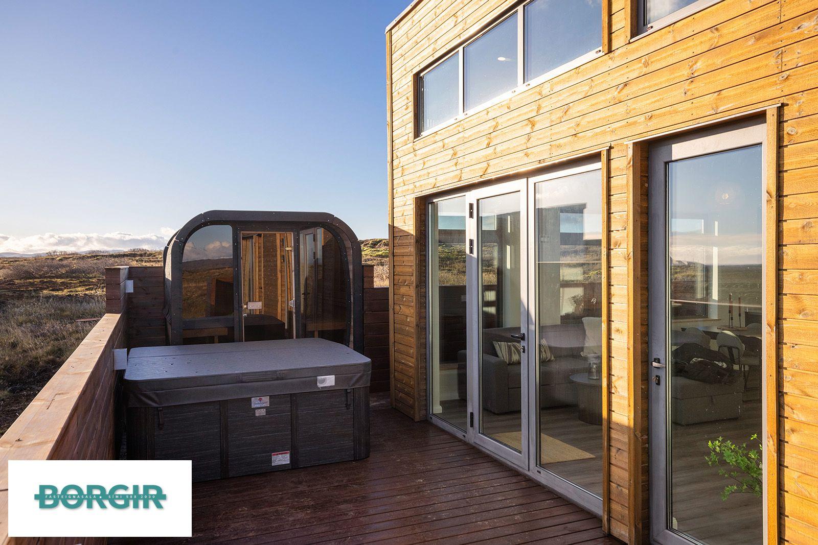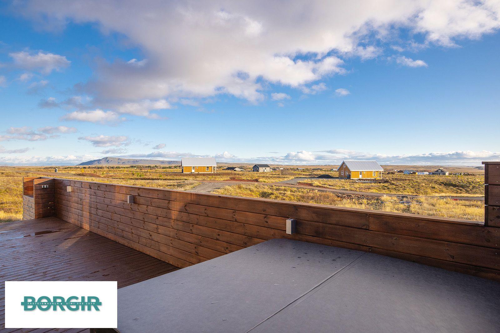 Um er að ræða hús sem er framleidd af Citic Construction sem er einn af stæðstu framleiðendum á húsum í heimi og er stálgrindar einingahús með tveimur svefnherbergjum, tveimur baðherbergjum, eldhúsi/borðstofu/stofu, mikilli lofthæð og gólfsíðum gluggum og fallegu útsýni. Hiti í gólfi frá Danfoss. Halogen ljós í loftinu. Pallur með skjólvegg. Öryggisgler er í öllu húsinu. Húsið er sett saman af Gunnarsfell Verktakar. Rafmagns heitur pottur og sauna.