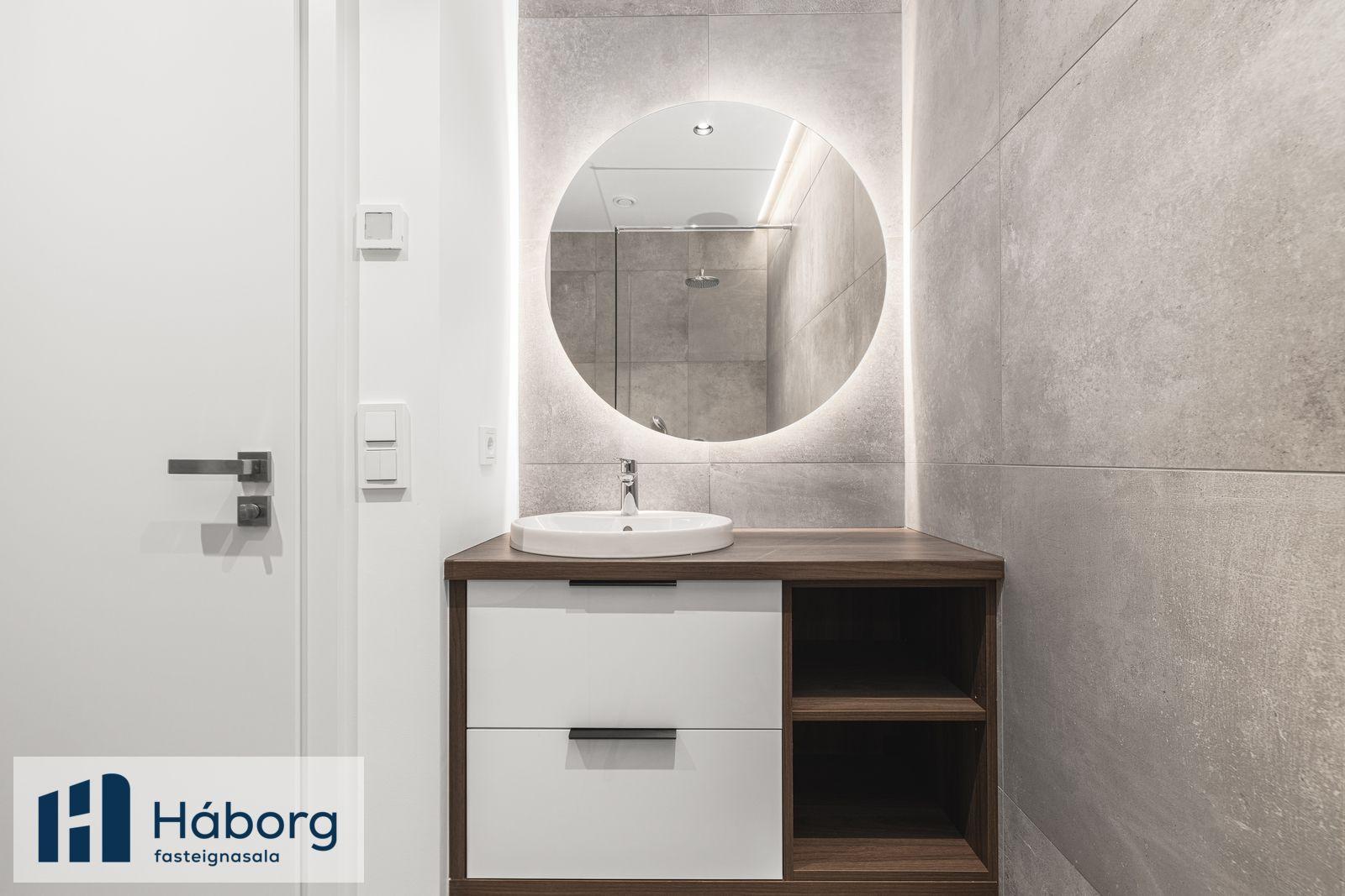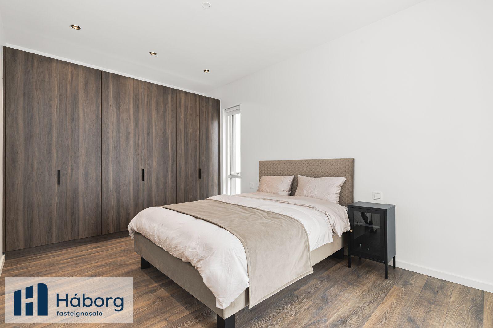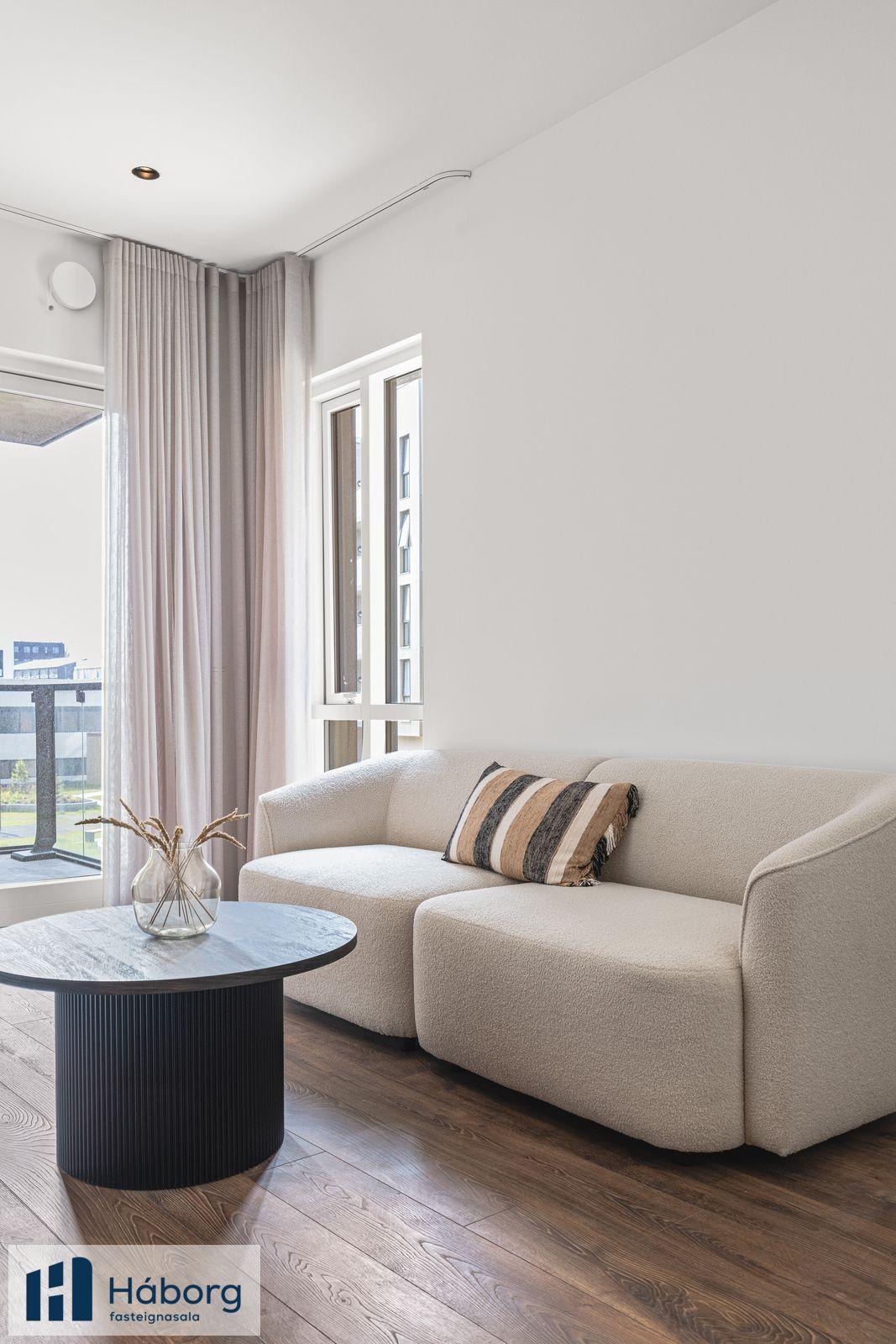 Um er að ræða glæsilega íbúð með útsýni, gott birtuflæði, gólfhita, aukin lofthæð, loftgæði góð, innbyggð lýsing og afhendist fullbúin með gólfefnum.