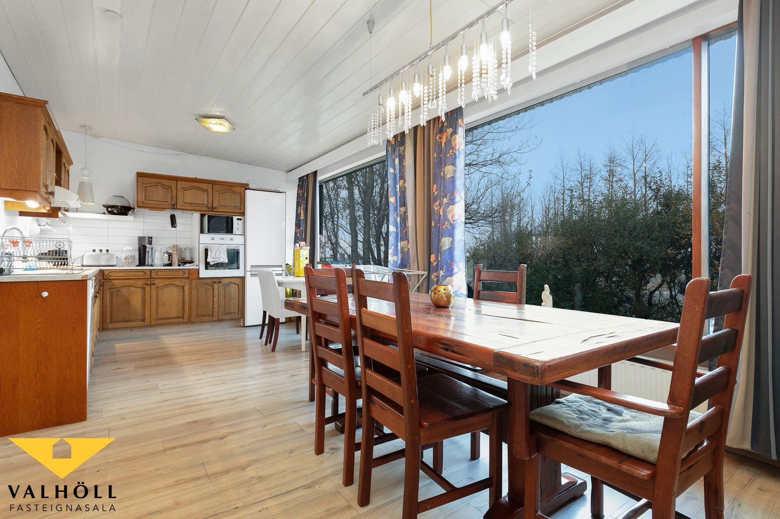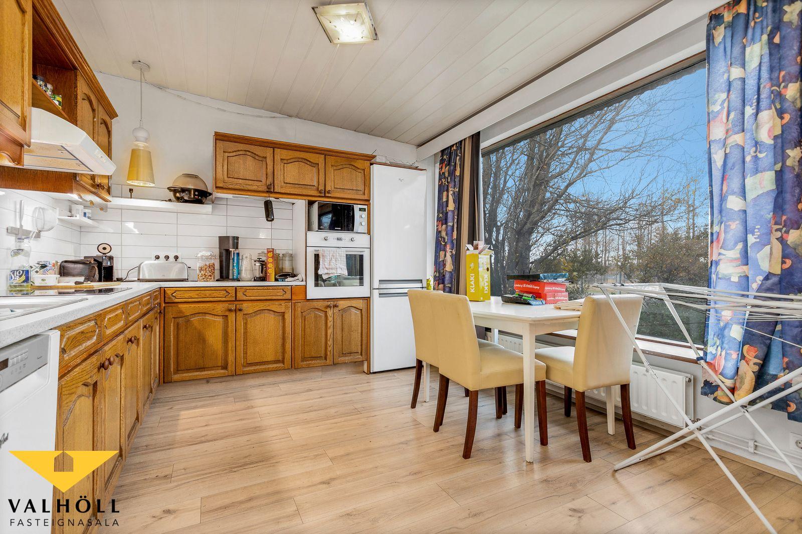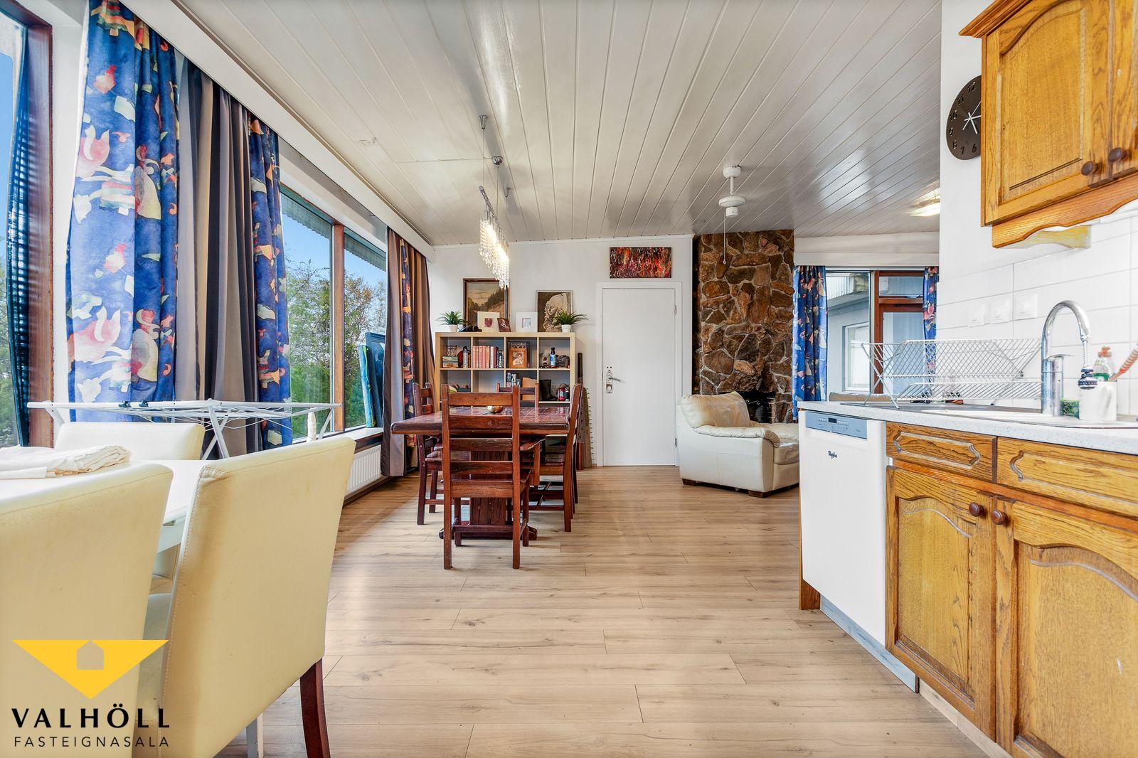 Einbýlis hús á einni hæð með viðbyggðum bílskúr og stórum sólpalli. Búið er að breyta eigninni og innrétta tvær aðskildar íbúðir í húsinu en hægt er að breyta því fyrirkomulagi í upprunalegt horf. Önnur íbúðin er með forstofu gangi, tveimur svefnherbergjum, stofu, borðstofu, opnu eldhúsi og stóru baðherbergi. Hin íbúðin er með með þremur svefnherbergjum, opnu eldhúsi, baðherbergi og litlu sjónvarpsholi.