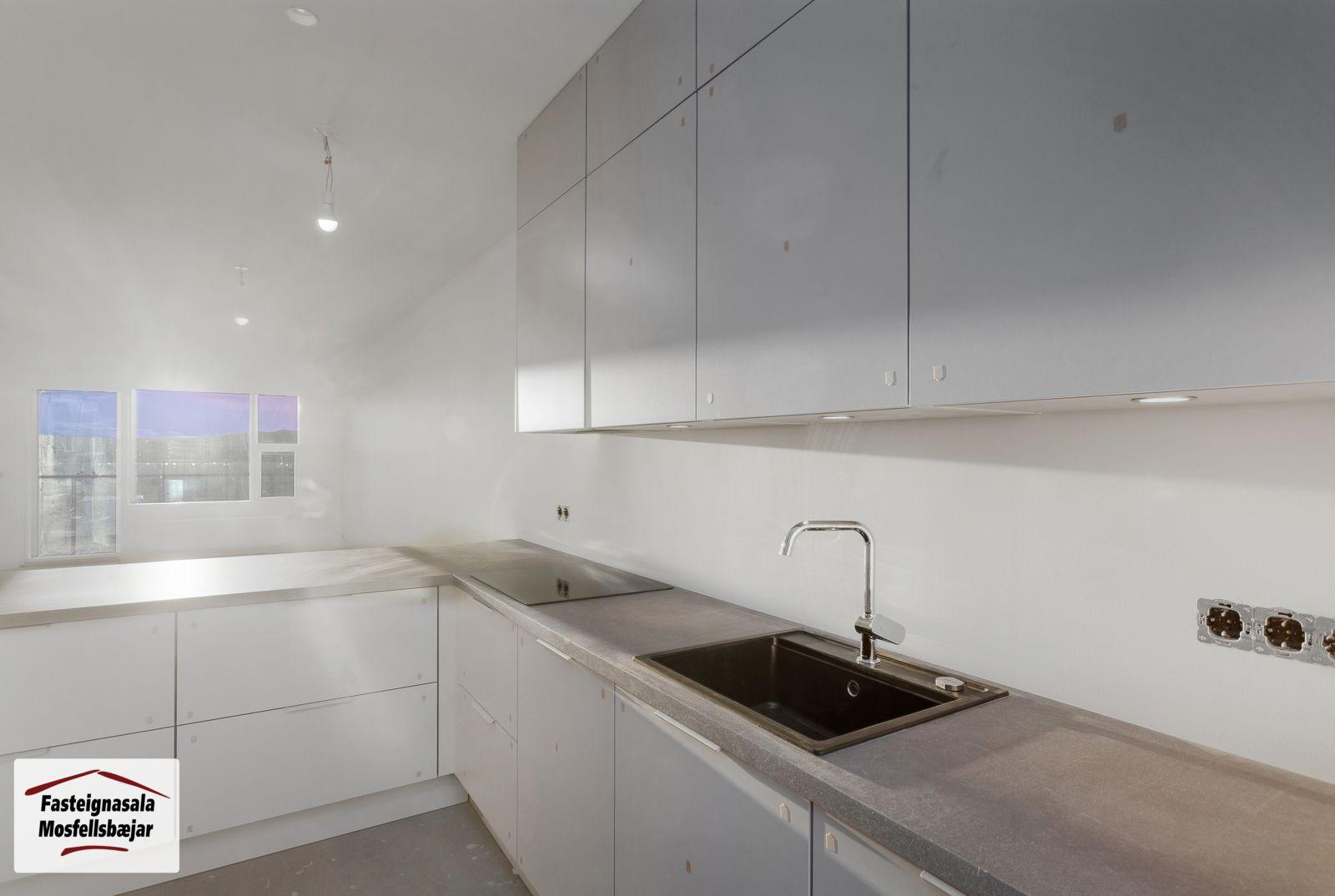 ** Opið hús mánudaginn 8.desember frá kl. 17:00 til 17:30 - Svanþór Einarsson, löggiltur fasteignasali - svanthor@fastmos.is eða 698-8555 - Theodór Emil Karlsson, löggiltur fasteignasali - teddi@fastmos.is eða 690-8040 - Steingrímur Benediktsson, löggiltur fasteignasali - steingrimur@fastmos.is eða 862-9416 **Fasteignasala Mosfellsbæjar kynnir: Ný og glæsileg 3ja herbergja íbúð á jarðhæð með sérinngangi ásamt bílastæði í bílageymsla í nýju lyftuhúsi við Úugötu 6-8 í Mosfellsbæ. Eignin er skráð 100,4 m2 en þar af íbúð 92,5 m2 og geymsla 7,9 m2. Eignin skiptist í forstofu, stofu, eldhús, 2 svefnherbergi, þvottahús, baðherbergi og geymslu. Svalir í suðurátt með fallegu útsýni. Eignin afhendist í febrúar/mars 2026 fullbúin en án gólfefna á alrými og herbergjum en flísar eru á forstofu, baðherbergi og þvottahúsi.Smelltu hér til að fá söluyfirlit sent strax.Nánari lýsing:Forstofa er með flísum á gólfi og fataskáp.