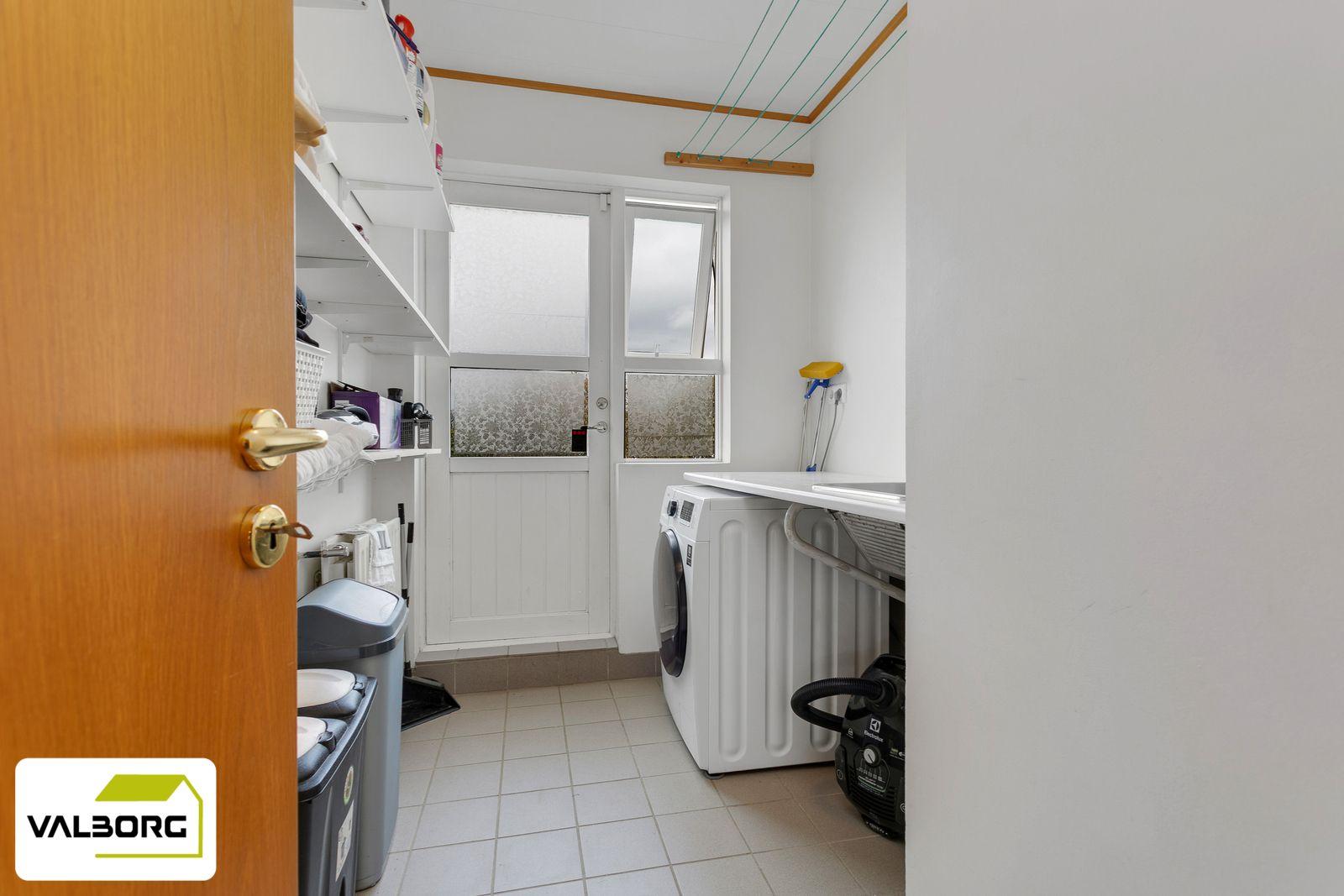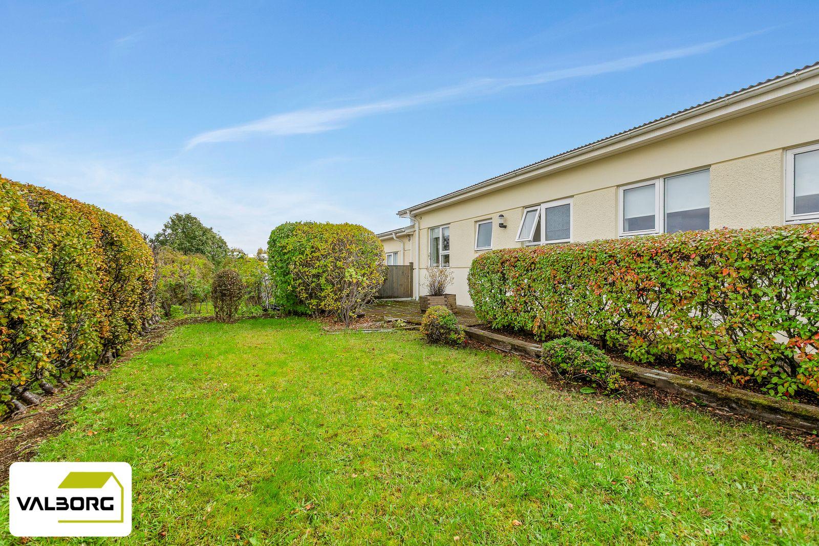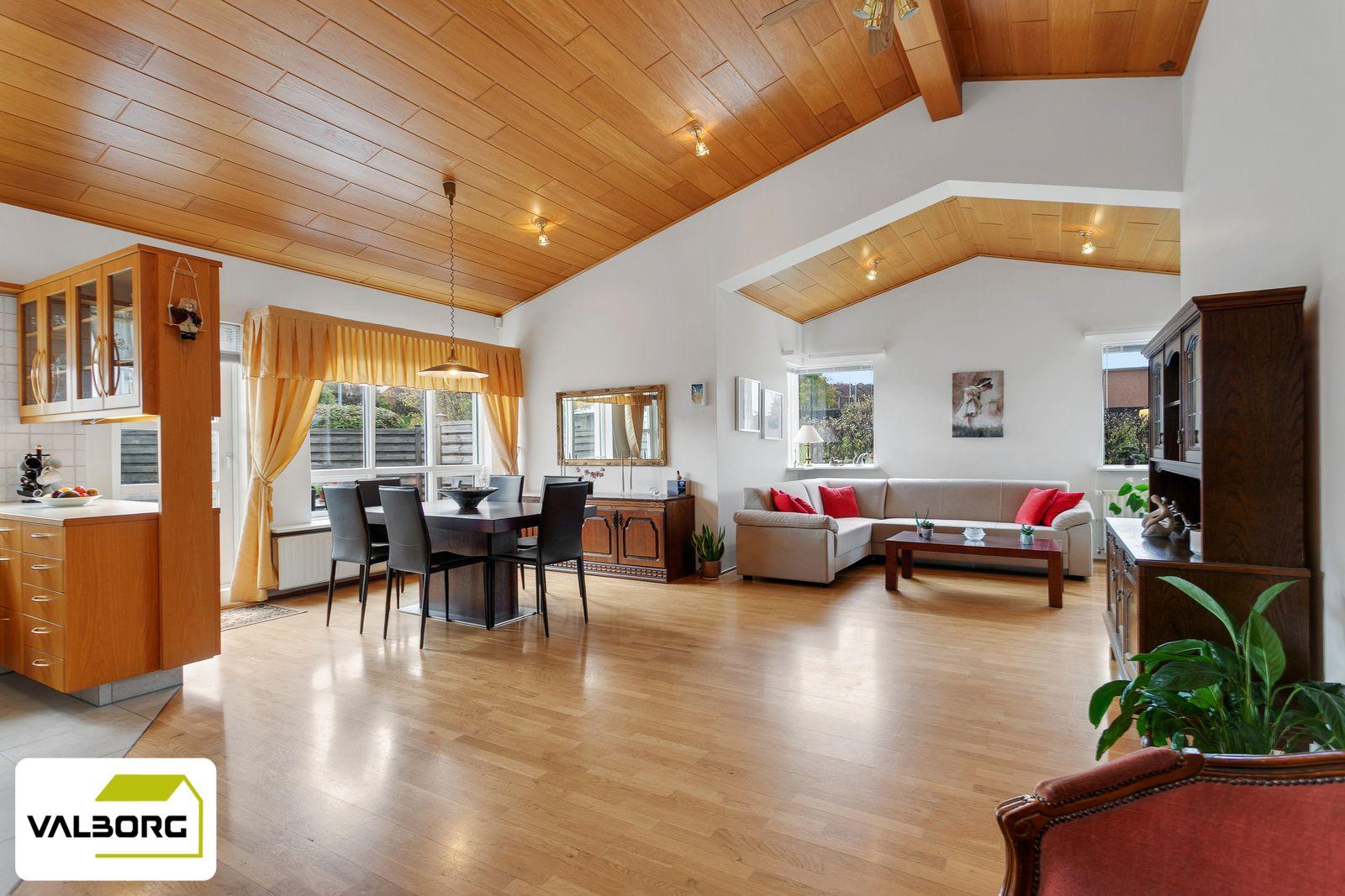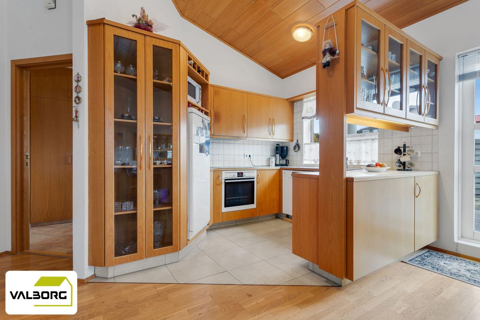 Nánari lýsing: Forstofa: Flísalögð með fataskápum. Innangengt í bílskúr. Hiti í gólfi Stofa/borðstofa: Bjartu og opið rými með hárri lofthæð. Parket á gólfi. Útgengt úr borðstofu út á verönd og garð. Eldhúsið: Ljós innrétting með glerskápum að hluta. Flísar á gólfi. Svefnherbergi I: Rúmgott herbergi með góðum skápum. Parket á gólfi. Svefnherbergi II: Rúmgott herbergi. Skápur og parket á gólfi. Baðherbergi: Ljósar flísar og góðar innréttingar. Sturta með glerhurð og handklæðaofn. Hiti í gólfi. Þvottahús: Með útgengi út í garð. Hillur og flísar á gólfi. Geymsla: Inn af bílskúr með hillum. Geymsluloft: geymsluloft fyrir ofan bílskúr. Bílskúr: 26,7 fm. Nýleg rafknúin bílskúrshurð. Geymsluskúr: Geymsluskúr er í bakgarði