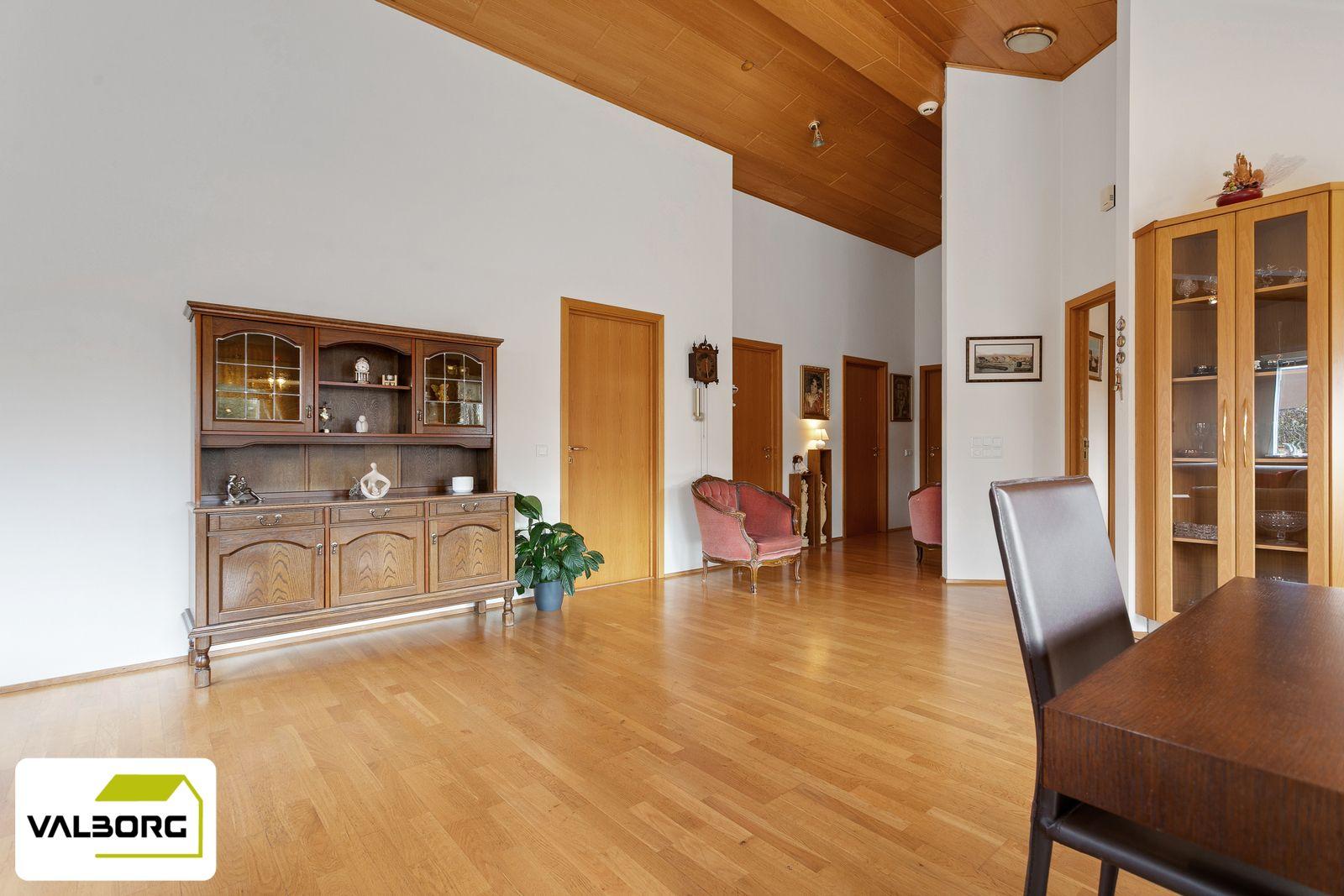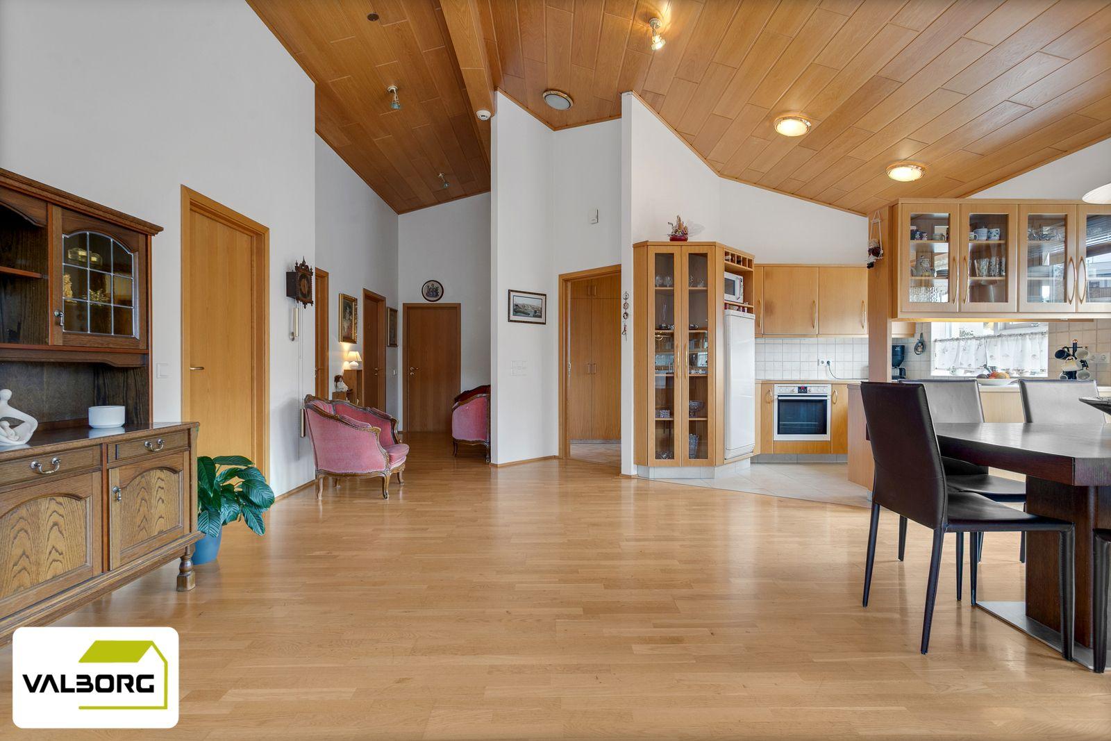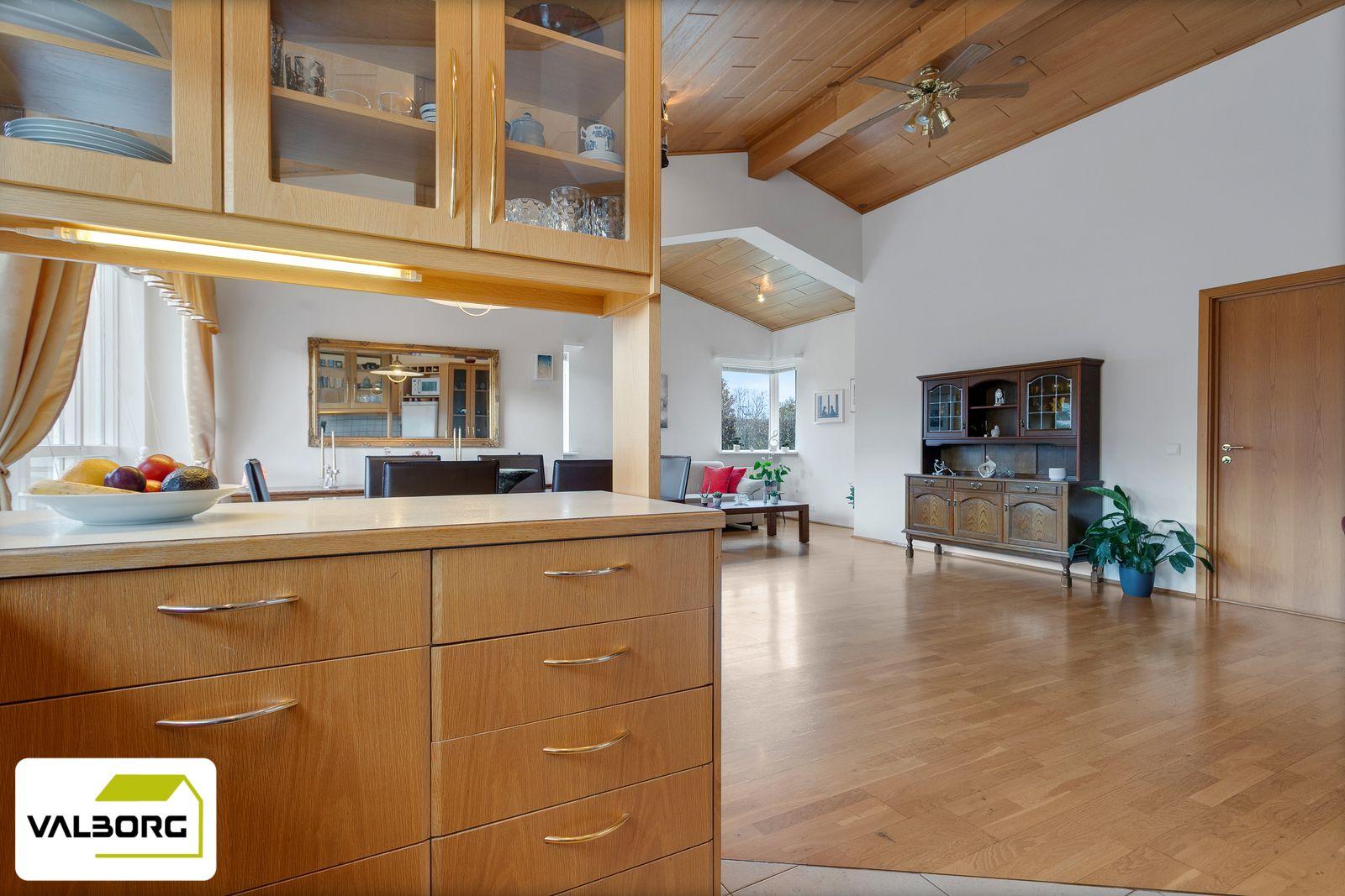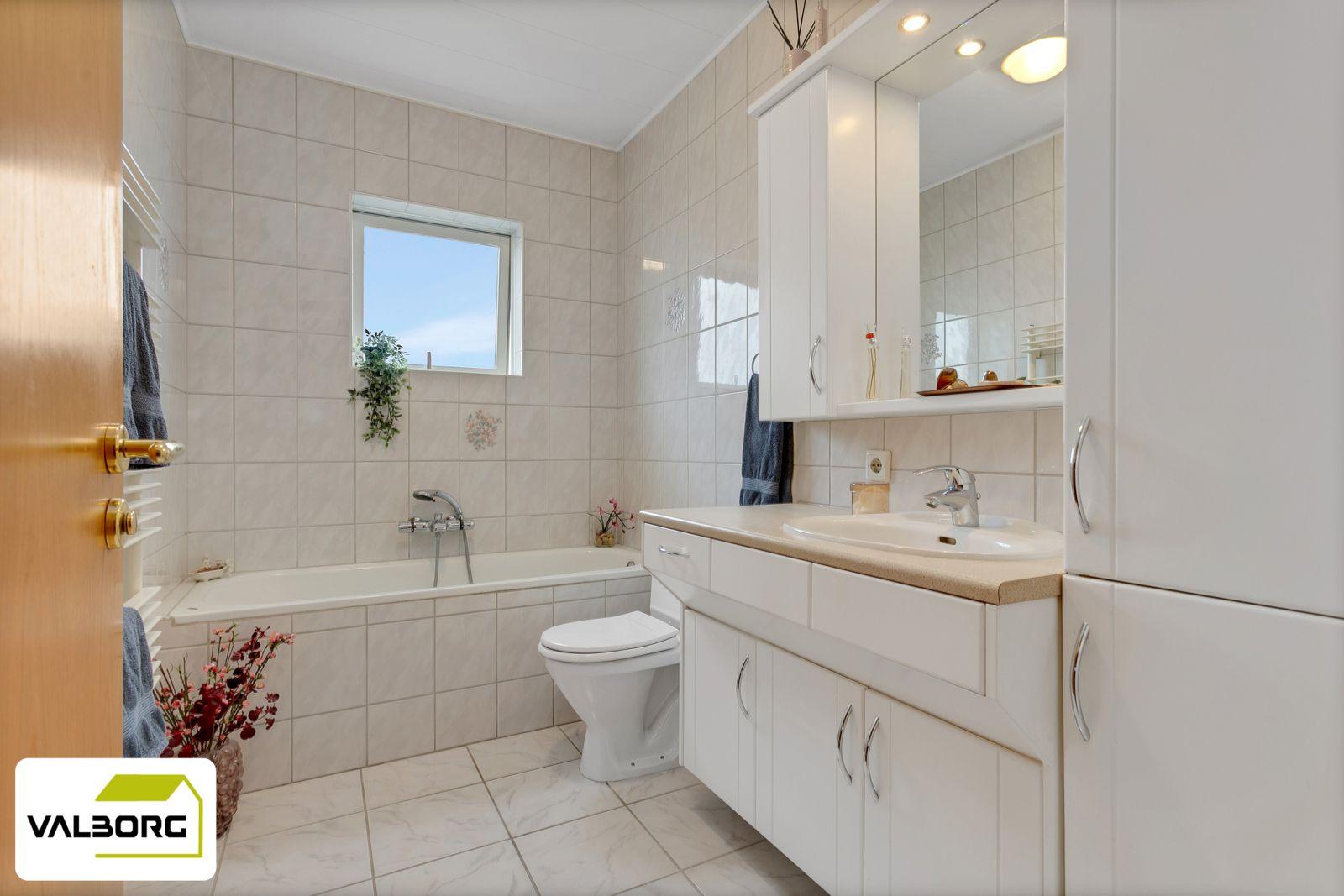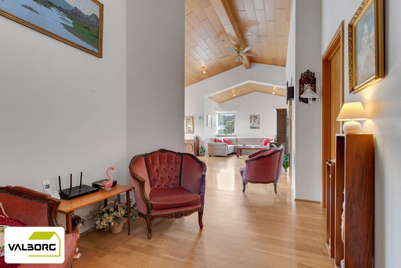 Nánari lýsing: Forstofa: Flísalögð með fataskápum. Innangengt í bílskúr. Hiti í gólfi Stofa/borðstofa: Bjartu og opið rými með hárri lofthæð. Parket á gólfi. Útgengt úr borðstofu út á verönd og garð. Eldhúsið: Ljós innrétting með glerskápum að hluta. Flísar á gólfi. Svefnherbergi I: Rúmgott herbergi með góðum skápum. Parket á gólfi. Svefnherbergi II: Rúmgott herbergi. Skápur og parket á gólfi. Baðherbergi: Ljósar flísar og góðar innréttingar. Sturta með glerhurð og handklæðaofn. Hiti í gólfi. Þvottahús: Með útgengi út í garð. Hillur og flísar á gólfi. Geymsla: Inn af bílskúr með hillum. Geymsluloft: geymsluloft fyrir ofan bílskúr. Bílskúr: 26,7 fm. Nýleg rafknúin bílskúrshurð. Geymsluskúr: Geymsluskúr er í bakgarði