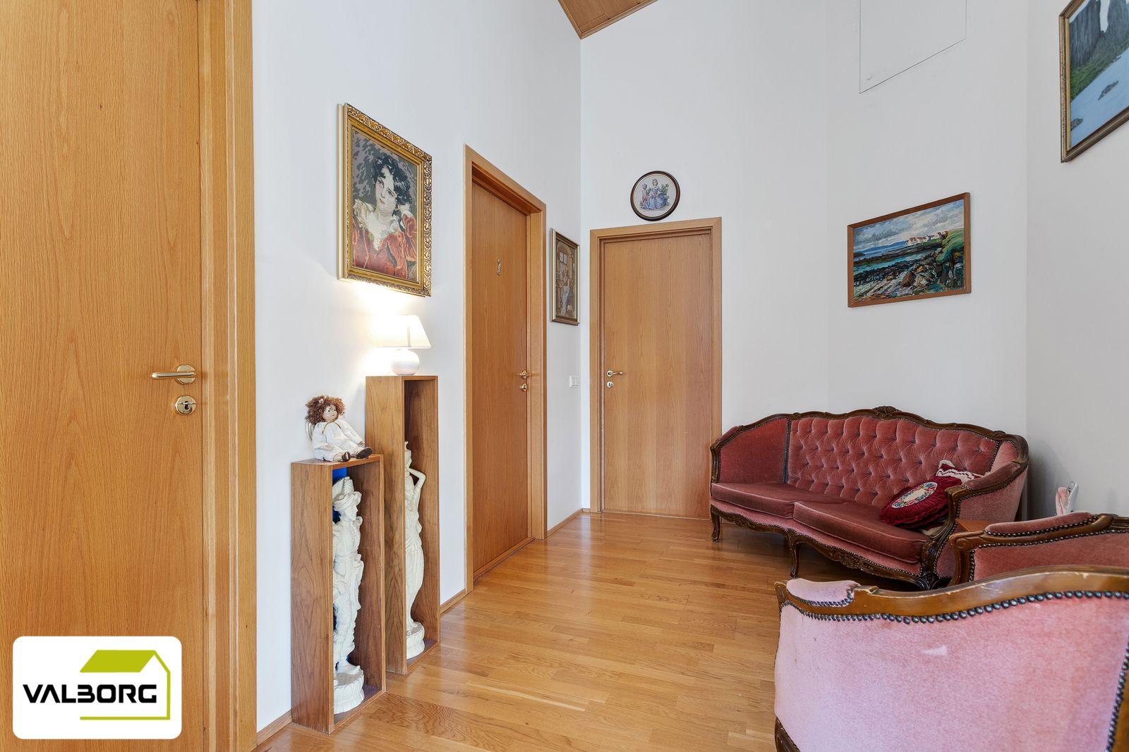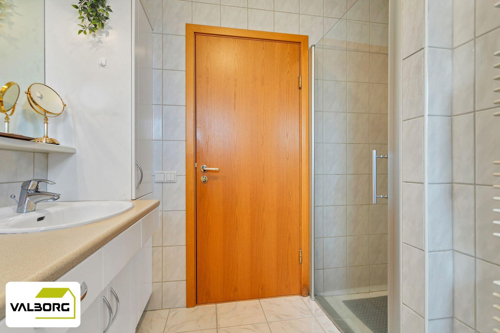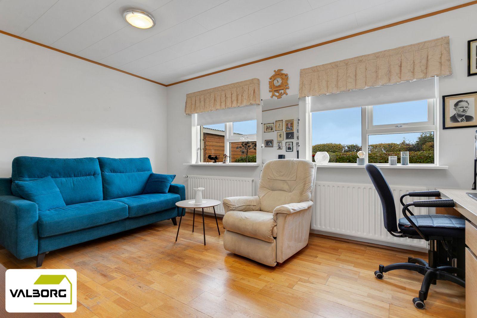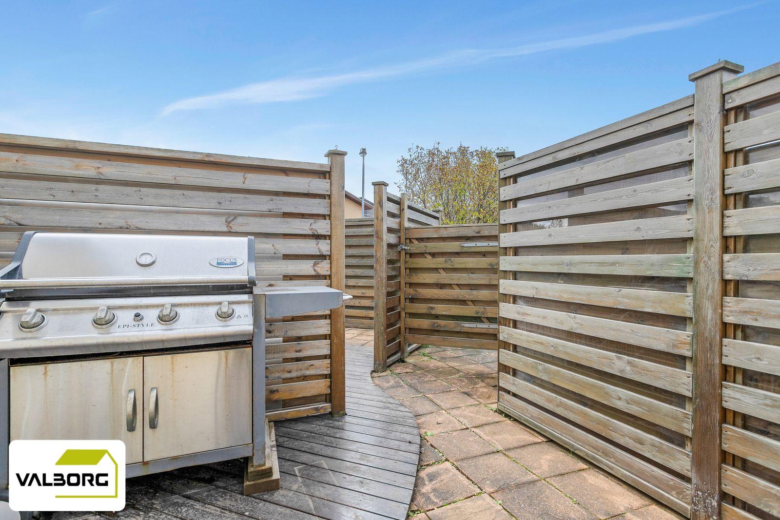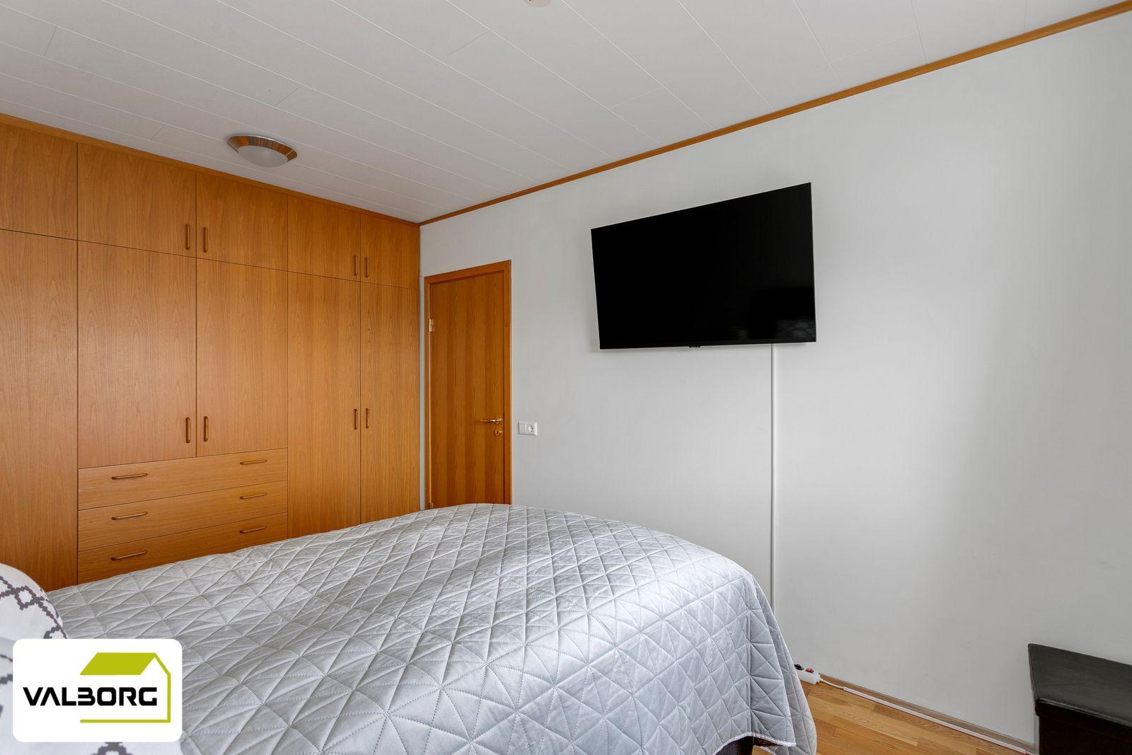 Nánari lýsing: Forstofa: Flísalögð með fataskápum. Innangengt í bílskúr. Hiti í gólfi Stofa/borðstofa: Bjartu og opið rými með hárri lofthæð. Parket á gólfi. Útgengt úr borðstofu út á verönd og garð. Eldhúsið: Ljós innrétting með glerskápum að hluta. Flísar á gólfi. Svefnherbergi I: Rúmgott herbergi með góðum skápum. Parket á gólfi. Svefnherbergi II: Rúmgott herbergi. Skápur og parket á gólfi. Baðherbergi: Ljósar flísar og góðar innréttingar. Sturta með glerhurð og handklæðaofn. Hiti í gólfi. Þvottahús: Með útgengi út í garð. Hillur og flísar á gólfi. Geymsla: Inn af bílskúr með hillum. Geymsluloft: geymsluloft fyrir ofan bílskúr. Bílskúr: 26,7 fm. Nýleg rafknúin bílskúrshurð. Geymsluskúr: Geymsluskúr er í bakgarði