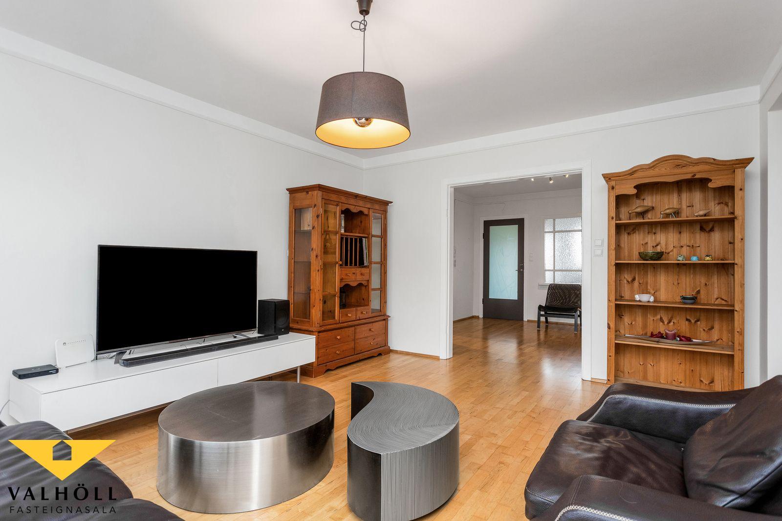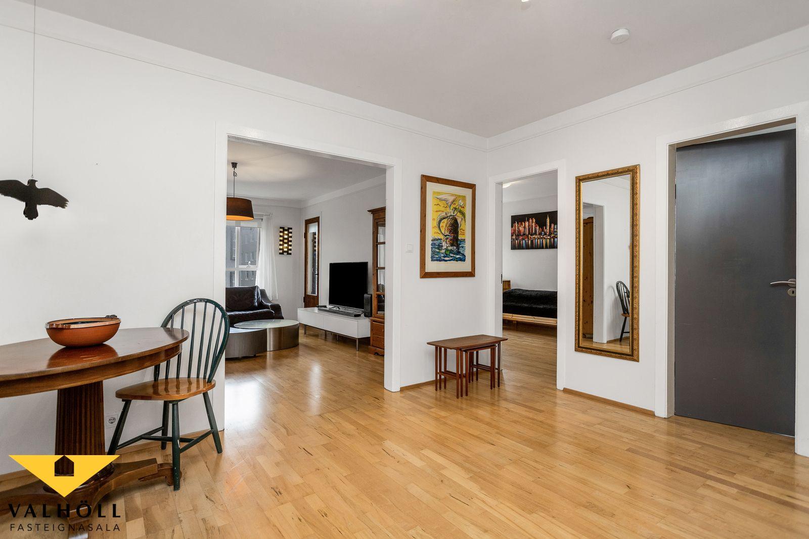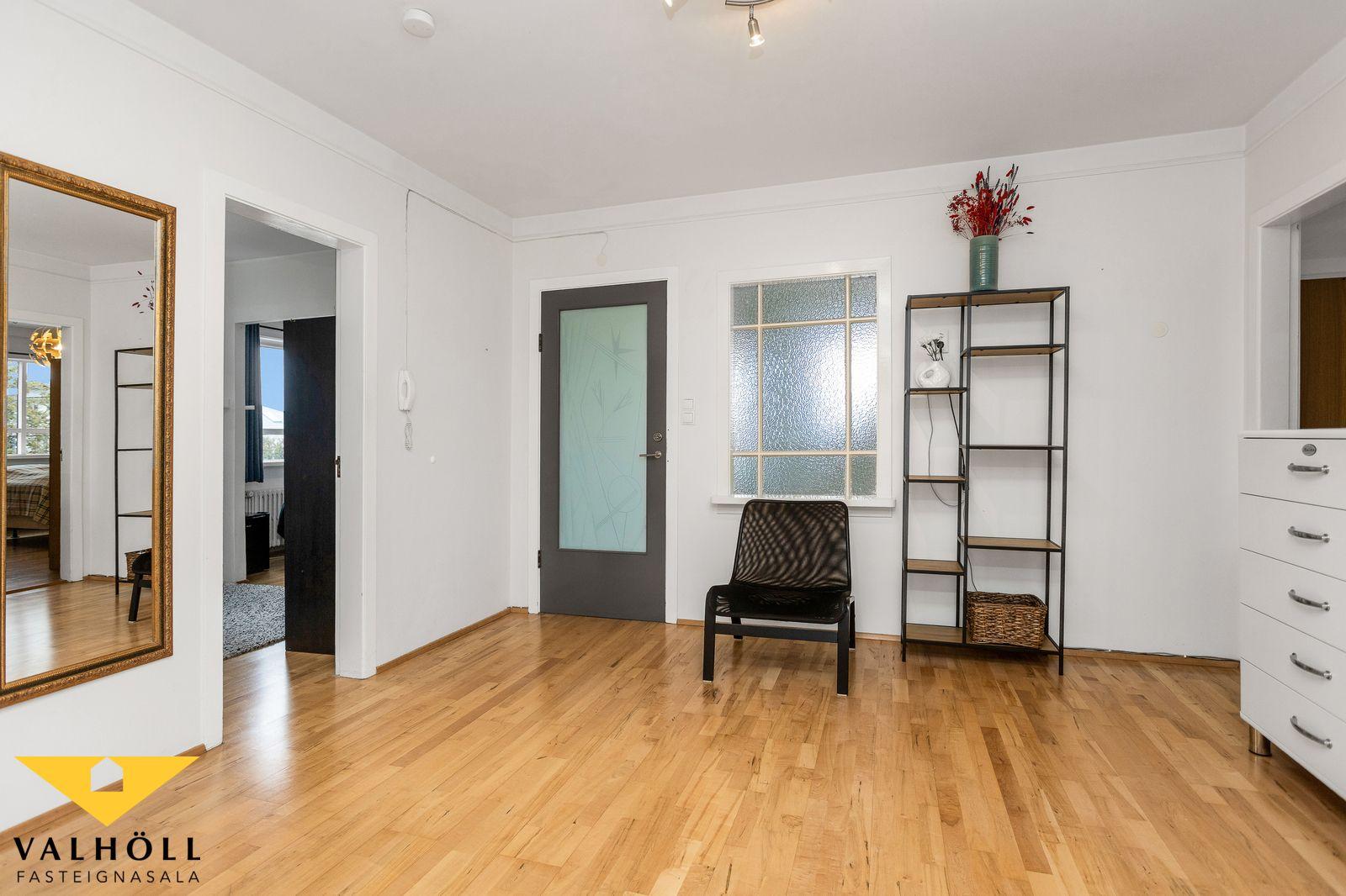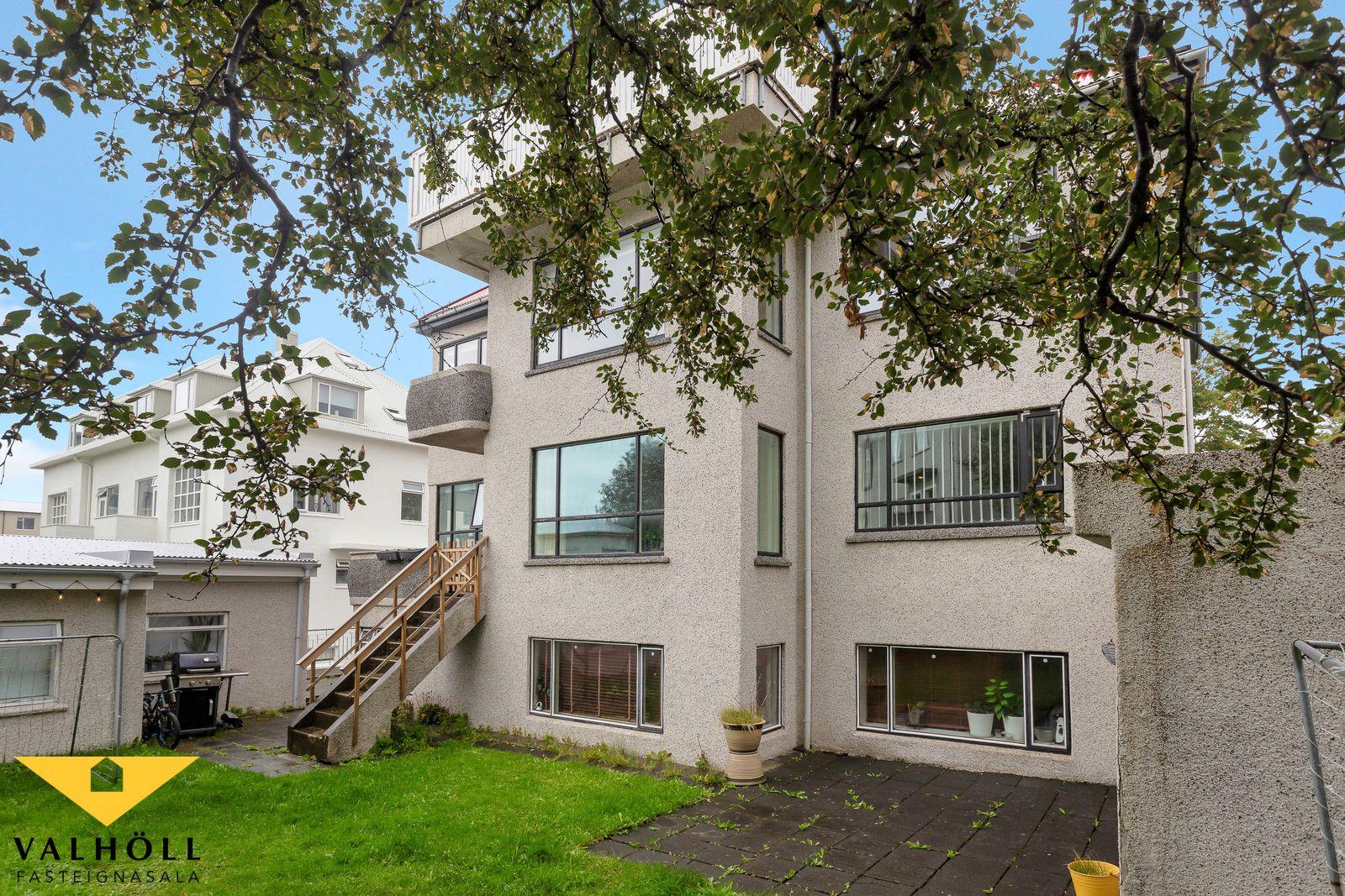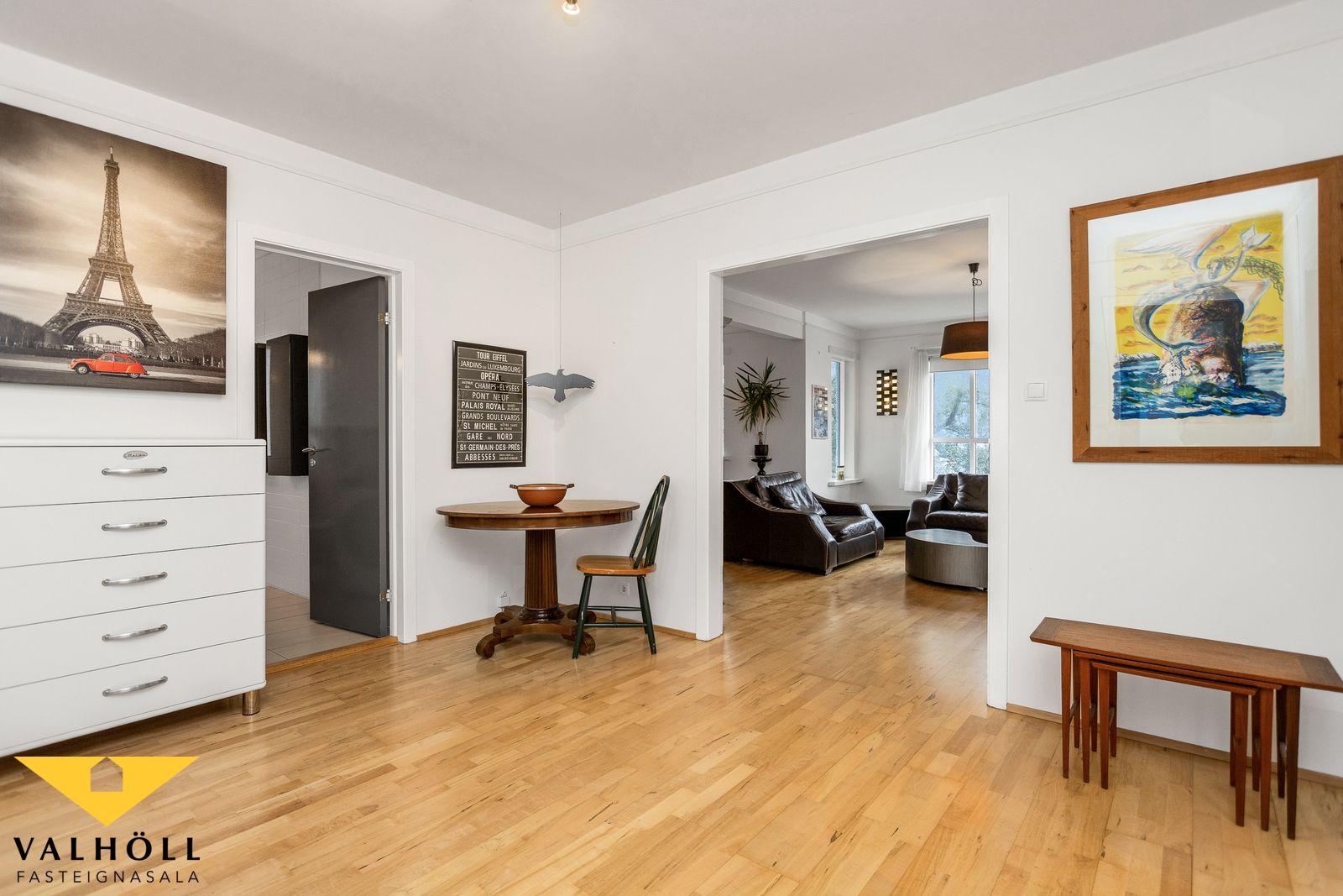 **SÝND Í EINKASKOÐUNUM **Valhöll kynnir: Rúmgóða vel skipulagða 4ra-5 herbergja efri hæð með bílskúr á góðum stað við Blönduhlíð 4. Eignin samanstengur af stóru alrými með svölum til suðurs þar sem eldhús, borðstofa og stofa eru í opnu alrými, hol er rúmgott, baðherbergi er með glugga og þvottaaðstöðu og þrjú mjög rúmgóð svefnherbergi. Það voru 4 svegnherbergi en opnað hefur verið á milli tveggja. Hurð enn til staðar fyrir þá sem þurfa 4 svefnherbergi, en sú hurð er með aðgengi af stigapalli í sameign. Bilskúr með gönguhurð og stórum gluggum. Hæðin er skráð hjá HMS 123,6 fm og bílskúr 38,9 fm samtals 162,5 fm Fyrirhugað fasteignamat fyrir 2026 er 109.450.000 kr. BÓKIÐ SKOÐUN: Elín Alfreðsdóttir lgf í síma 8993090 eða elina@valholl.is Nánari lýsing á eigninni: Komið er inn um sameiginlegan inngang með efri hæð og risi. Snyrtilegur stigagangur og sameiginlegar svalir af stigapalli. Forstofa/hol: Parket á gólfi og úr holi er gengið inn í aðrar vistarverur íbúðarinnar. Eldhús: Snyrtileg viðar eldhúsinnrétting með góðu skápaplássi. Parket á gólfi. Borðstofa: Rúmgóð með parketi á gólfi. Stofa: Björt og rúmgóð stofa með suðurgluggum og útgengi út á suðursvalir. Hjónaherbergi: Rúmgott herbergi með parketi á gólfi og upprunalegum sérsmíðuðum fataskáp. Barnaherbergi I og II: Bæði herbergi eru rúmgóð með parketi á gólfi. Annað er notað sem hjónaherbergi í dag en hitt er upphaflega 2 herbergi sem opnað hefur verið á milli. Baðherbergi: Flísalagt í hólf og gólf, með sturtuaðstöðu í baðkari og hvítri innréttingu. Þvottaaðstaða og góður gluggi á baði. Sameign: Þvottahús er í sameign í kjallara. Íbúðinni fylgir hlutdeild í sameiginlegri hjóla- og vagnageymslu. Endurbætur á húsi: - 2024 Þakrennur endurnýjaðar og þak yfirfarið að hluta. Þak einangrað til að halda betur hita. - Gangur í sameign málaður og teppalagður árið 2020. -Húsið endursteinað fyrir 15-20 árum og fyrri eigandi vill meina að það sé búið að fara í frárennsli/skólp og dren. (fasteignasali mælir með ástandssoðun á lögnum til að fá þetta staðfest) -Árið 2019: Skipt um gler og lista í flestum gluggum sumar 2025 voru gluggar málaðir að utan. Um er að ræða frábærlega staðsetta eign á vinsælum stað með stuttu göngufæri í alla helstu þjónustu, skóla, leikskóla og útivistarsvæði. Einstakt tækifæri fyrir þá sem vilja bjarta og rúmgóða eign með stórum svegnherbergjum og opnu alrými í fjölskylduvænu hverfi. Eign sem er þess virði að skoða. Upplýsingar veitir Elín Alfreðsdóttir löggiltur fasteignasali í síma 8993090 eða elina@valholl.is