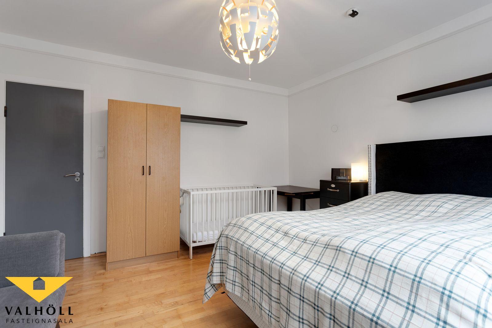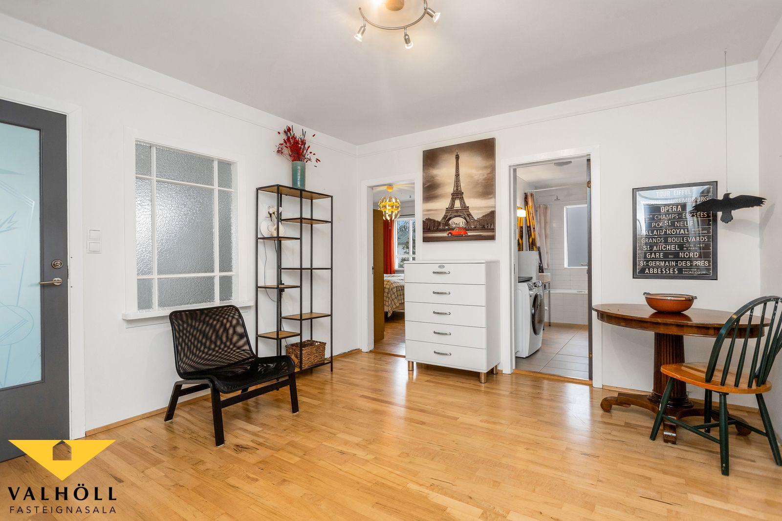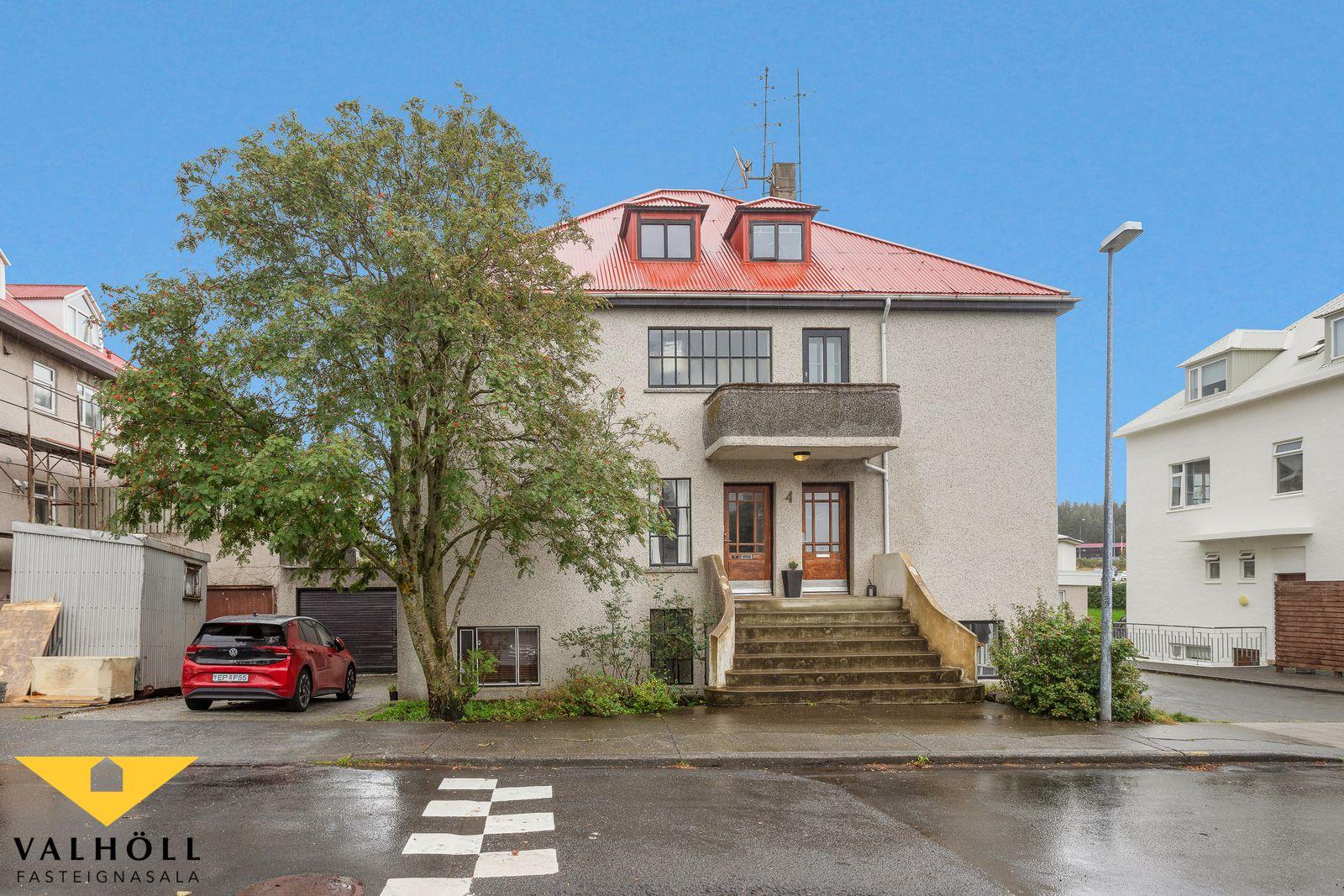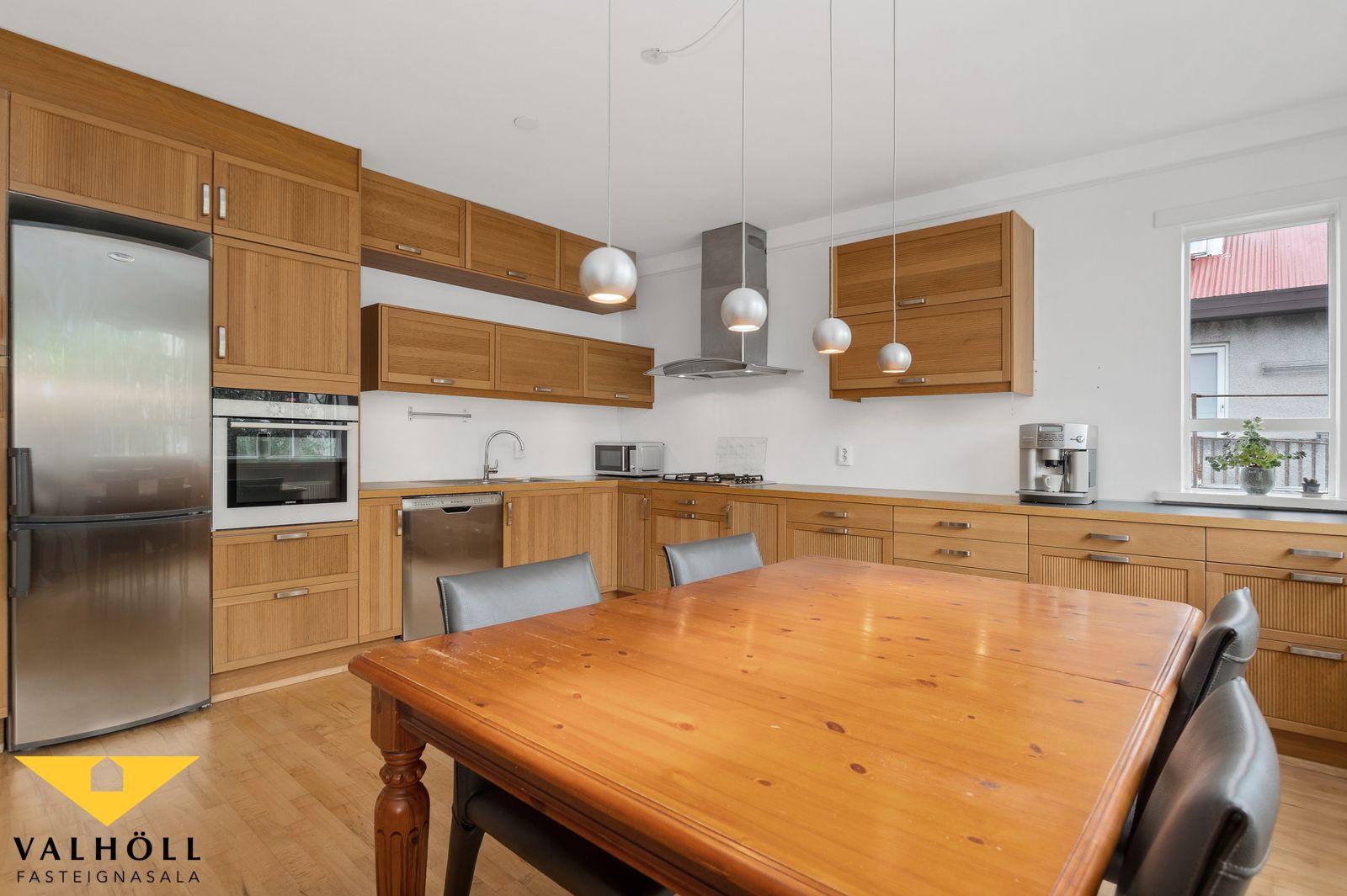 **SÝND Í EINKASKOÐUNUM **Valhöll kynnir: Rúmgóða vel skipulagða 4ra-5 herbergja efri hæð með bílskúr á góðum stað við Blönduhlíð 4. Eignin samanstengur af stóru alrými með svölum til suðurs þar sem eldhús, borðstofa og stofa eru í opnu alrými, hol er rúmgott, baðherbergi er með glugga og þvottaaðstöðu og þrjú mjög rúmgóð svefnherbergi. Það voru 4 svegnherbergi en opnað hefur verið á milli tveggja. Hurð enn til staðar fyrir þá sem þurfa 4 svefnherbergi, en sú hurð er með aðgengi af stigapalli í sameign. Bilskúr með gönguhurð og stórum gluggum. Hæðin er skráð hjá HMS 123,6 fm og bílskúr 38,9 fm samtals 162,5 fm Fyrirhugað fasteignamat fyrir 2026 er 109.450.000 kr. BÓKIÐ SKOÐUN: Elín Alfreðsdóttir lgf í síma 8993090 eða elina@valholl.is Nánari lýsing á eigninni: Komið er inn um sameiginlegan inngang með efri hæð og risi. Snyrtilegur stigagangur og sameiginlegar svalir af stigapalli. Forstofa/hol: Parket á gólfi og úr holi er gengið inn í aðrar vistarverur íbúðarinnar. Eldhús: Snyrtileg viðar eldhúsinnrétting með góðu skápaplássi. Parket á gólfi. Borðstofa: Rúmgóð með parketi á gólfi. Stofa: Björt og rúmgóð stofa með suðurgluggum og útgengi út á suðursvalir. Hjónaherbergi: Rúmgott herbergi með parketi á gólfi og upprunalegum sérsmíðuðum fataskáp. Barnaherbergi I og II: Bæði herbergi eru rúmgóð með parketi á gólfi. Annað er notað sem hjónaherbergi í dag en hitt er upphaflega 2 herbergi sem opnað hefur verið á milli. Baðherbergi: Flísalagt í hólf og gólf, með sturtuaðstöðu í baðkari og hvítri innréttingu. Þvottaaðstaða og góður gluggi á baði. Sameign: Þvottahús er í sameign í kjallara. Íbúðinni fylgir hlutdeild í sameiginlegri hjóla- og vagnageymslu. Endurbætur á húsi: - 2024 Þakrennur endurnýjaðar og þak yfirfarið að hluta. Þak einangrað til að halda betur hita. - Gangur í sameign málaður og teppalagður árið 2020. -Húsið endursteinað fyrir 15-20 árum og fyrri eigandi vill meina að það sé búið að fara í frárennsli/skólp og dren. (fasteignasali mælir með ástandssoðun á lögnum til að fá þetta staðfest) -Árið 2019: Skipt um gler og lista í flestum gluggum sumar 2025 voru gluggar málaðir að utan. Um er að ræða frábærlega staðsetta eign á vinsælum stað með stuttu göngufæri í alla helstu þjónustu, skóla, leikskóla og útivistarsvæði. Einstakt tækifæri fyrir þá sem vilja bjarta og rúmgóða eign með stórum svegnherbergjum og opnu alrými í fjölskylduvænu hverfi. Eign sem er þess virði að skoða. Upplýsingar veitir Elín Alfreðsdóttir löggiltur fasteignasali í síma 8993090 eða elina@valholl.is