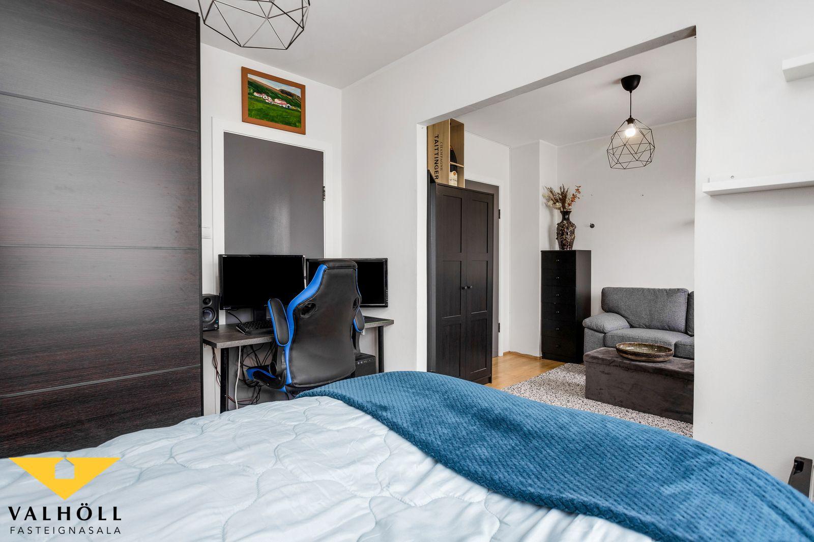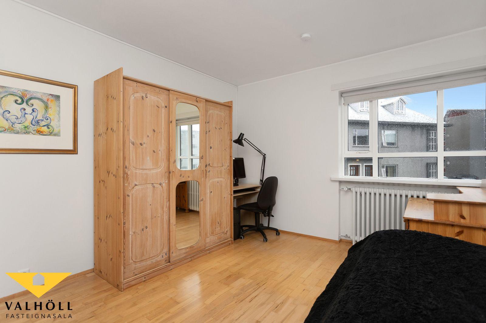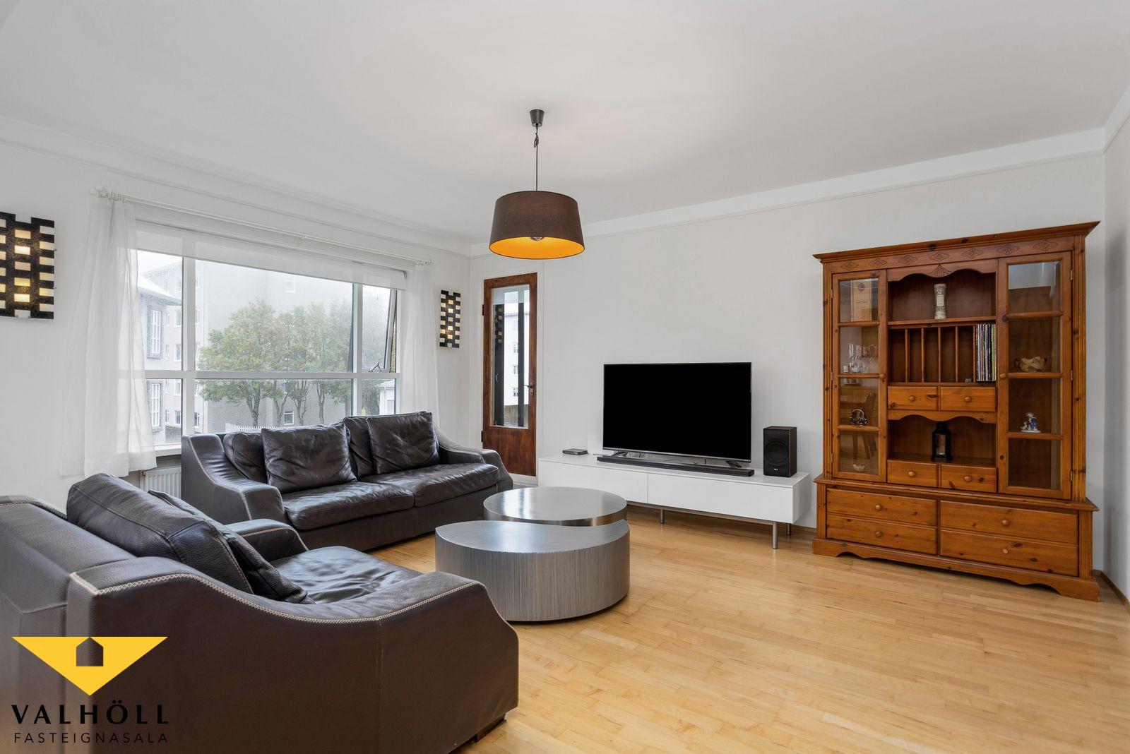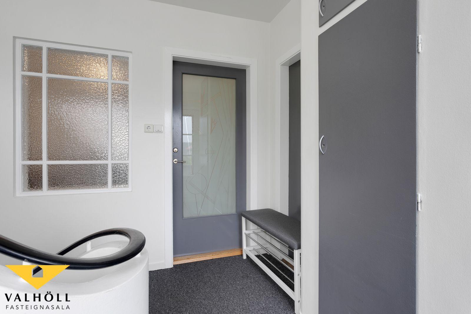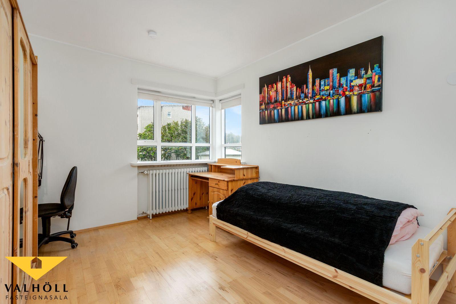 **SÝND Í EINKASKOÐUNUM **Valhöll kynnir: Rúmgóða vel skipulagða 4ra-5 herbergja efri hæð með bílskúr á góðum stað við Blönduhlíð 4. Eignin samanstengur af stóru alrými með svölum til suðurs þar sem eldhús, borðstofa og stofa eru í opnu alrými, hol er rúmgott, baðherbergi er með glugga og þvottaaðstöðu og þrjú mjög rúmgóð svefnherbergi. Það voru 4 svegnherbergi en opnað hefur verið á milli tveggja. Hurð enn til staðar fyrir þá sem þurfa 4 svefnherbergi, en sú hurð er með aðgengi af stigapalli í sameign. Bilskúr með gönguhurð og stórum gluggum. Hæðin er skráð hjá HMS 123,6 fm og bílskúr 38,9 fm samtals 162,5 fm Fyrirhugað fasteignamat fyrir 2026 er 109.450.000 kr. BÓKIÐ SKOÐUN: Elín Alfreðsdóttir lgf í síma 8993090 eða elina@valholl.is Nánari lýsing á eigninni: Komið er inn um sameiginlegan inngang með efri hæð og risi. Snyrtilegur stigagangur og sameiginlegar svalir af stigapalli. Forstofa/hol: Parket á gólfi og úr holi er gengið inn í aðrar vistarverur íbúðarinnar. Eldhús: Snyrtileg viðar eldhúsinnrétting með góðu skápaplássi. Parket á gólfi. Borðstofa: Rúmgóð með parketi á gólfi. Stofa: Björt og rúmgóð stofa með suðurgluggum og útgengi út á suðursvalir. Hjónaherbergi: Rúmgott herbergi með parketi á gólfi og upprunalegum sérsmíðuðum fataskáp. Barnaherbergi I og II: Bæði herbergi eru rúmgóð með parketi á gólfi. Annað er notað sem hjónaherbergi í dag en hitt er upphaflega 2 herbergi sem opnað hefur verið á milli. Baðherbergi: Flísalagt í hólf og gólf, með sturtuaðstöðu í baðkari og hvítri innréttingu. Þvottaaðstaða og góður gluggi á baði. Sameign: Þvottahús er í sameign í kjallara. Íbúðinni fylgir hlutdeild í sameiginlegri hjóla- og vagnageymslu. Endurbætur á húsi: - 2024 Þakrennur endurnýjaðar og þak yfirfarið að hluta. Þak einangrað til að halda betur hita. - Gangur í sameign málaður og teppalagður árið 2020. -Húsið endursteinað fyrir 15-20 árum og fyrri eigandi vill meina að það sé búið að fara í frárennsli/skólp og dren. (fasteignasali mælir með ástandssoðun á lögnum til að fá þetta staðfest) -Árið 2019: Skipt um gler og lista í flestum gluggum sumar 2025 voru gluggar málaðir að utan. Um er að ræða frábærlega staðsetta eign á vinsælum stað með stuttu göngufæri í alla helstu þjónustu, skóla, leikskóla og útivistarsvæði. Einstakt tækifæri fyrir þá sem vilja bjarta og rúmgóða eign með stórum svegnherbergjum og opnu alrými í fjölskylduvænu hverfi. Eign sem er þess virði að skoða. Upplýsingar veitir Elín Alfreðsdóttir löggiltur fasteignasali í síma 8993090 eða elina@valholl.is