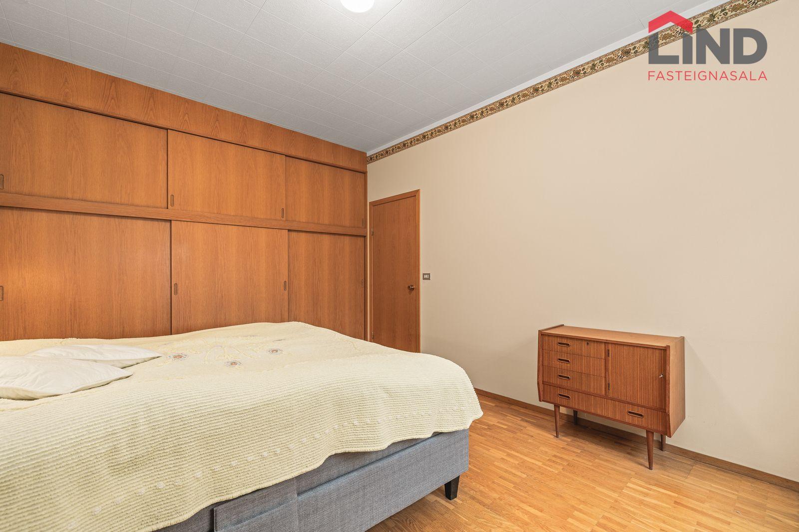 Hjónaherbergi (svefnherbergi II): Er rúmgott með parketi á gólfi og góðum skápum. Möguleiki væri að bæta við skápum og jafnvel útbúa fataherbergi með breytingum á skipulagi.