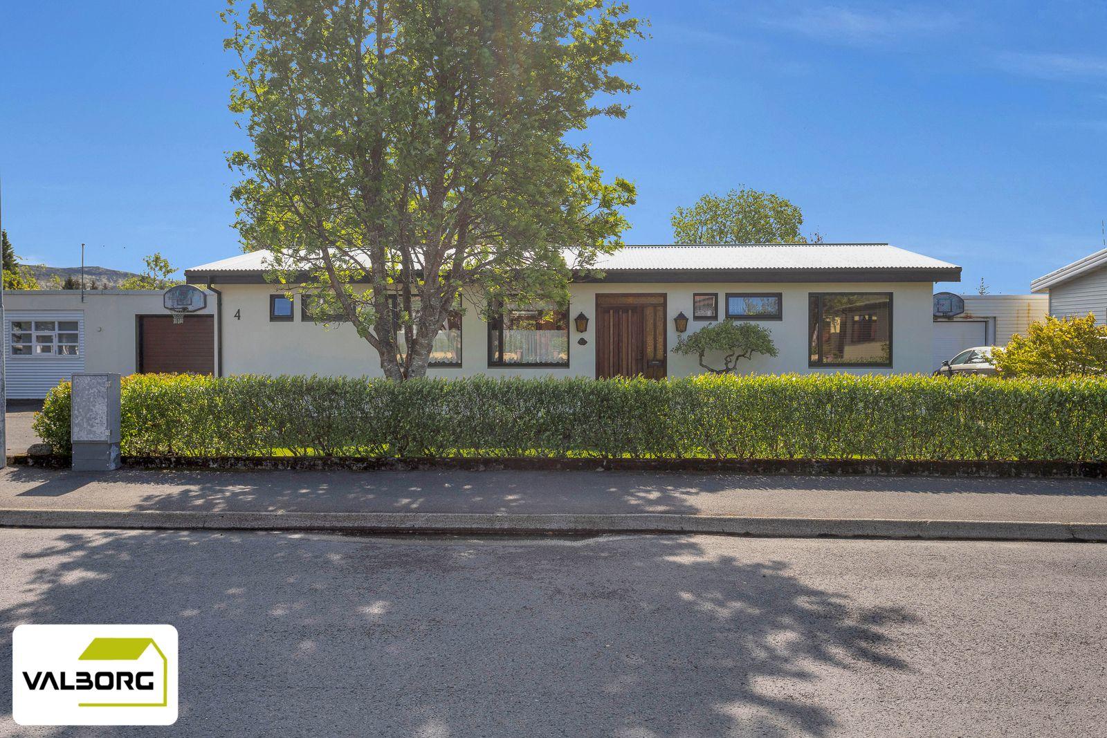 Fallegt einbýlishús með þremur svefnherbergjum og tveimur baðherbergjum á skjólgóðum stað stutt frá Hamrinum.