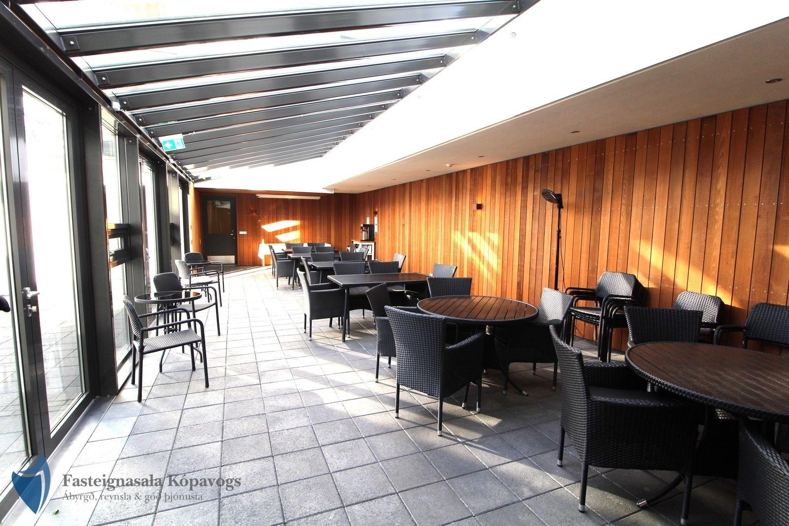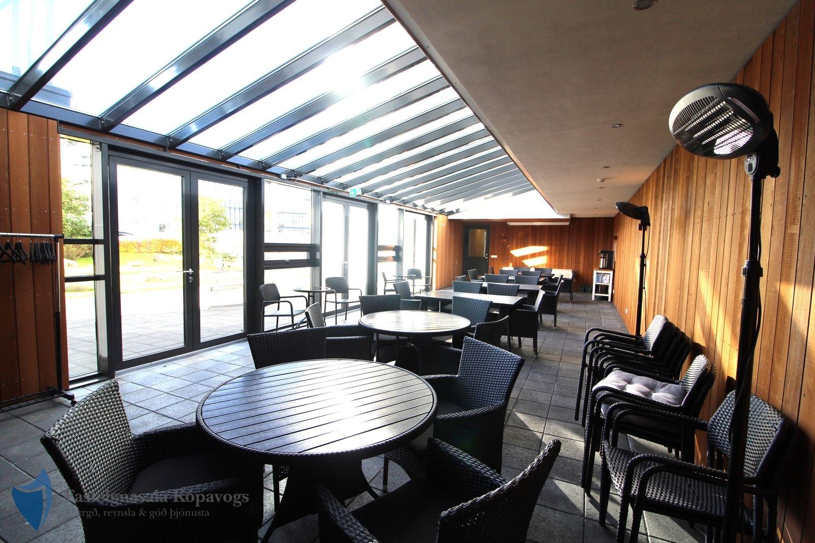 Bjartur og fallegur samkomusalur er á jarðhæð þar sem aðstaða er fyrir íbúa hússins til koma saman og er salurinn einnig notaður fyrir ýmiskonar uppákomur.