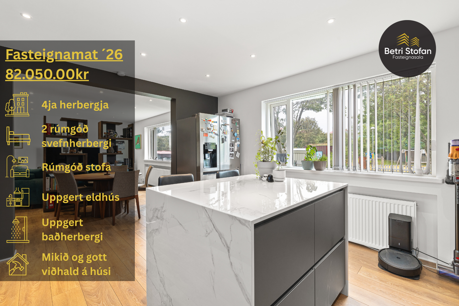 Fasteignamat fyrir árið 2026 er skv. HMS er 82.050.000kr.
