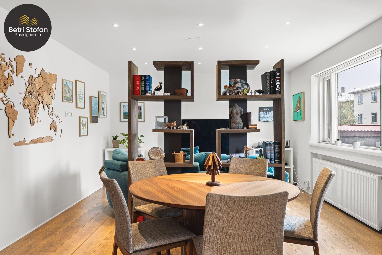 Eignin skptist í hol, samliggjandi stofu, borðstofu og eldhús, baðberbergi, 2 rúmgóð svefnherbergi ásamt sérgeymslu í kjallara. Vinsæl og góð staðsetning í Hlíðunum í nágrenni við skóla á öllum stigum, fjölbreytta þjónustu, frábær útivistarsvæði ásamt íþróttasvæði Reykjavíkur stóveldisins Vals.