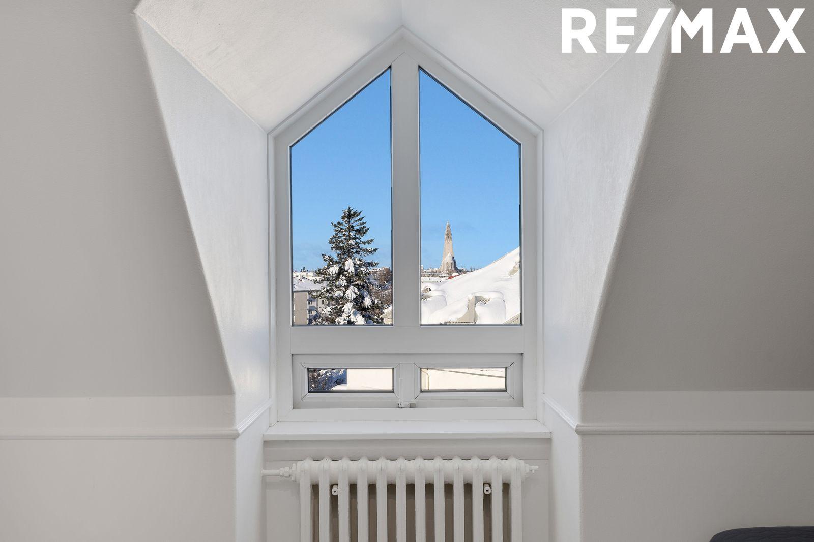 RE/MAX og Guðrún Lilja löggiltur fasteignasali kynna í einkasölu: Einstaklega falleg og björt 2-3ja herbergja 41,30 fm. risíbúð í töluvert endurnýjuðu fjórbýli á eftirsóttum stað í Hlíðunum. Íbúðin skiptist í forstofuhol, eldhús og stofurými með útgengt út á suður svalir með fallegu útsýni, tvö svefnherbergi og baðherbergi. Yfir íbúðinni eru óskráðir fm. í rislofti með glugga sem býður upp á ýmsa möguleika.