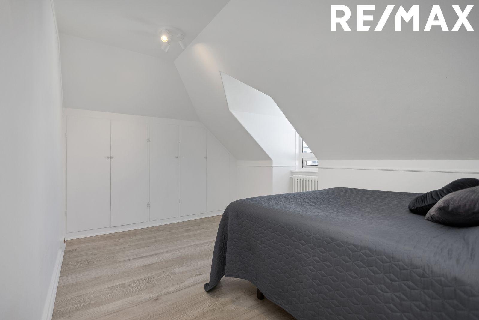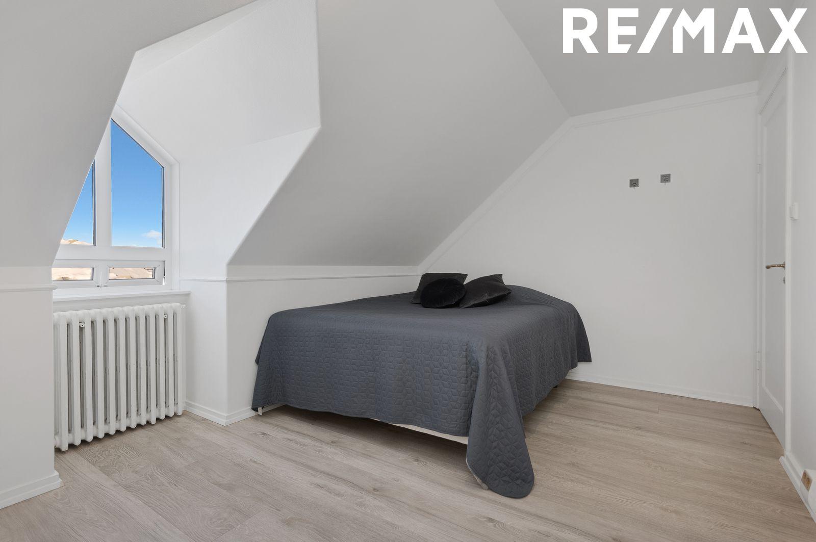 Svefnherbergin eru tvö, rúmgott hjónaherbergi með innbyggðum fataskápum. Barnaherbergið er minna (skráð sem geymsla á eldri teikningum) með súðageymslu.