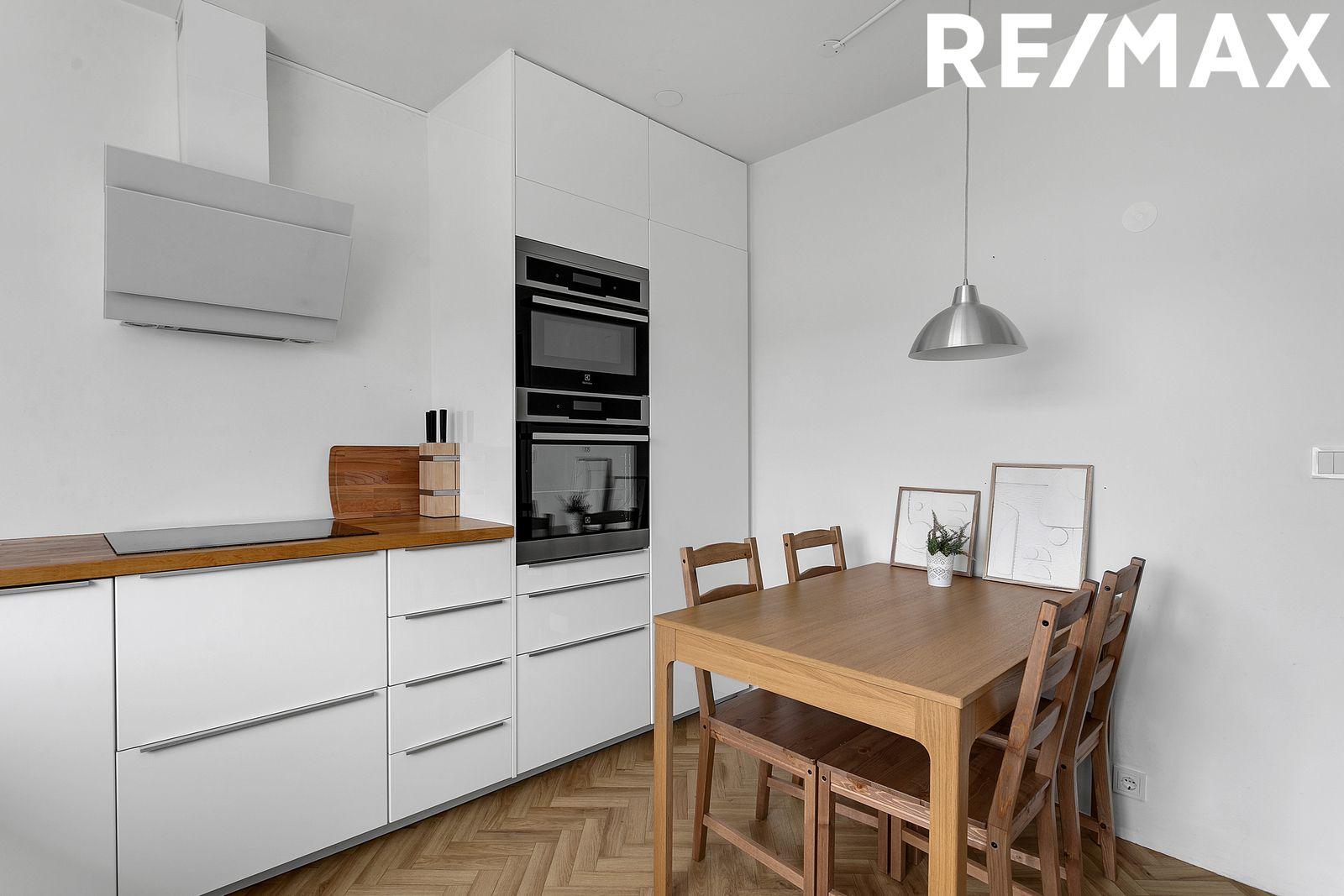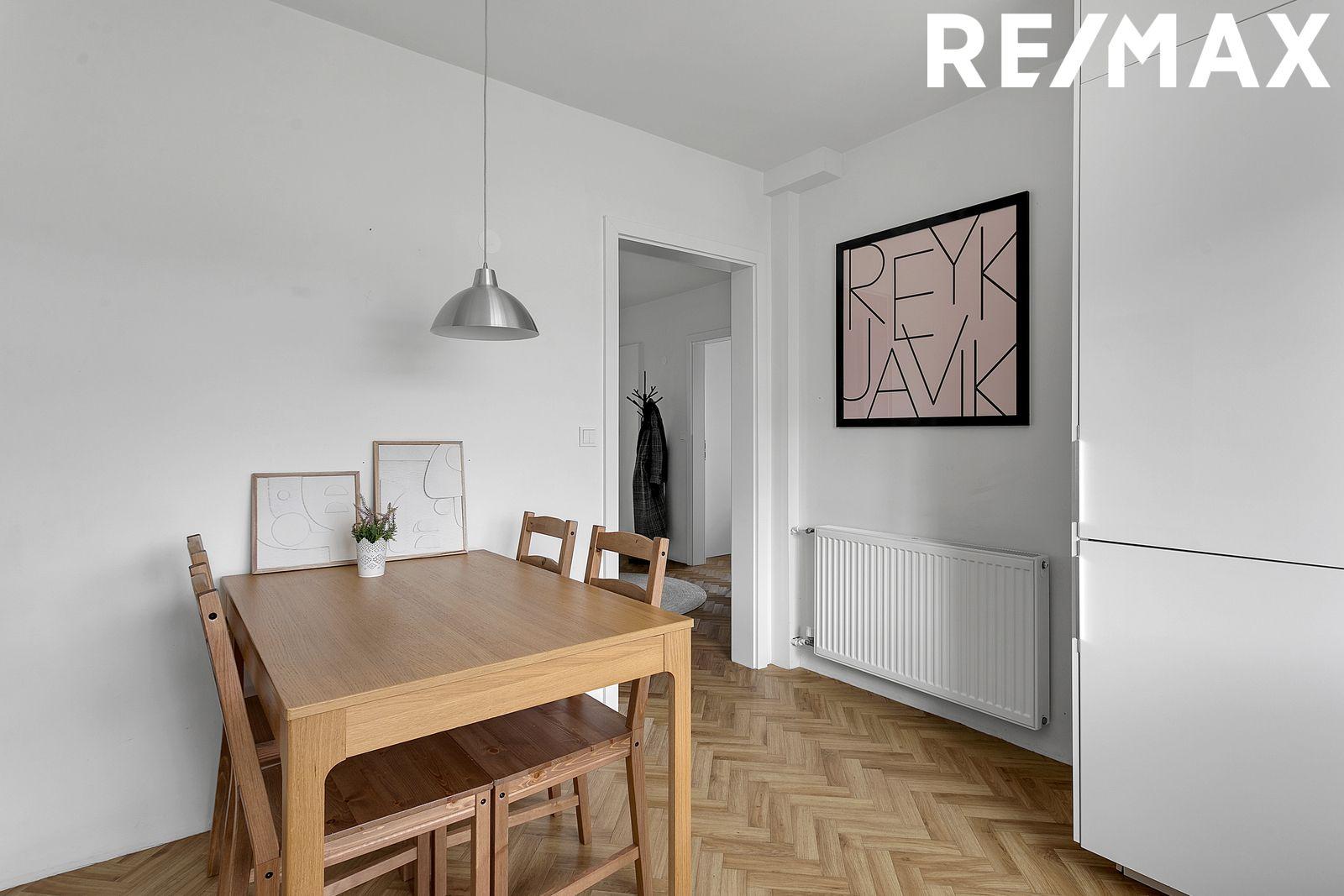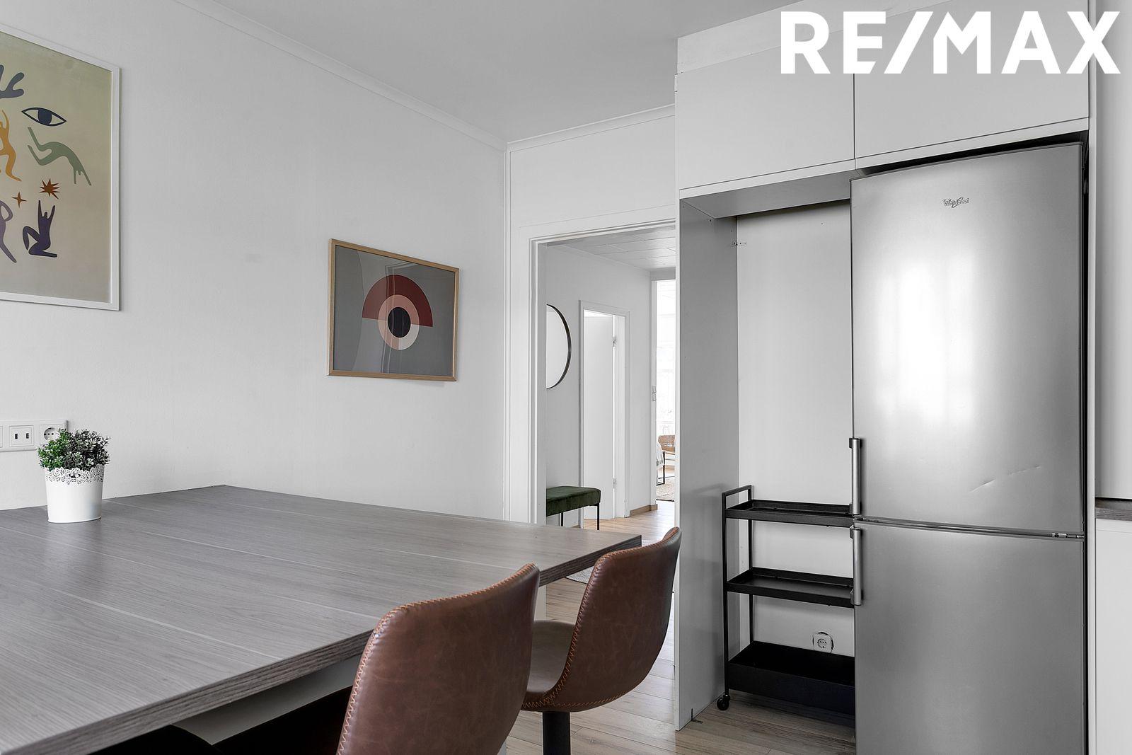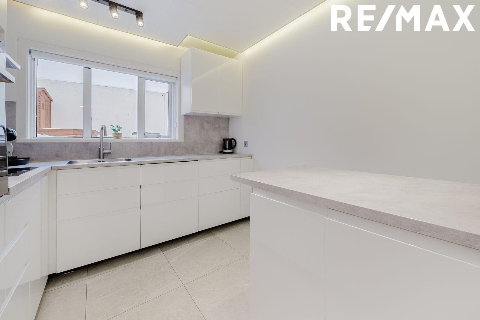 Eldhúsið er nýlega uppgert með hvítri innréttingu með miklu bekk- og skápaplássi og góðri vinnuaðstöðu, gott rými fyrir borð og stóla fyrir 6 manns. Innfelld uppþvottavél og ísskápur. Góður gluggi snýr í austur og inn í garðinn.