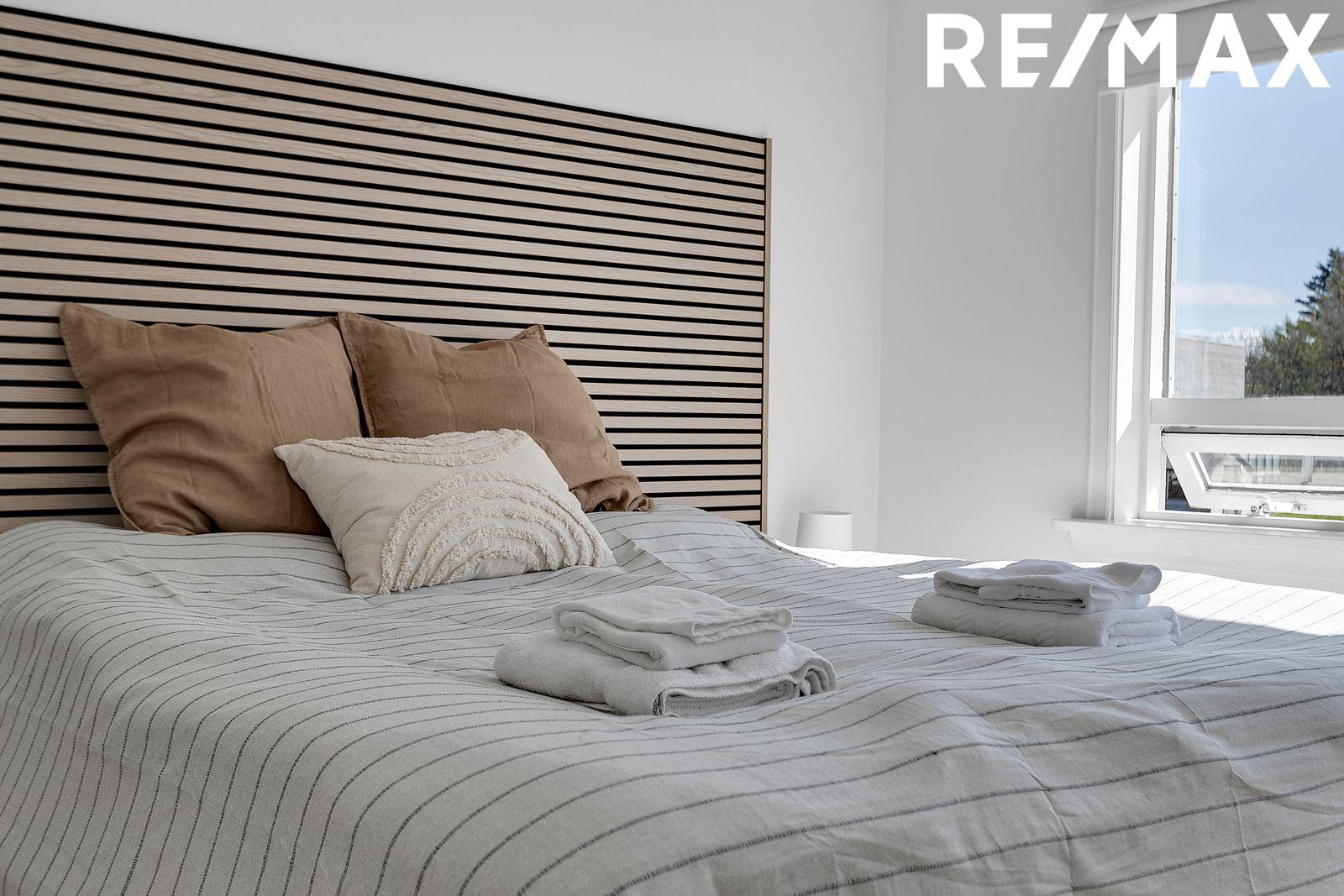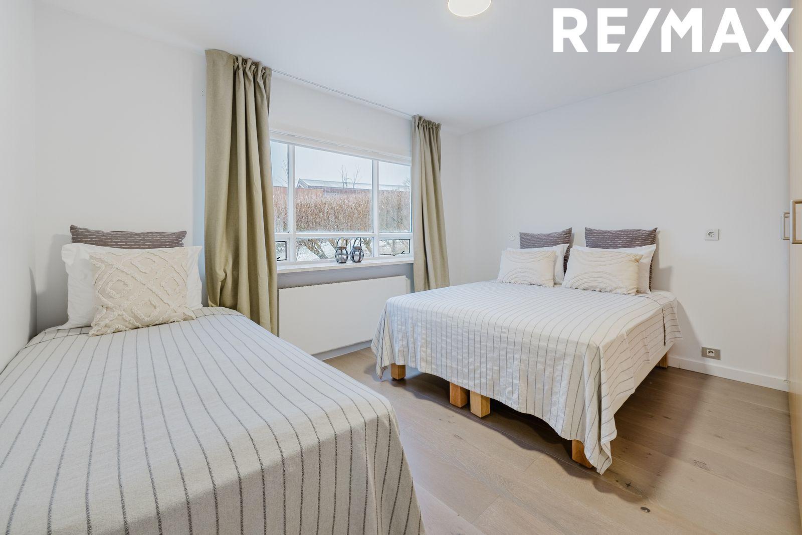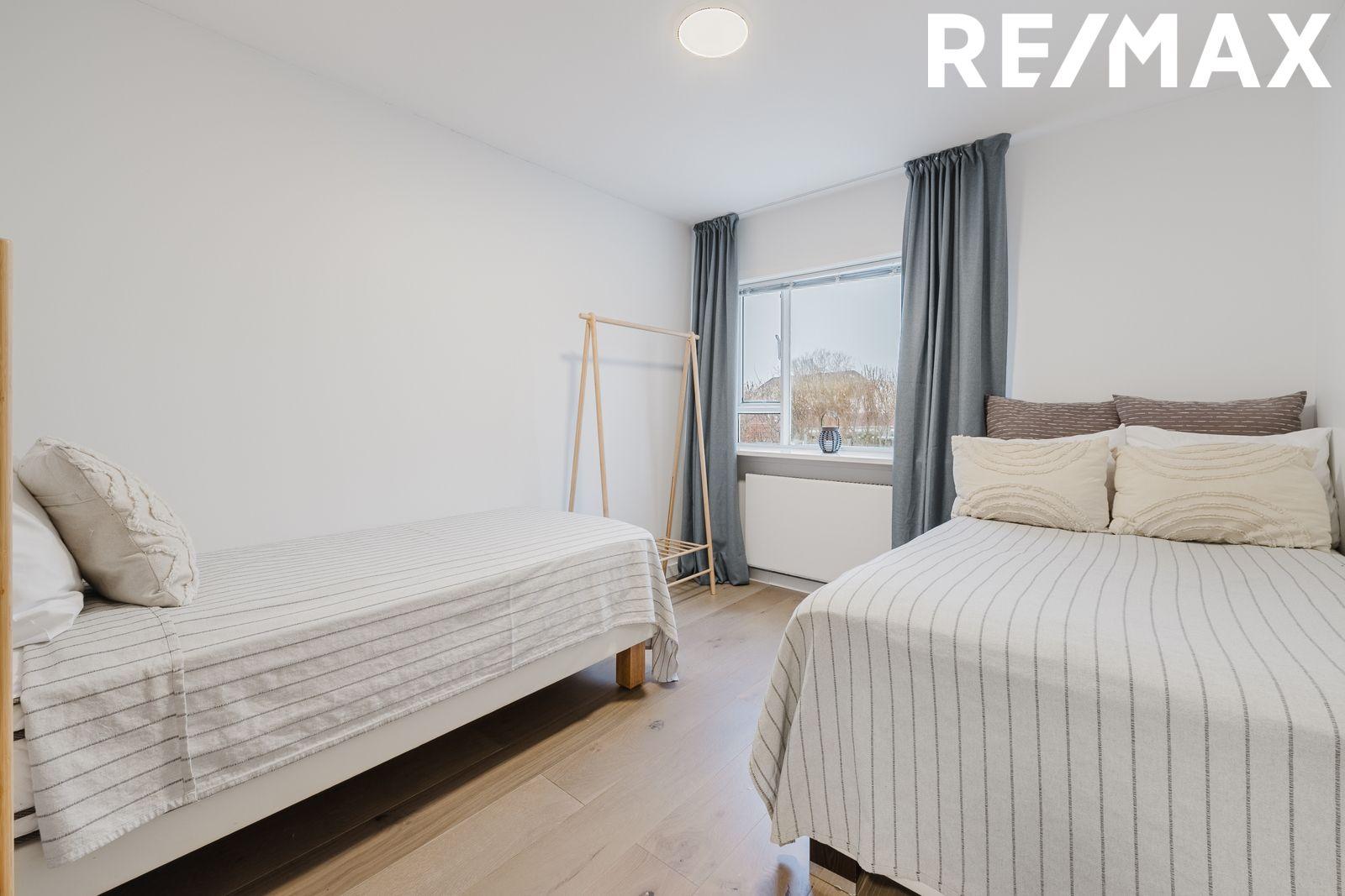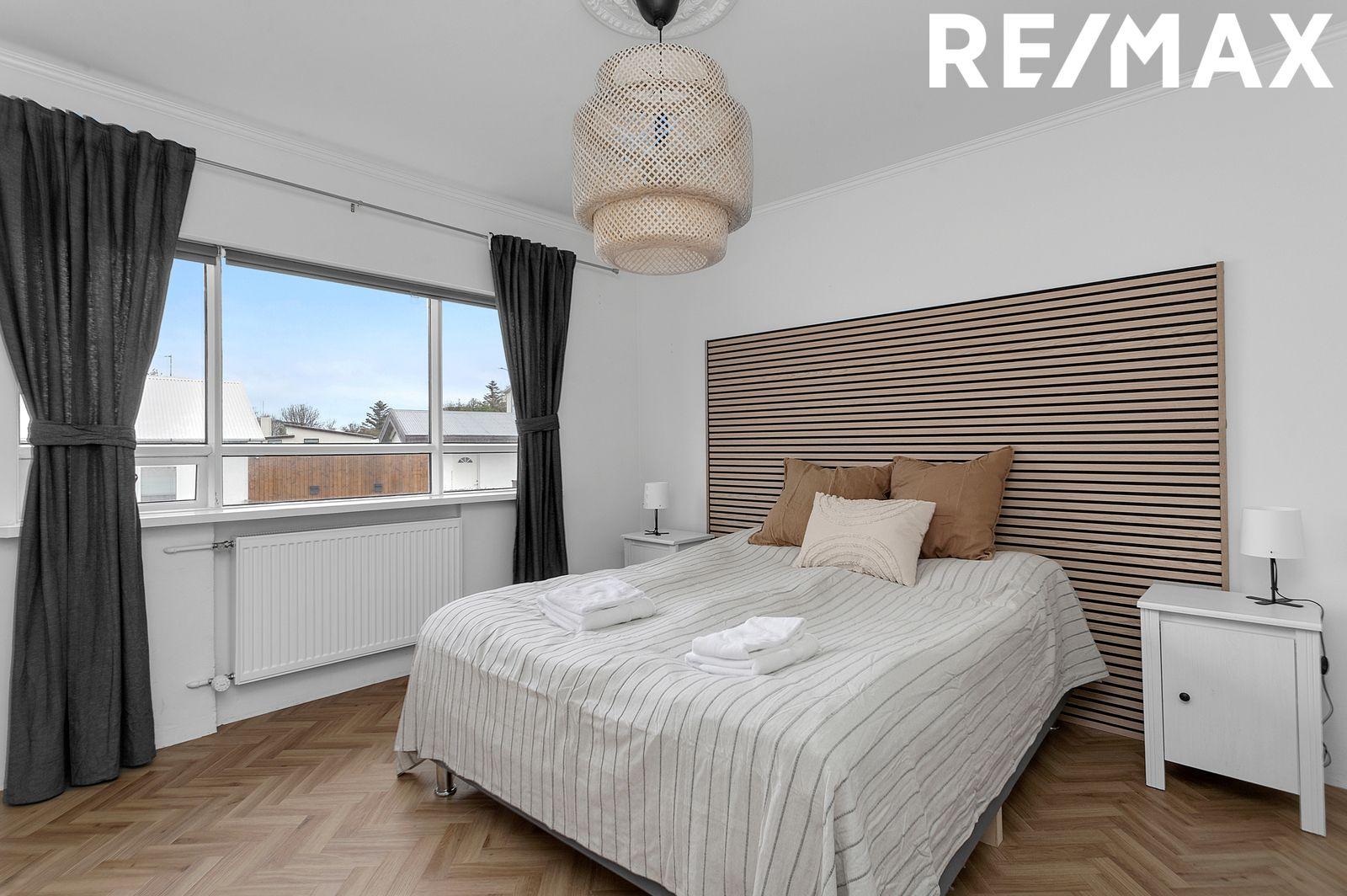 Svefnherbergi eru tvö, rúmgott hjónaherbergi með góðum fataskápum og glugga.